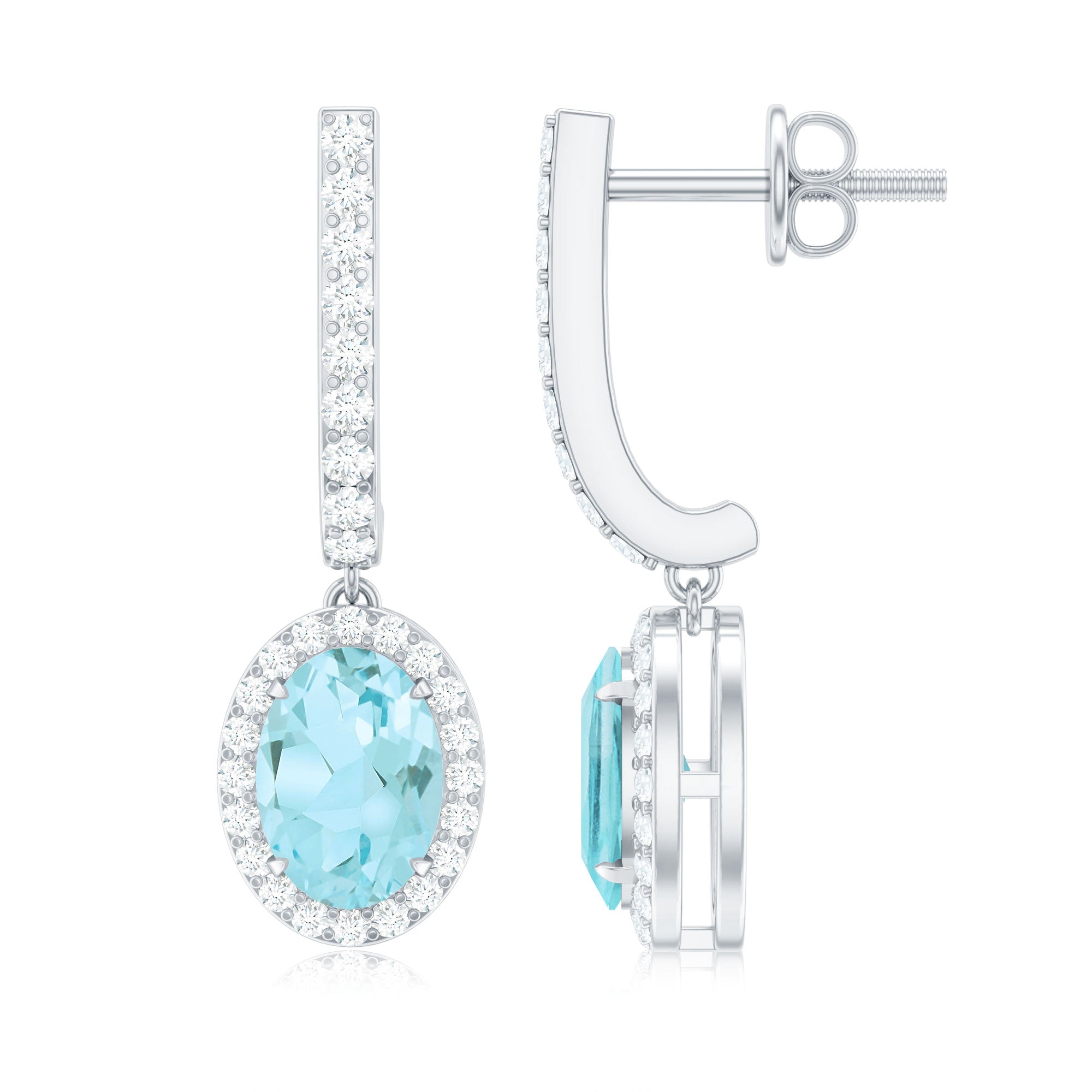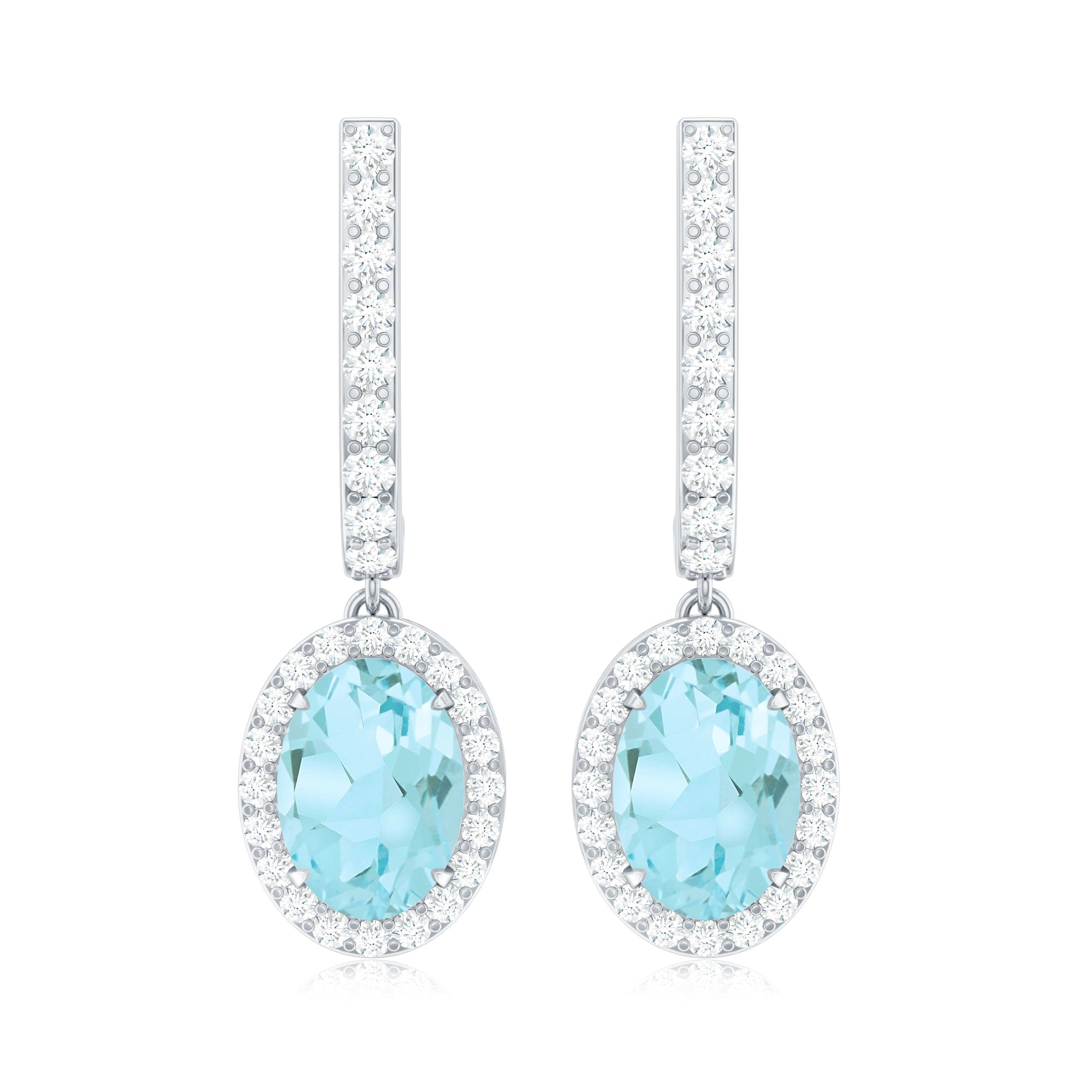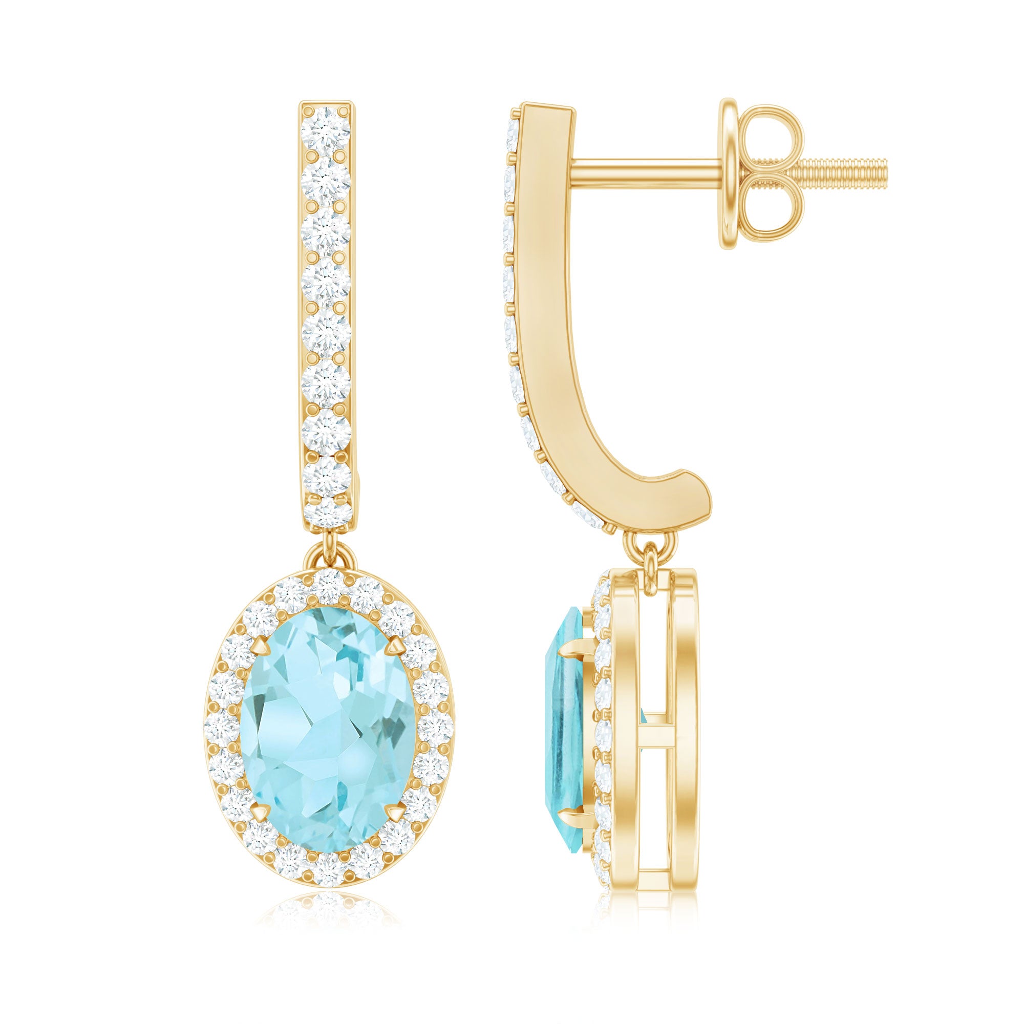 Honor your mother this Mothers Day with these gorgeous Drop Hoop Earrings. The earrings feature an oval-cut sky blue topaz in a claw setting surrounded by a halo of Diamonds. Crafted with solid gold, these earrings offer durability and a luxurious appeal. Celebrate your mother with this stunning and beautiful jewelry piece from Rosec Jewels. The earrings are sure to become a cherished part of your mothers jewelry collection.