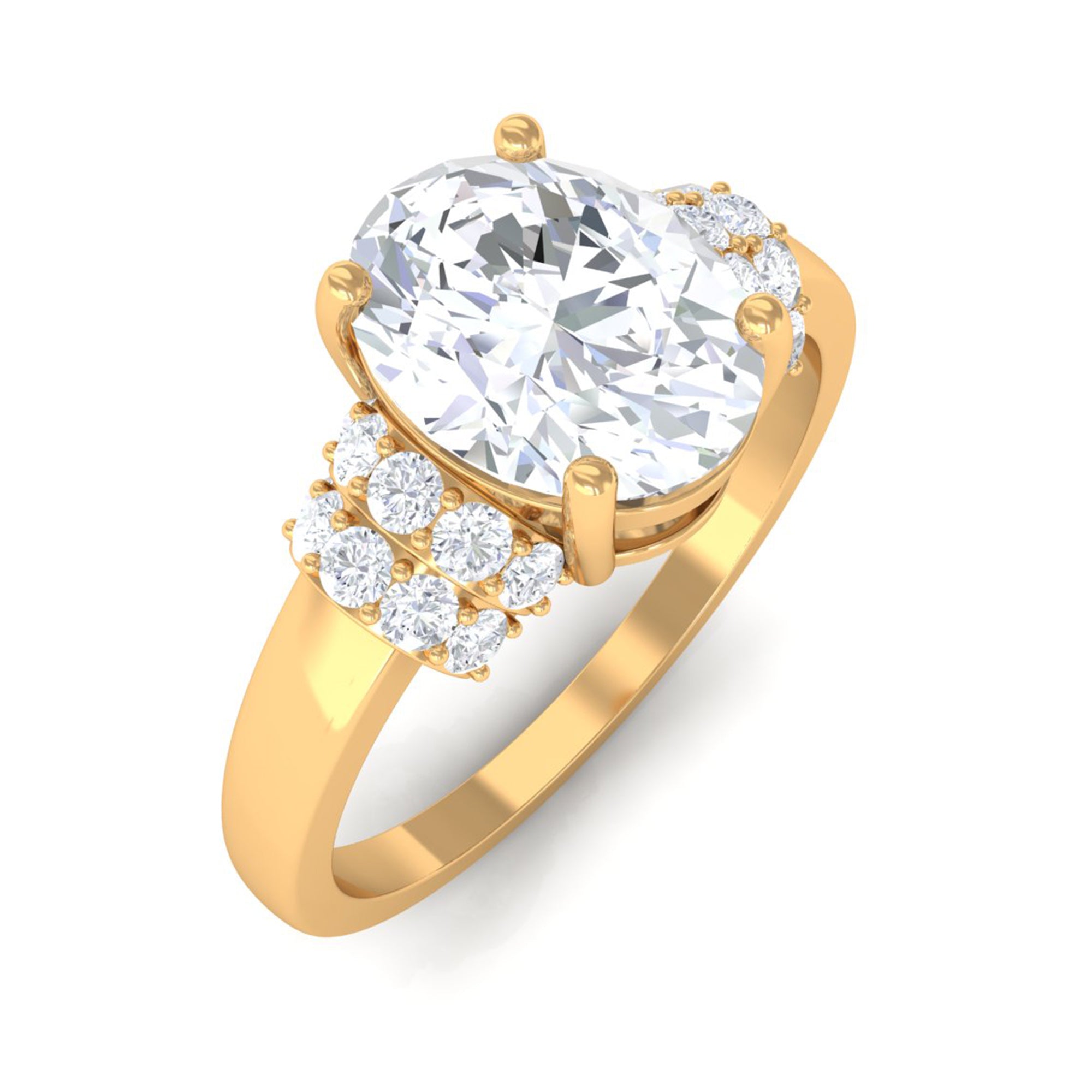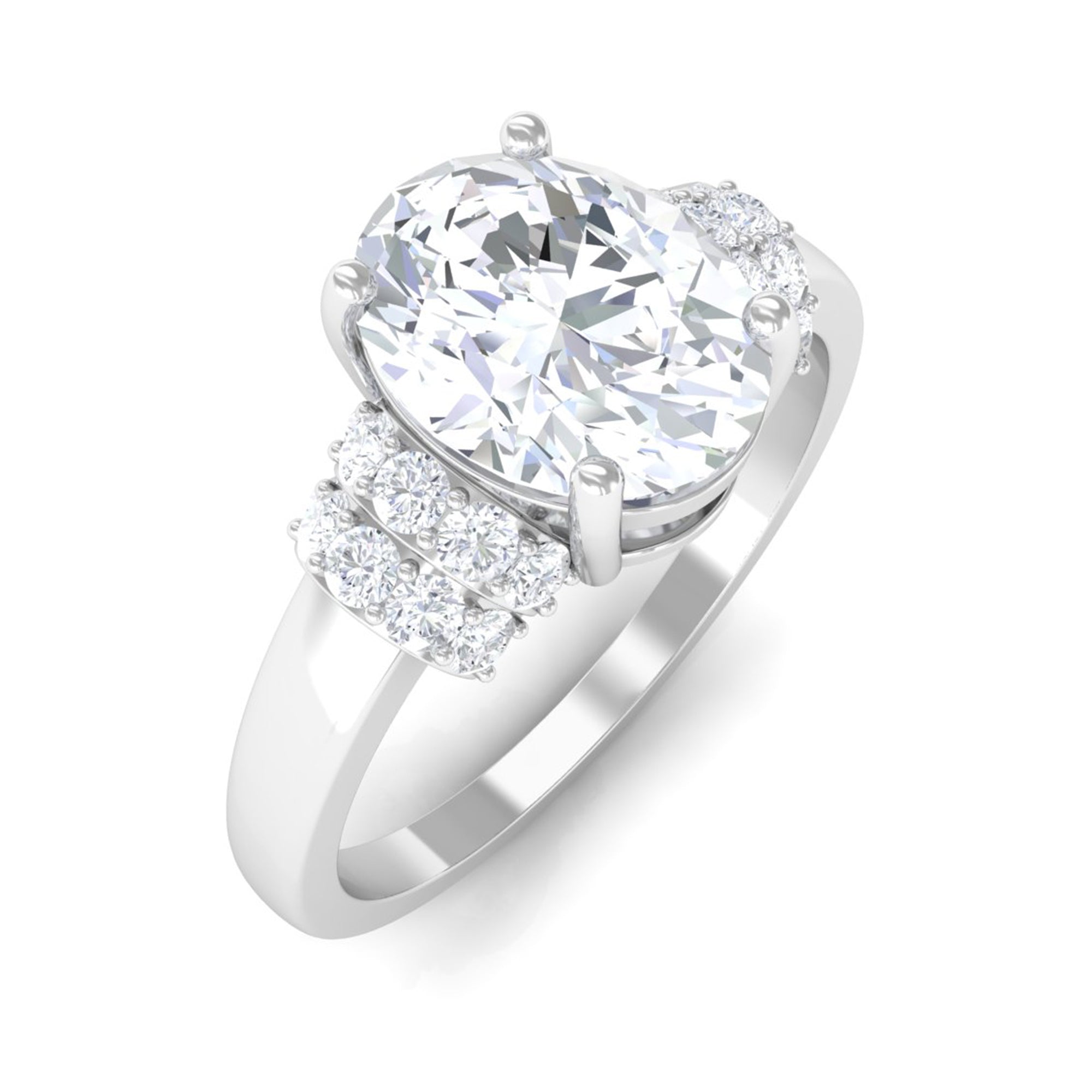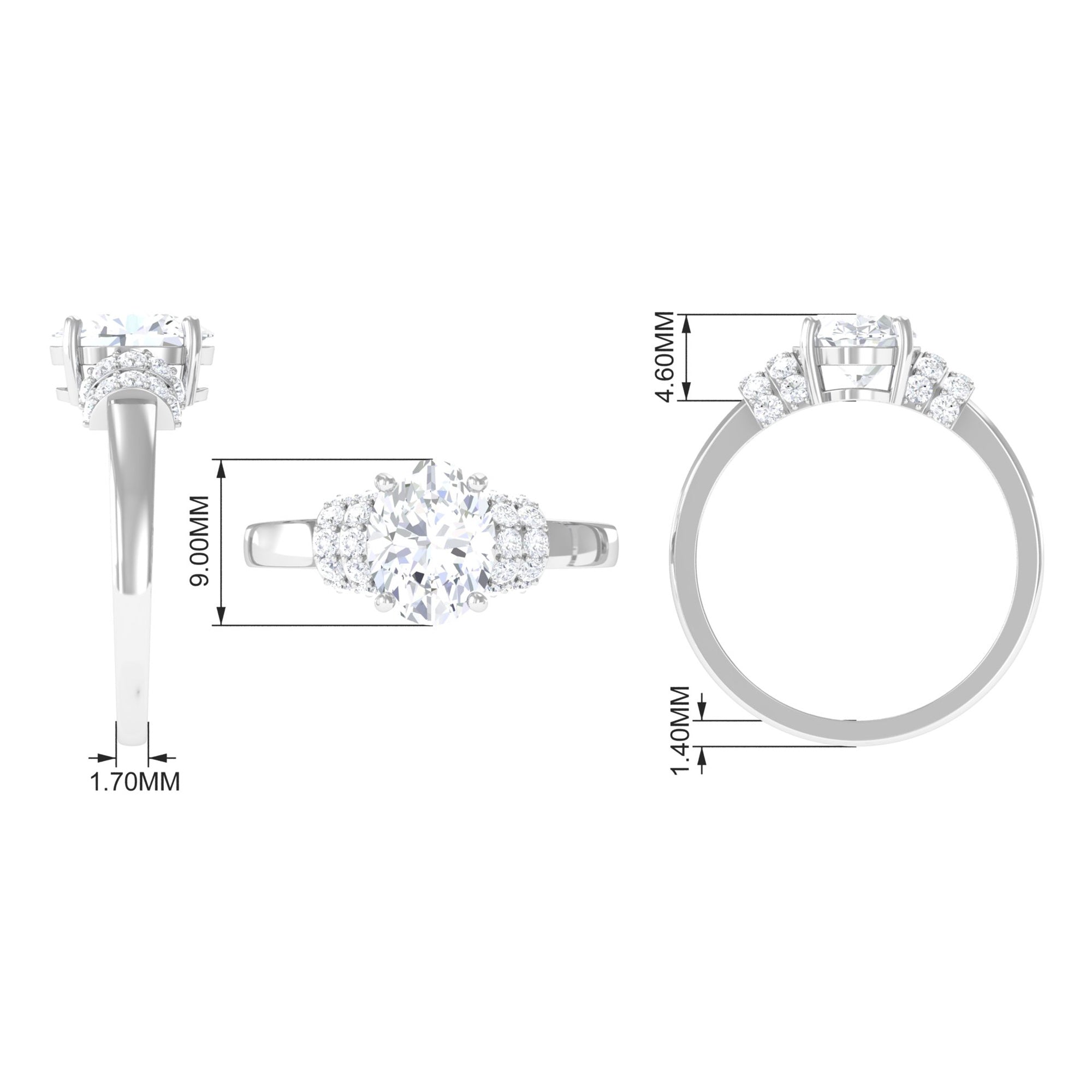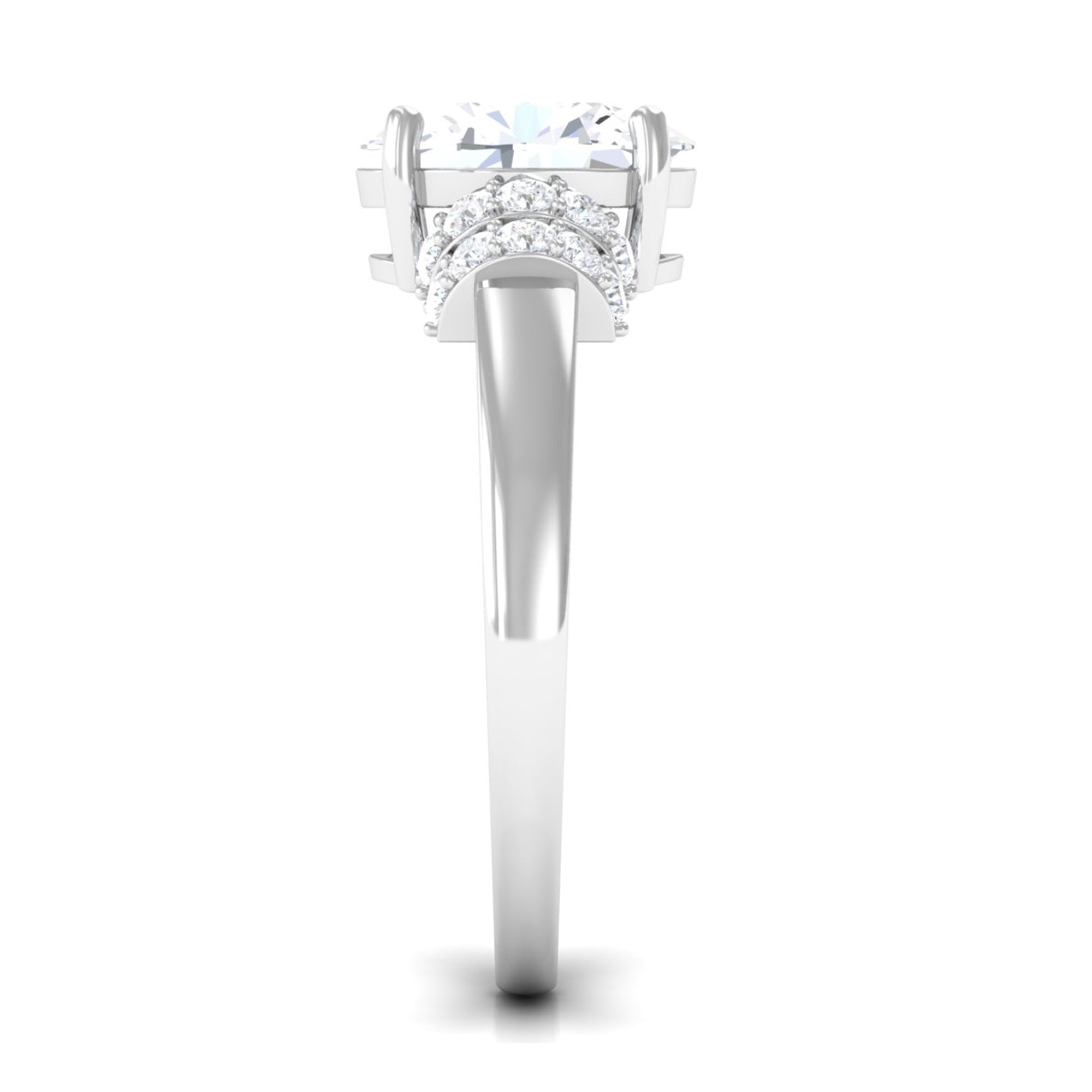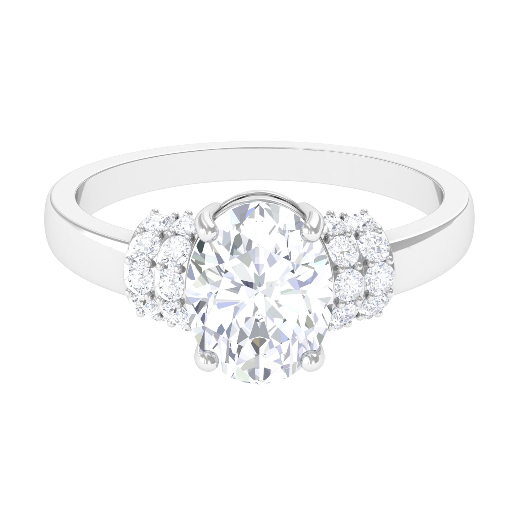 Oval Zircon Engagement Ring with Collar