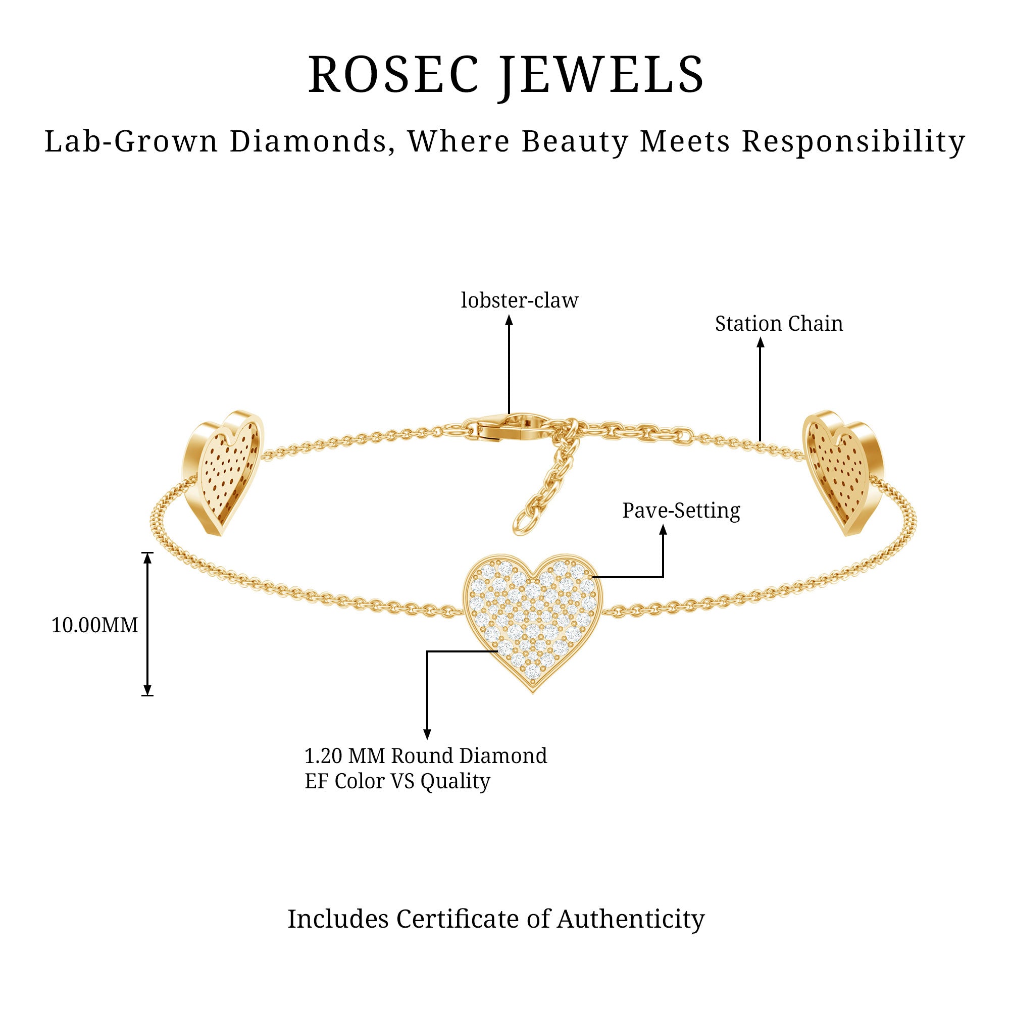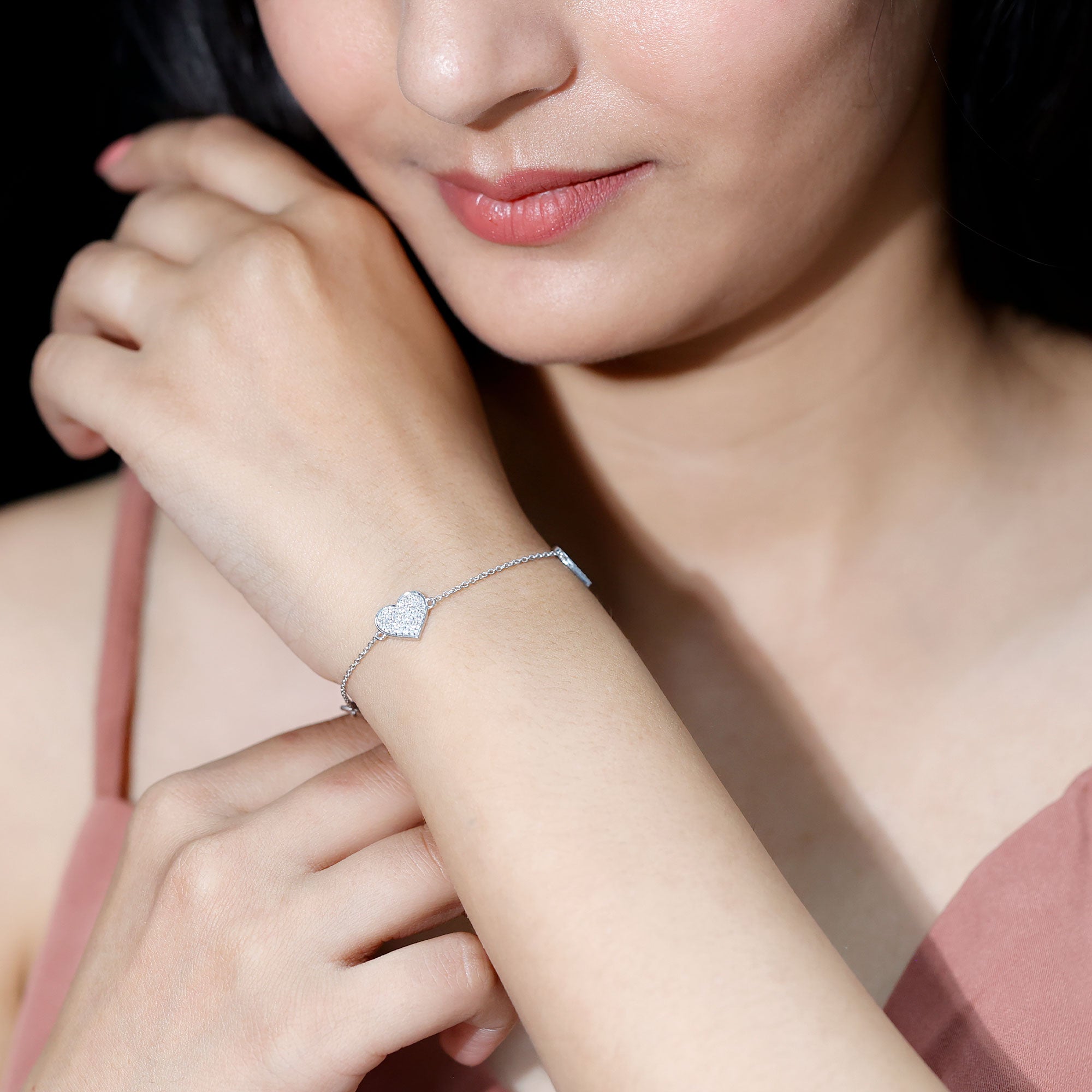 Pave Set Lab Grown Diamond Heart Bracelet for Women