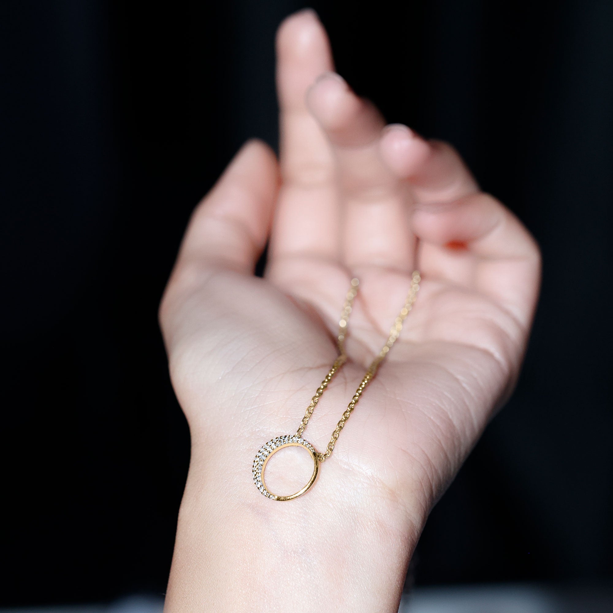 Looking for the perfect way to dazzle on special occasions - weve got the perfect Open Circle Necklace youre looking for. This stunning Eternity Necklace features an open circle design, gracefully decorated with round cut pave set diamonds on the half side in a crescent moon-like pattern, exuding timeless elegance and fiery brilliance. Designed with a delicate cable chain, this Lab Grown Diamond Necklace allows for an adjustable fit, ensuring comfort and ease on your neckline. It is not just a necklace, it is a statement representing love that is rare, beautiful, and timeless. The moment she sees it, shell know this is the Round Necklace made just for her.