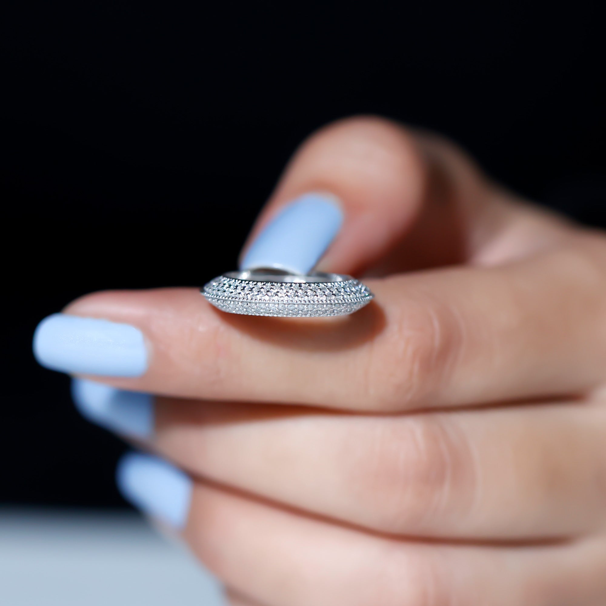Imagine a ring that shines with gentle light and feels timeless from every angle. The design brings together round cut moissanite stones arranged in an even pattern that circles the entire band. Each stone is set closely together in a delicate pave setting, creating a steady line of sparkle that looks elegant yet calm. The Moissanite Wedding Band itself has a graceful shape that feels comfortable to wear every day, yet still looks special for meaningful moments. Fine milgrain details run along the edges of the Full Eternity Band, adding soft texture and a touch of vintage charm. These tiny beads give the Moissanite Eternity Band a handcrafted look and highlight the care that goes into its creation. The full eternity style means the brilliance continues all the way around, symbolizing endless connection and lasting promise. Designed with simple beauty in mind, the Moissanite Anniversary Ring offers both shine and subtlety. It works wonderfully as a wedding band, an anniversary gift, or a piece worn simply because it brings joy.