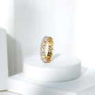 Shining with simple elegance, this Moissanite Anniversary Ring combines classic style with everyday comfort. The band is decorated with beautiful baguette and round cut moissanite stones. The stones are arranged in an alternating pattern, creating a lovely flow of sparkle across the full eternity band. It is designed to feel light and comfortable on your finger, making it perfect for daily wear. You can wear it at work, while going out with friends, or even when relaxing at home. The Moissanite Wedding Band is versatile and suitable for many occasions. It makes a wonderful eternity band, a meaningful anniversary gift, or a stylish stackable ring to add to your collection. You can wear it on its own to enjoy its simple beauty, or stack it with your engagement ring for a full and glamorous bridal look. The combination of baguette and round stones gives the Moissanite Eternity Band a balanced and elegant design. Its sparkling design suits any style and can be worn every day. Whether you are celebrating a special occasion or just want a ring that looks elegant and stylish, this Eternity Wedding Band is a perfect choice.