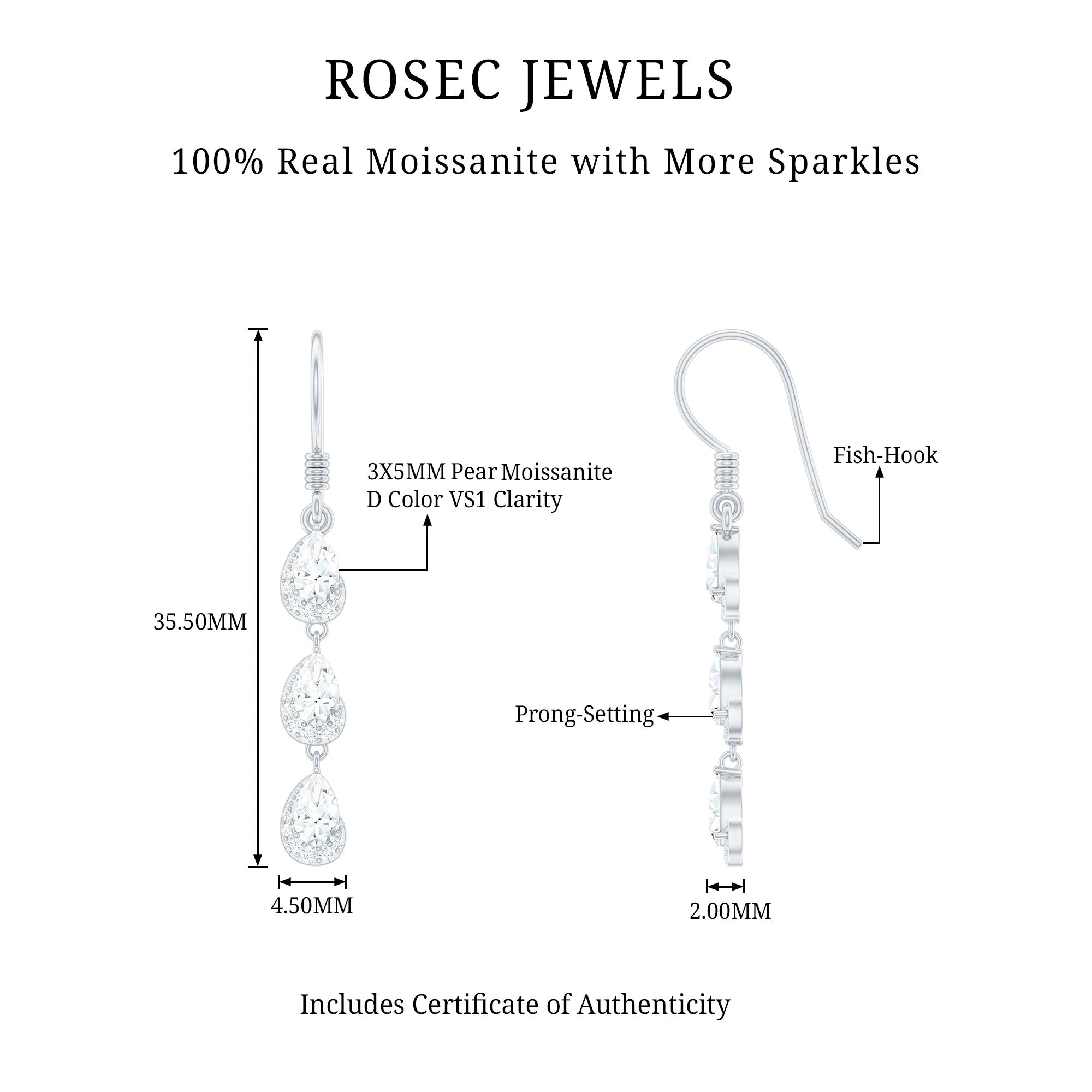 Add some more sparkle to your everyday look with these Moissanite Dangle Earrings. The beautiful pear-cut Moissanite dangle with round Moissanite accents, making them a fascinating addition to your jewelry collection. These solid gold earrings are here to enhance your radiance and warmth. Wear your sparkle all day, every day with these must-have Dangle drop earrings from Rosec Jewels.