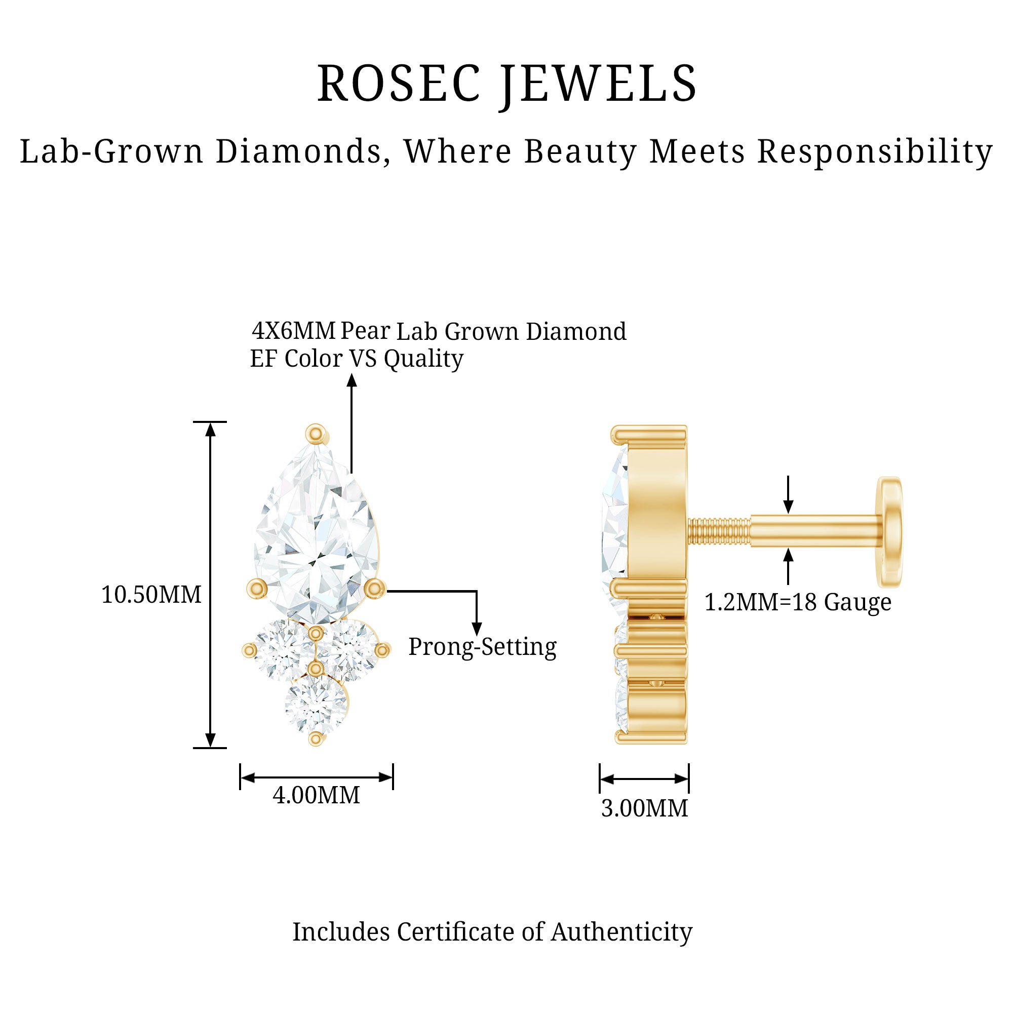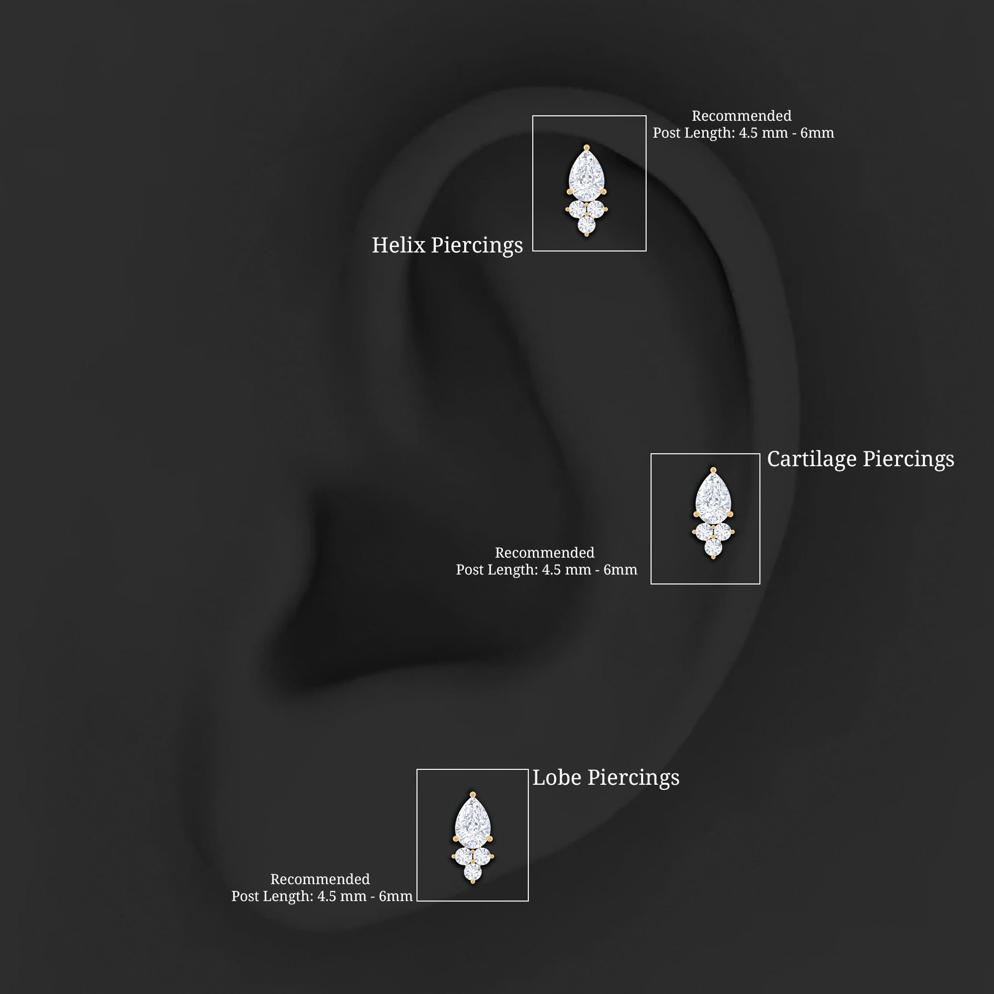 Pear and Round Diamond Earring for Helix Piercing