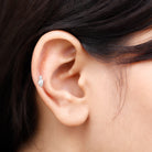 This simple and dainty Tragus Earring is embellished with Pear and Round Cut Moissanite secured in Bezel Setting, crafted with Real Gold Metal for a shiny appearance. You can wear it on your Helix, Cartilage, Tragus, Conch, or Upper Lobe Piercing. Get this Moissanite Earring for your loved ones as a Birthday, Anniversary, or Graduation Gift.