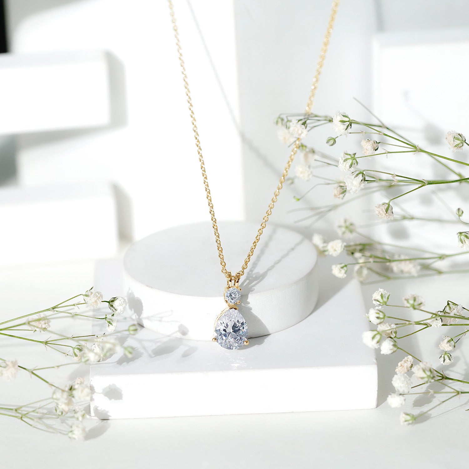 This Zircon Pendant Bridal Necklace exudes a classic shine which makes it perfect to be worn as a statement piece with official or casual looks. It features an 8X10 MM Pear shape Moissanite securely placed in Prong Setting. This Pear Necklace beholds the remarkable shine of 5A Zircon that makes you the center of attraction. This pendant can be a beautiful choice for your special lady on her birthday or anniversary. This Drop Necklace will be shipped to you in a premium quality packaging with the certificate of authenticity.
