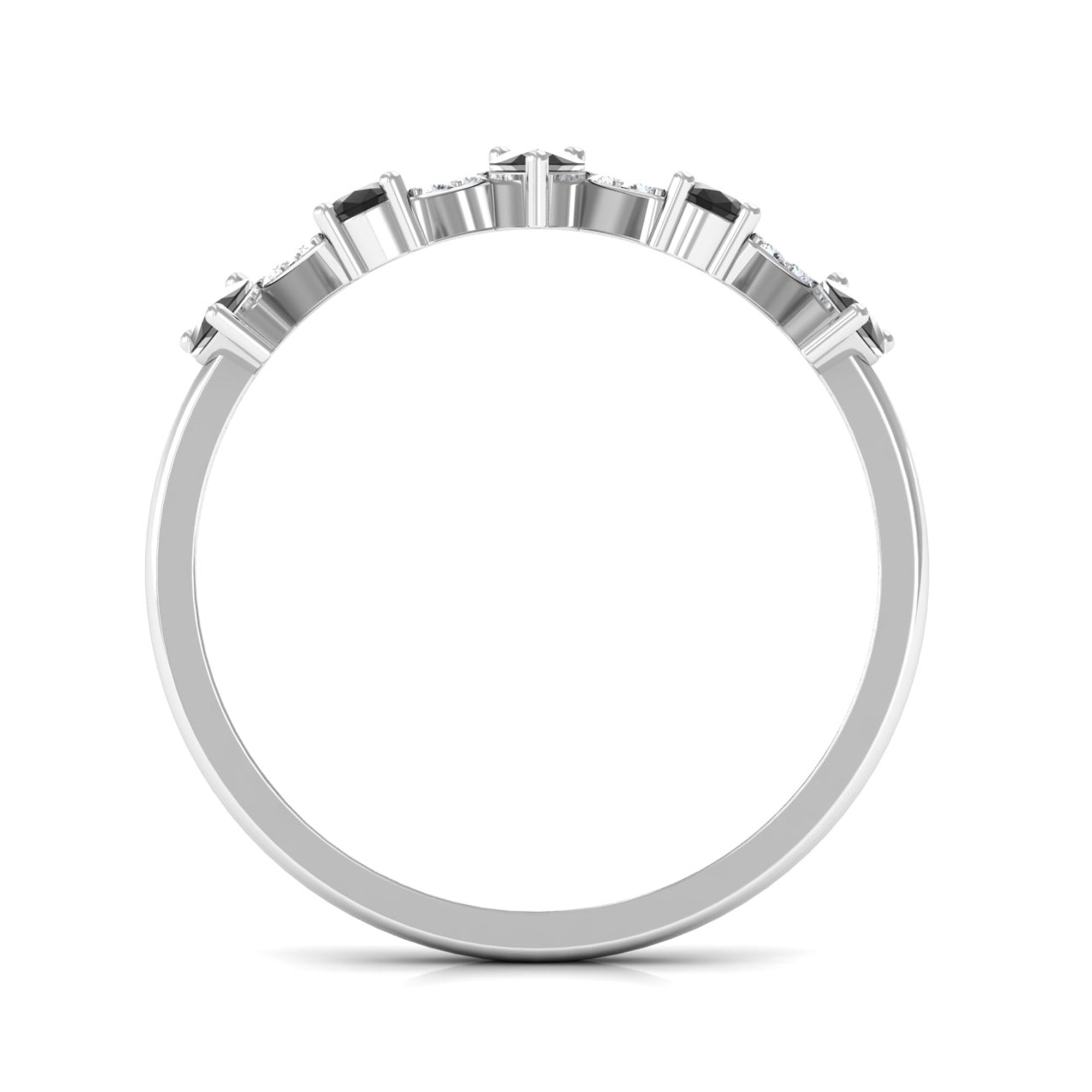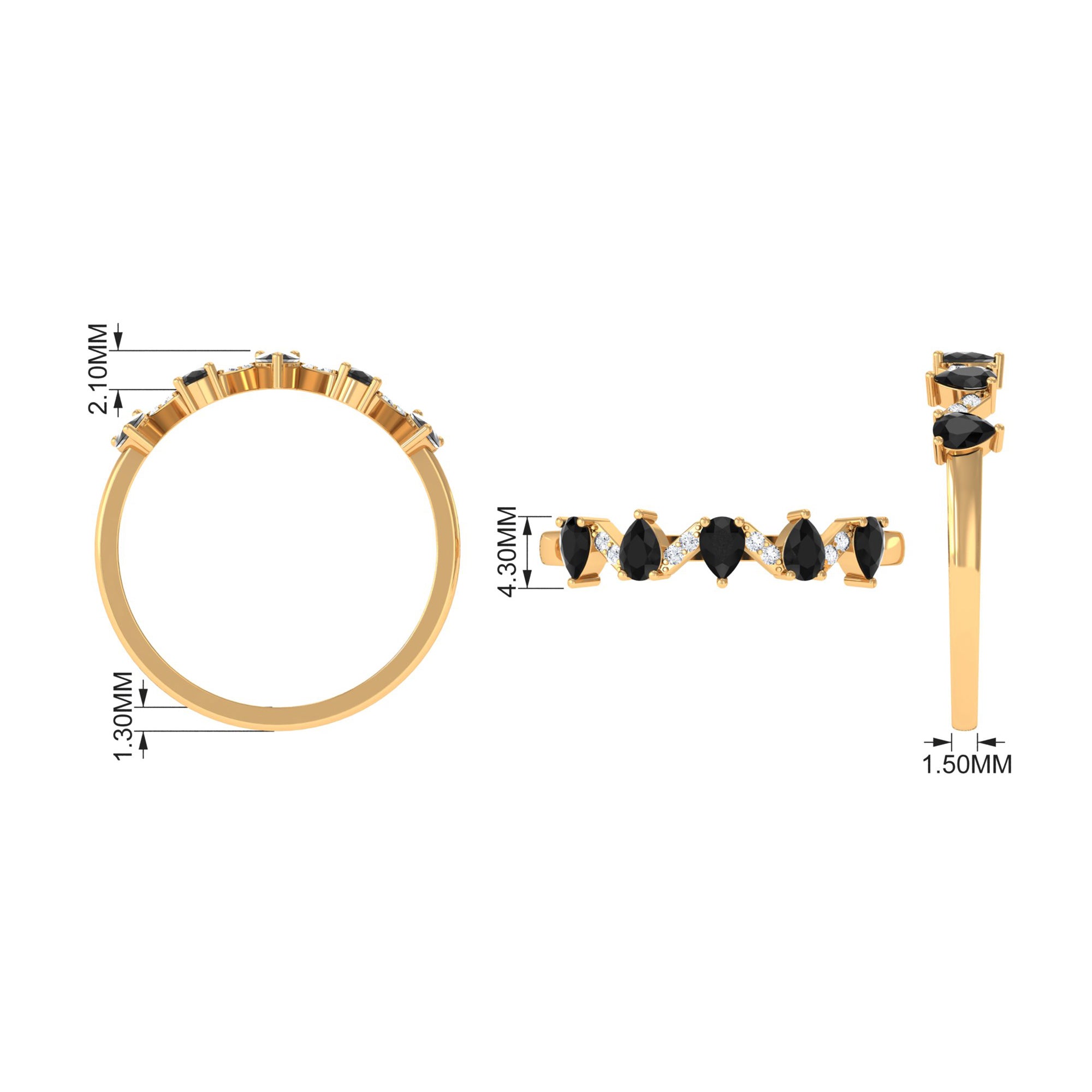 With this lovely Pear Half Eternity Band Ring, you can add a charming appeal to your appearance. On this Semi Eternity Band, Pear Cut Black Onyx is set in a prong setting with petite Round Shape Diamond stones. An opulent jewelry accessory for special occasions.
