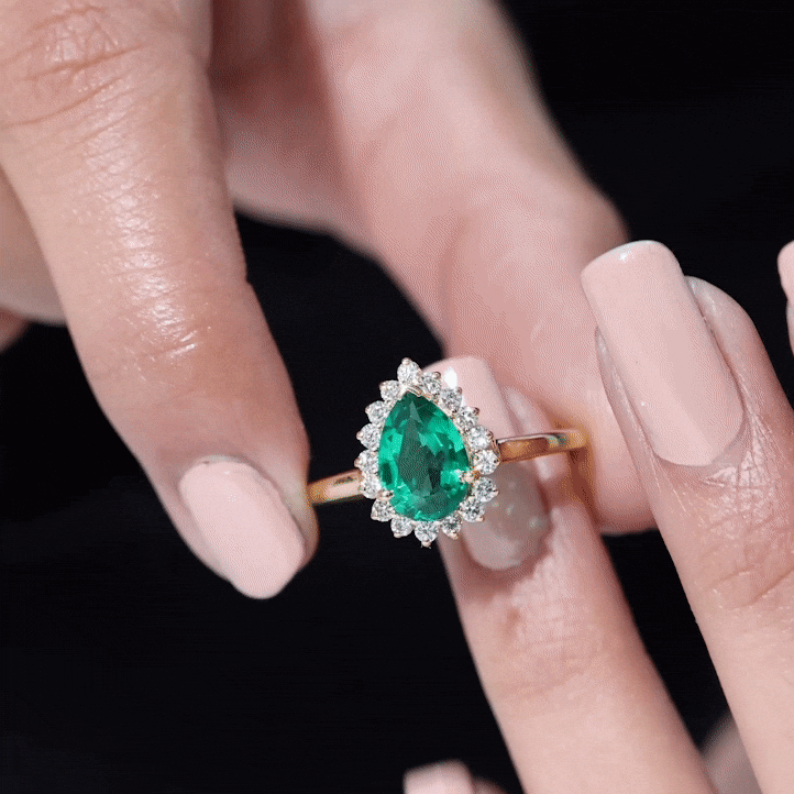 This beautiful Teardrop Engagement Ring blends modern design with timeless elegance, making it a perfect symbol of love and commitment. Crafted from high quality metal, the Halo Ring features a sparkling 7X10 MM pear shaped lab created emerald set securely in a prong setting and framed by small round shape diamonds set in a halo style, adding a touch of vintage charm to its modern look. At the center, the AAAA-quality lab-created emerald shines brilliantly. Crafted with precision, this gem offers exceptional beauty and sustainable elegance, making it the perfect highlight of this cocktail ring. The teardrop shape gives the ring a soft, romantic feel, perfectly representing the promise of forever and the strength of your bond. Designed to celebrate love in its purest form, this Pear Shaped Engagement Ring stands out with its simple yet captivating appeal. Whether you are marking a meaningful milestone, planning a thoughtful gift, or celebrating an anniversary or Valentine’s Day, this Statement Ring is a graceful choice. Its cocktail design is suitable for daily wear while still being special enough for significant moments.