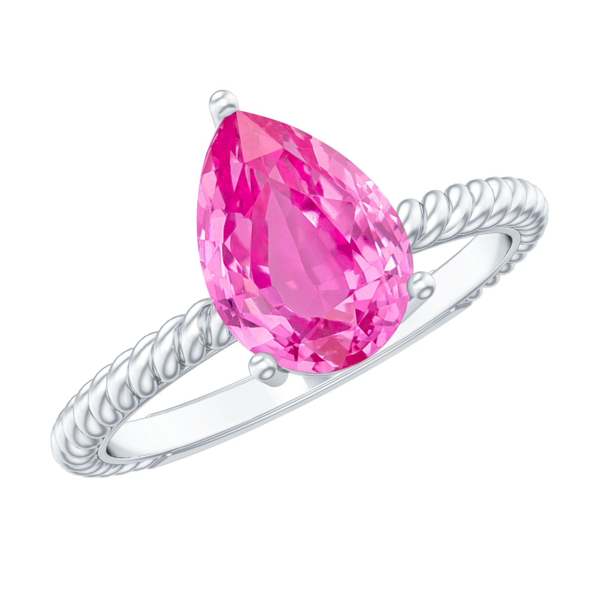 Pear Created Pink Sapphire Solitaire Engagement Ring