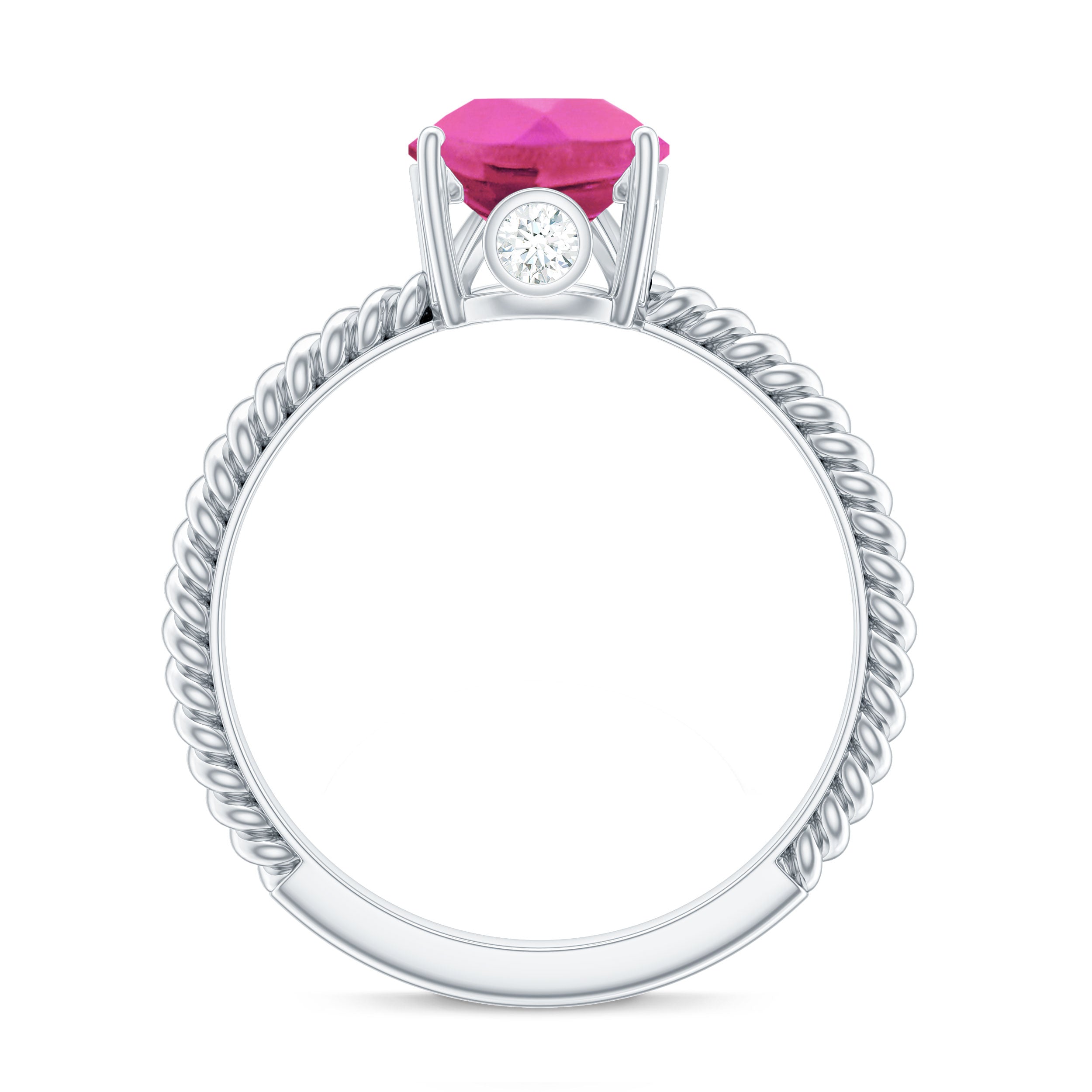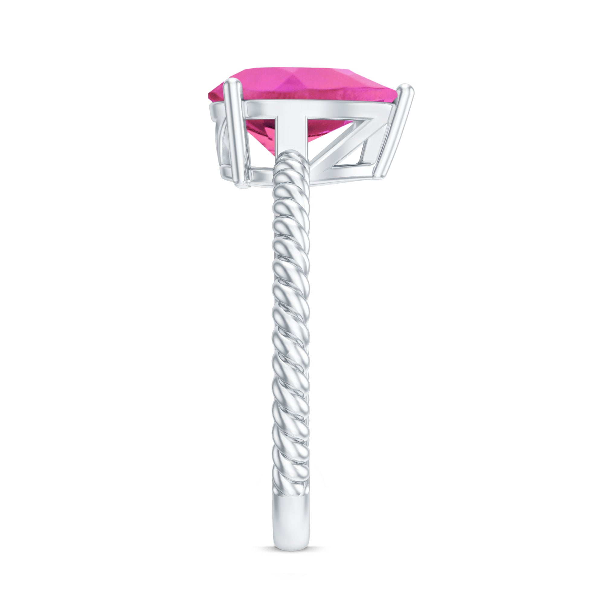 The Solitaire Engagement Ring is beautifully adorned with Pear Shaped Created Pink Sapphire secured in Prong Setting while Round Shape Moissanite studded on the bridge of the ring. It doesnt matter what the occasion is, our Created Pink Sapphire Ring will never let you down, whether its a day on the go or a night out with your girls.