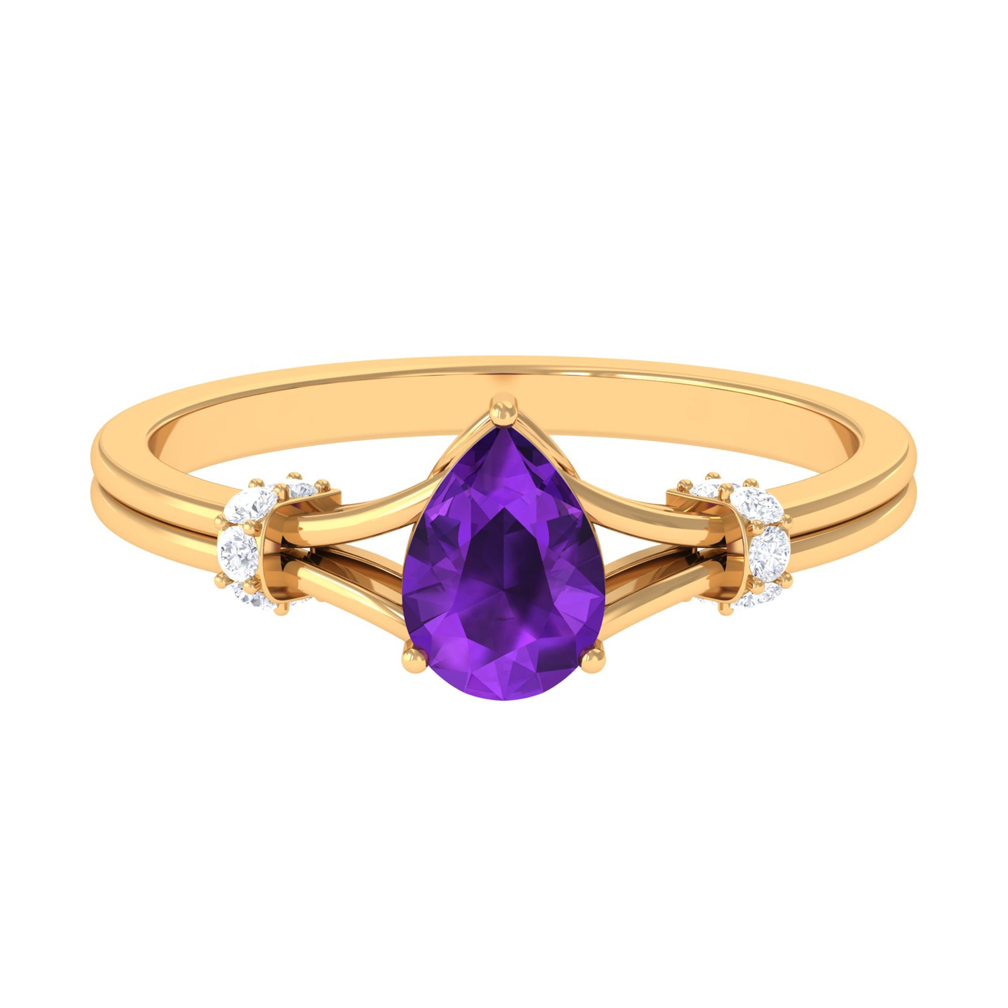 Pear Cut Amethyst Solitaire Ring with Diamond in Split Shank