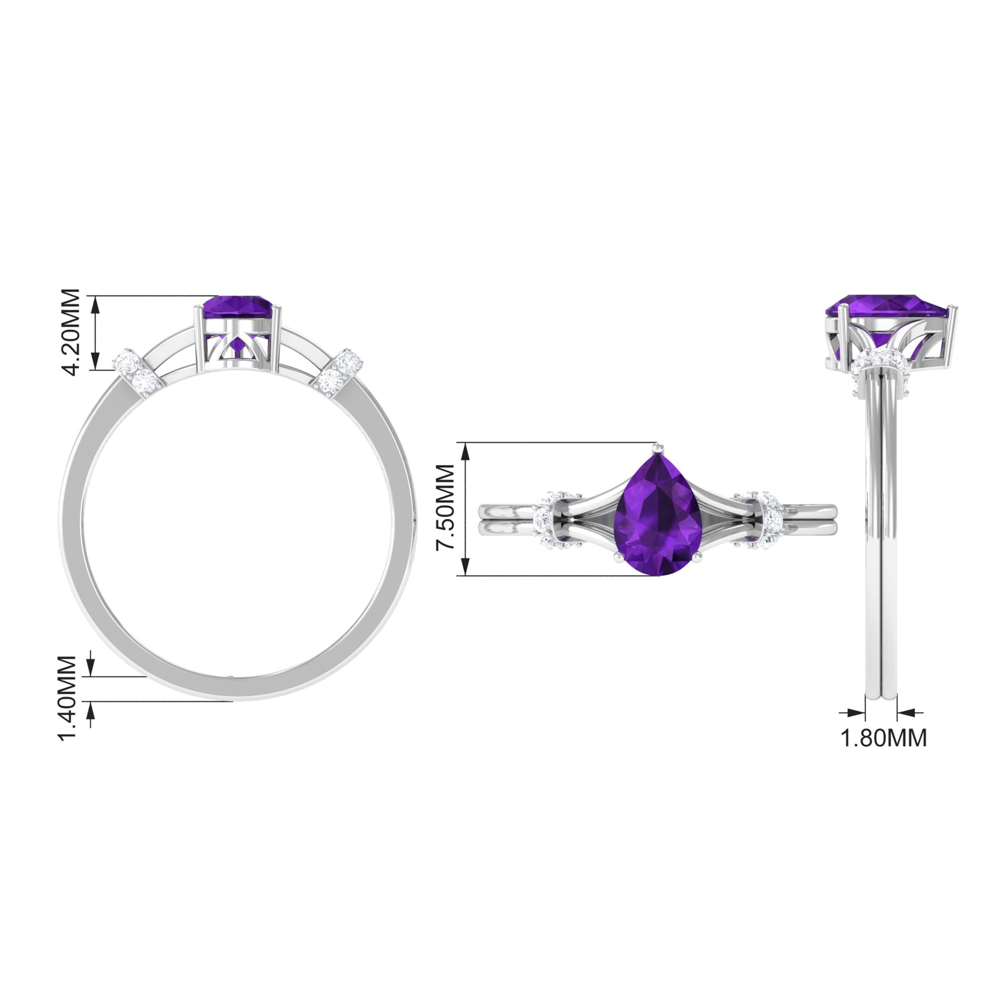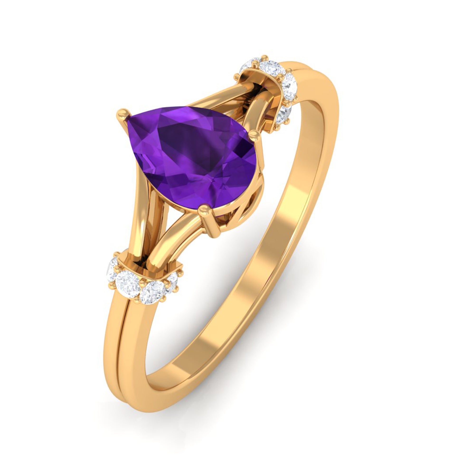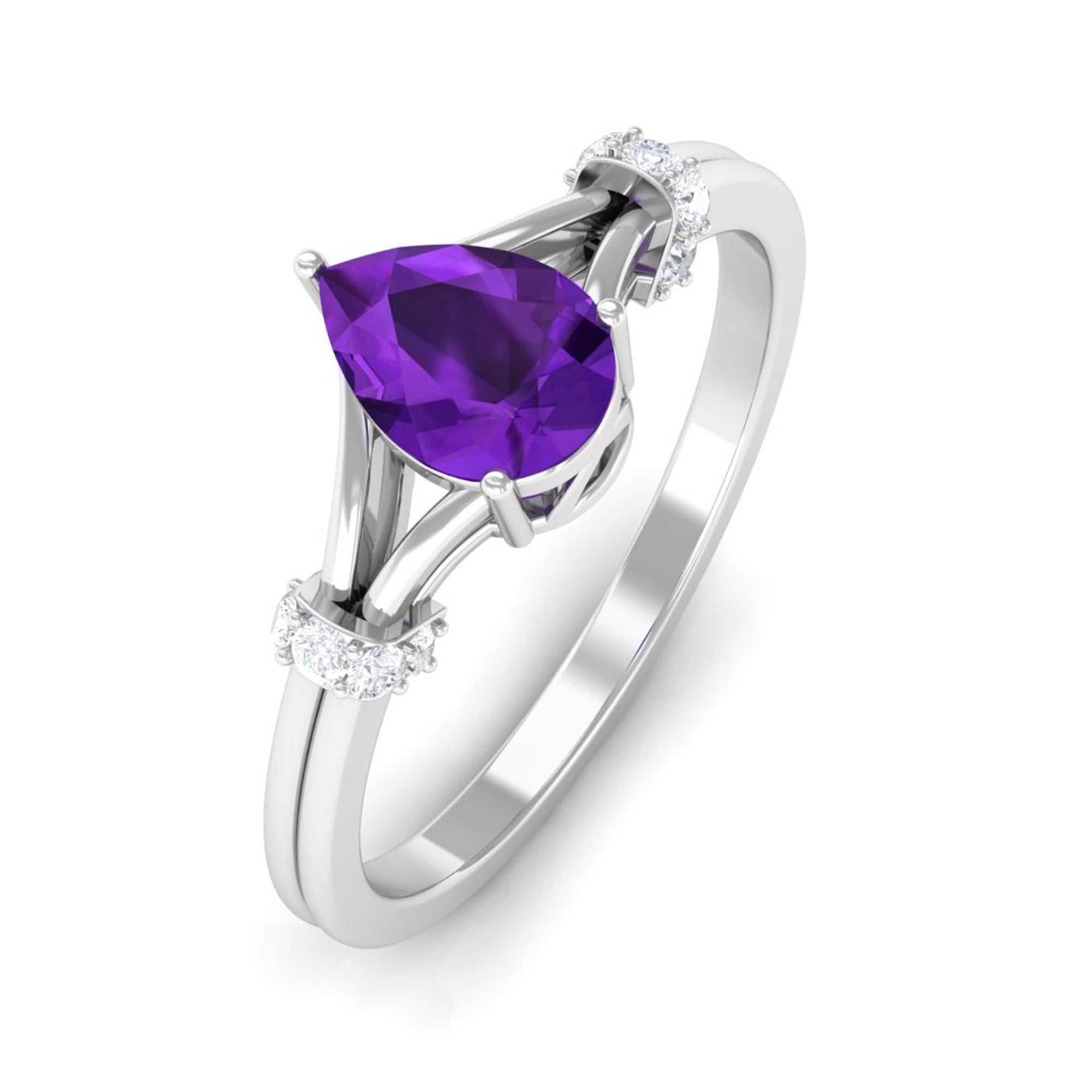Pear Cut Amethyst Solitaire Ring with Diamond in Split Shank