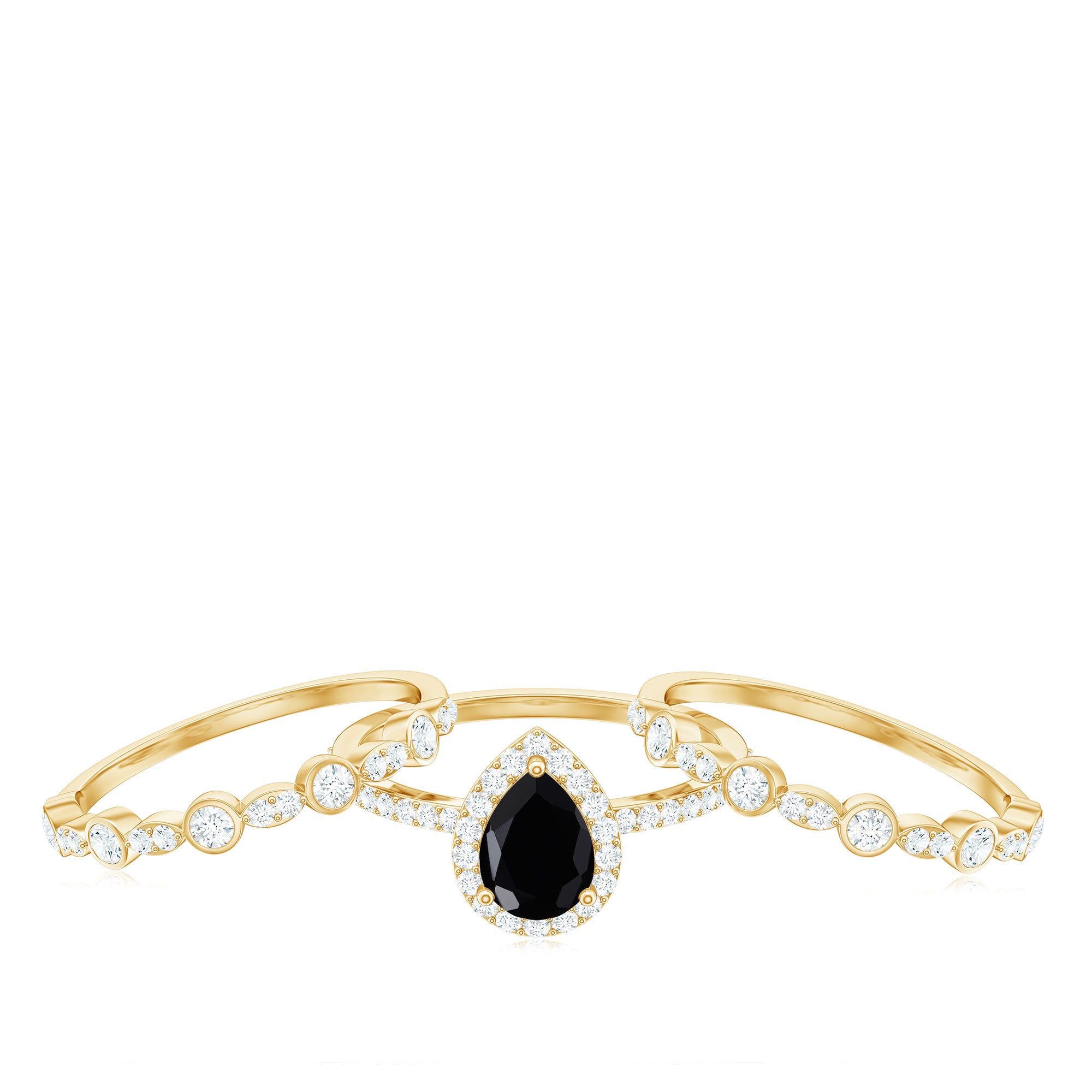 6x8mm Pear Cut Black Onyx Statement Ring Set with Moissanite Bands