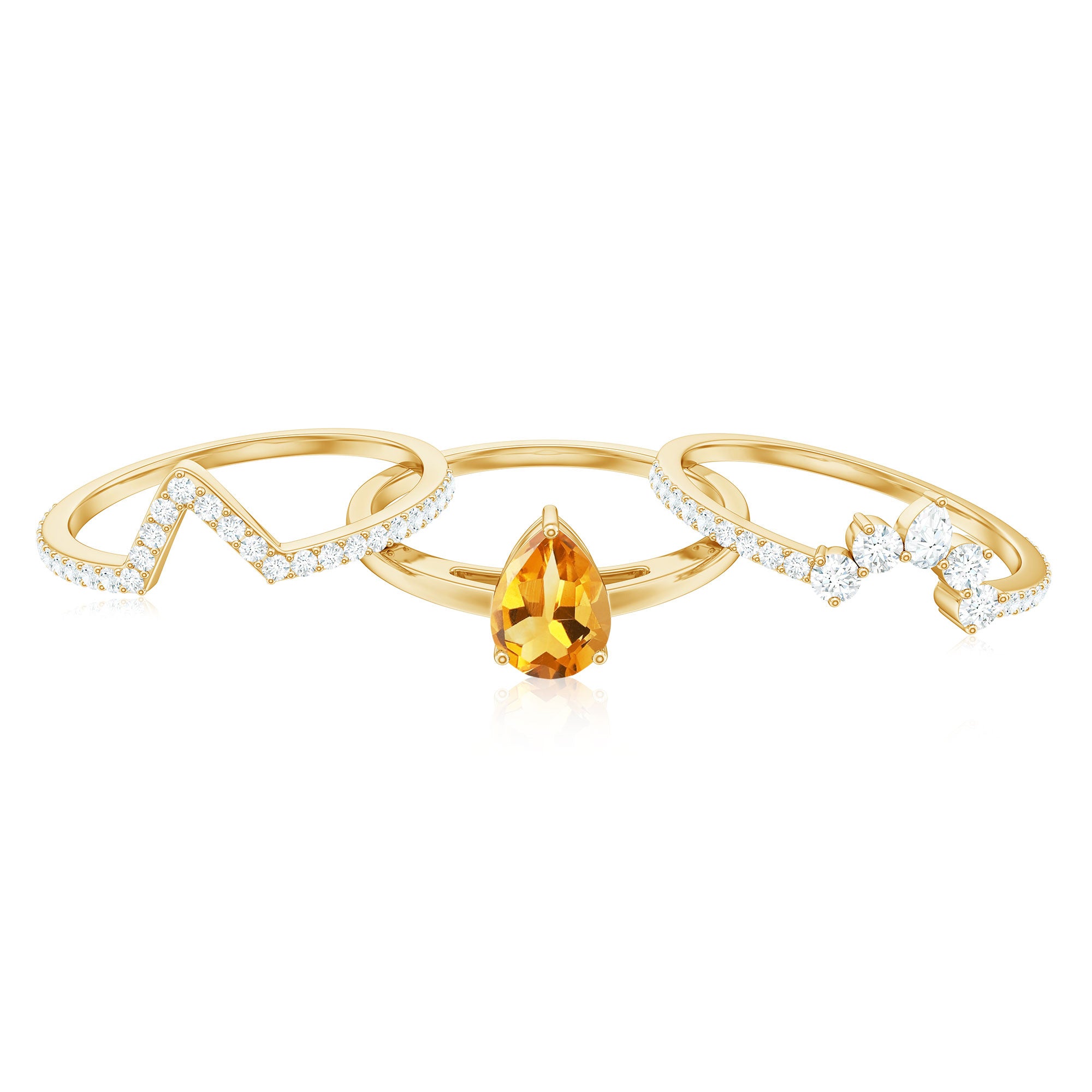 Natural Pear Shape Citrine Wedding Bridal Ring Set of 3 with Certificate