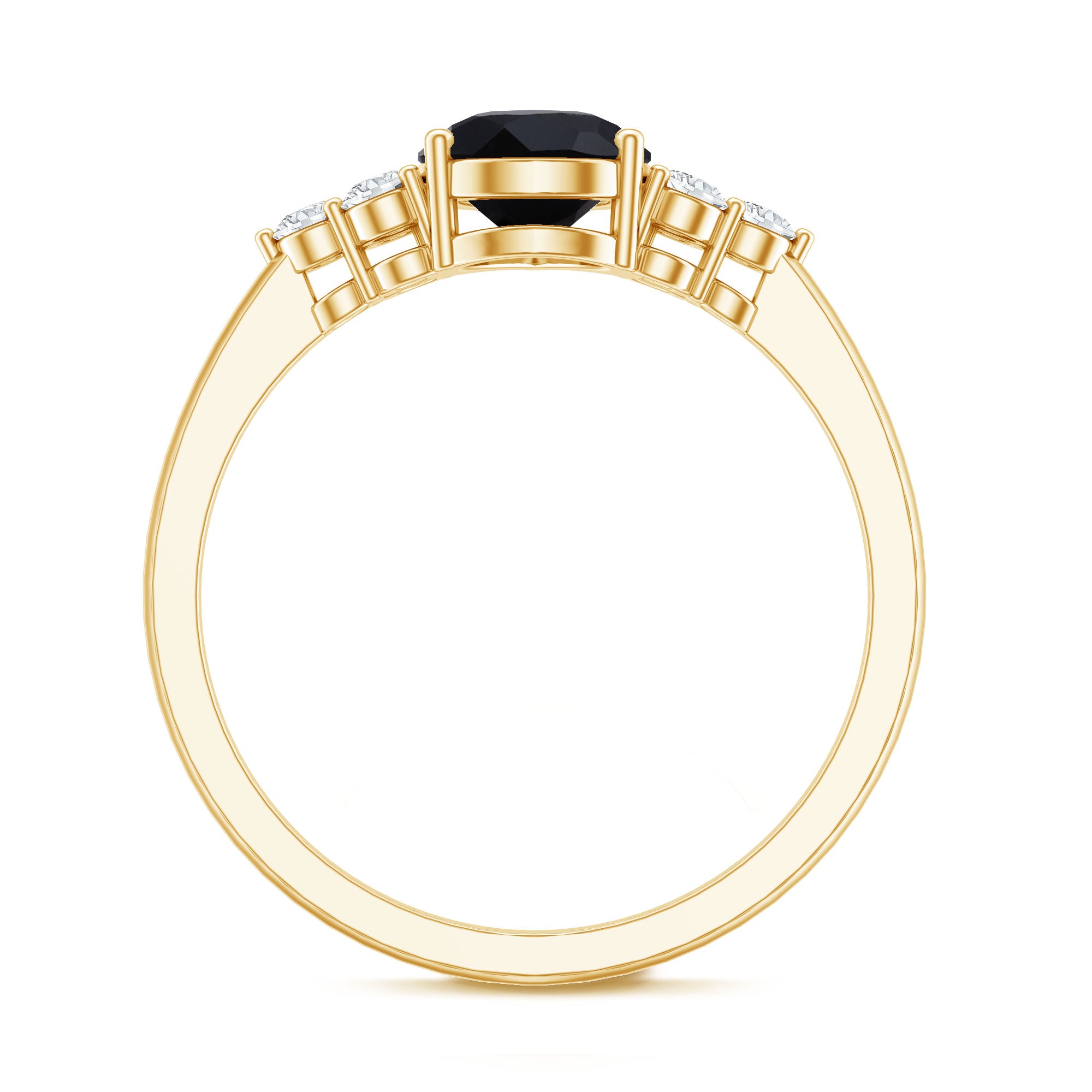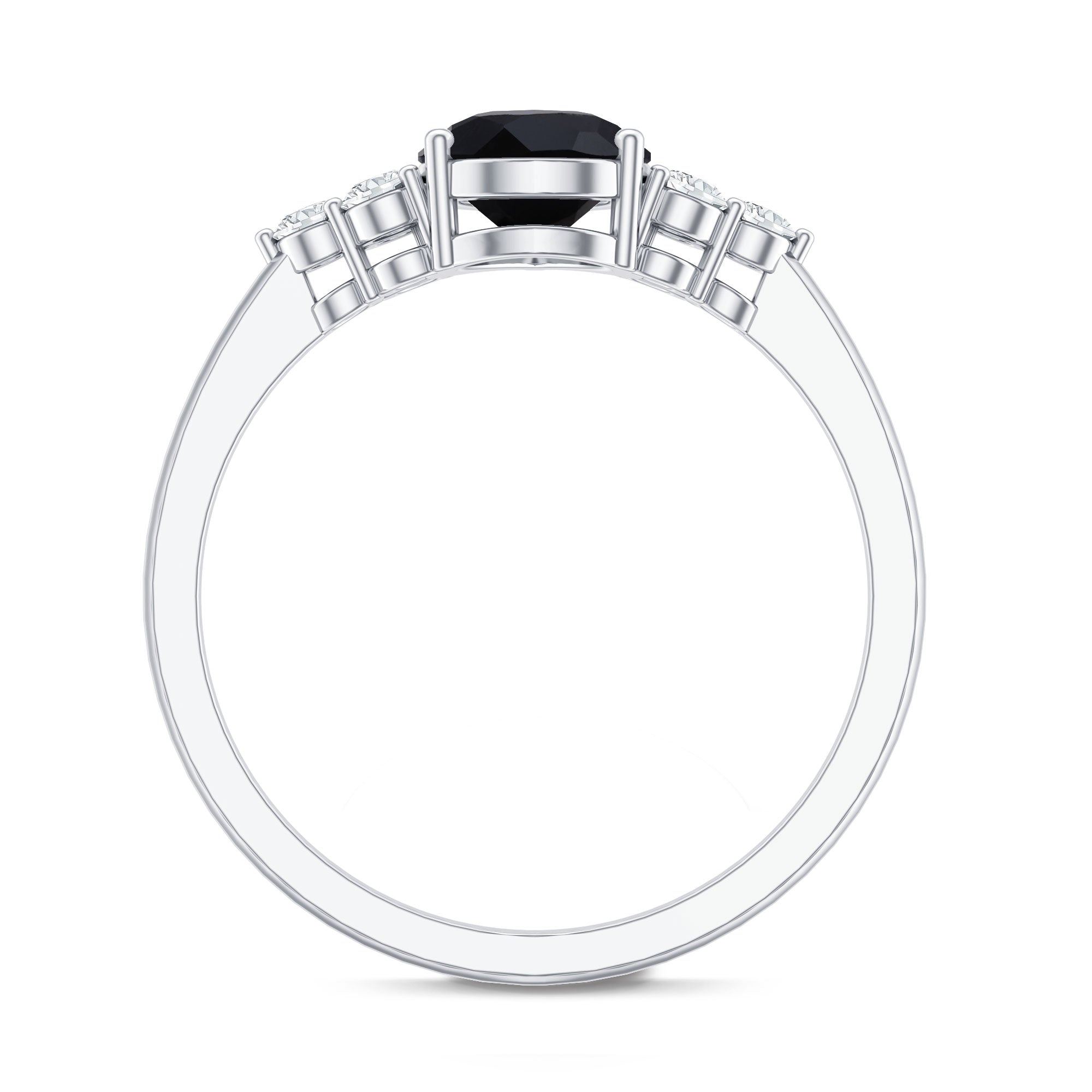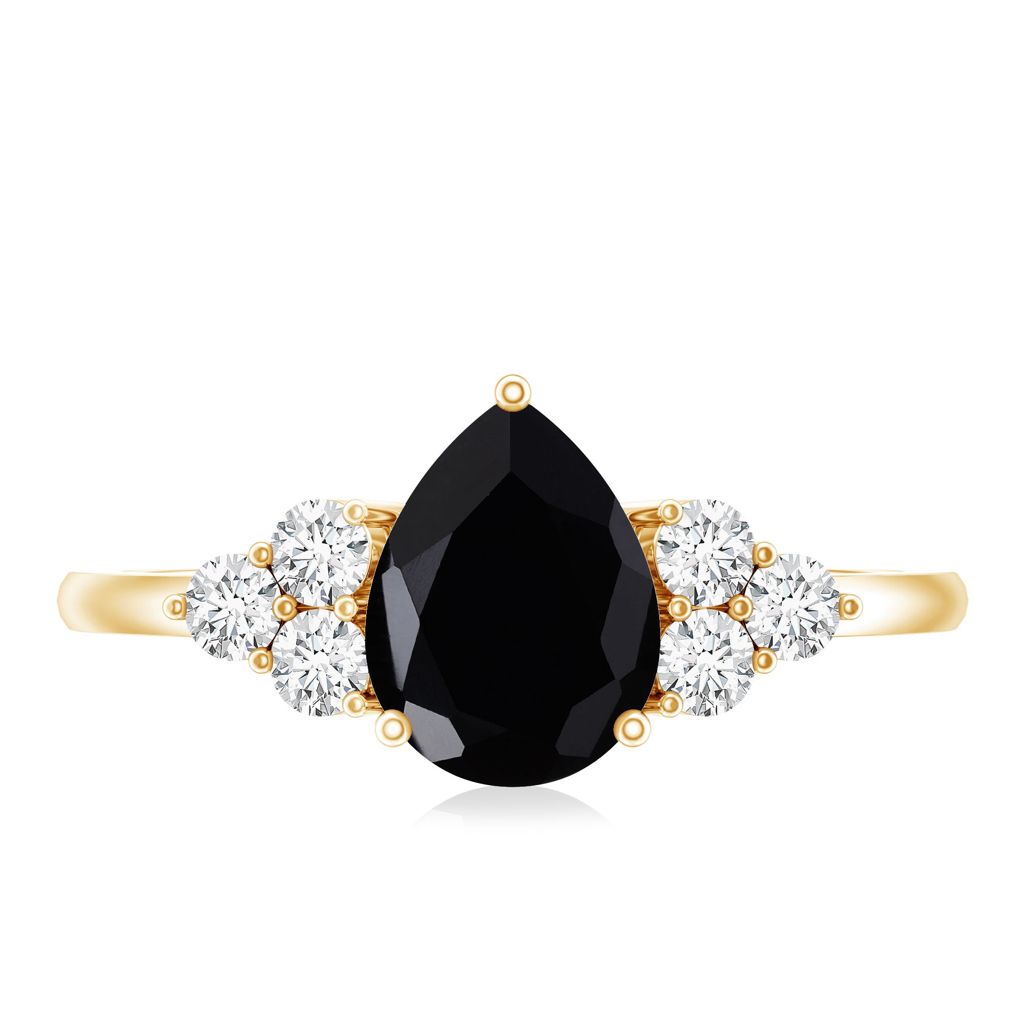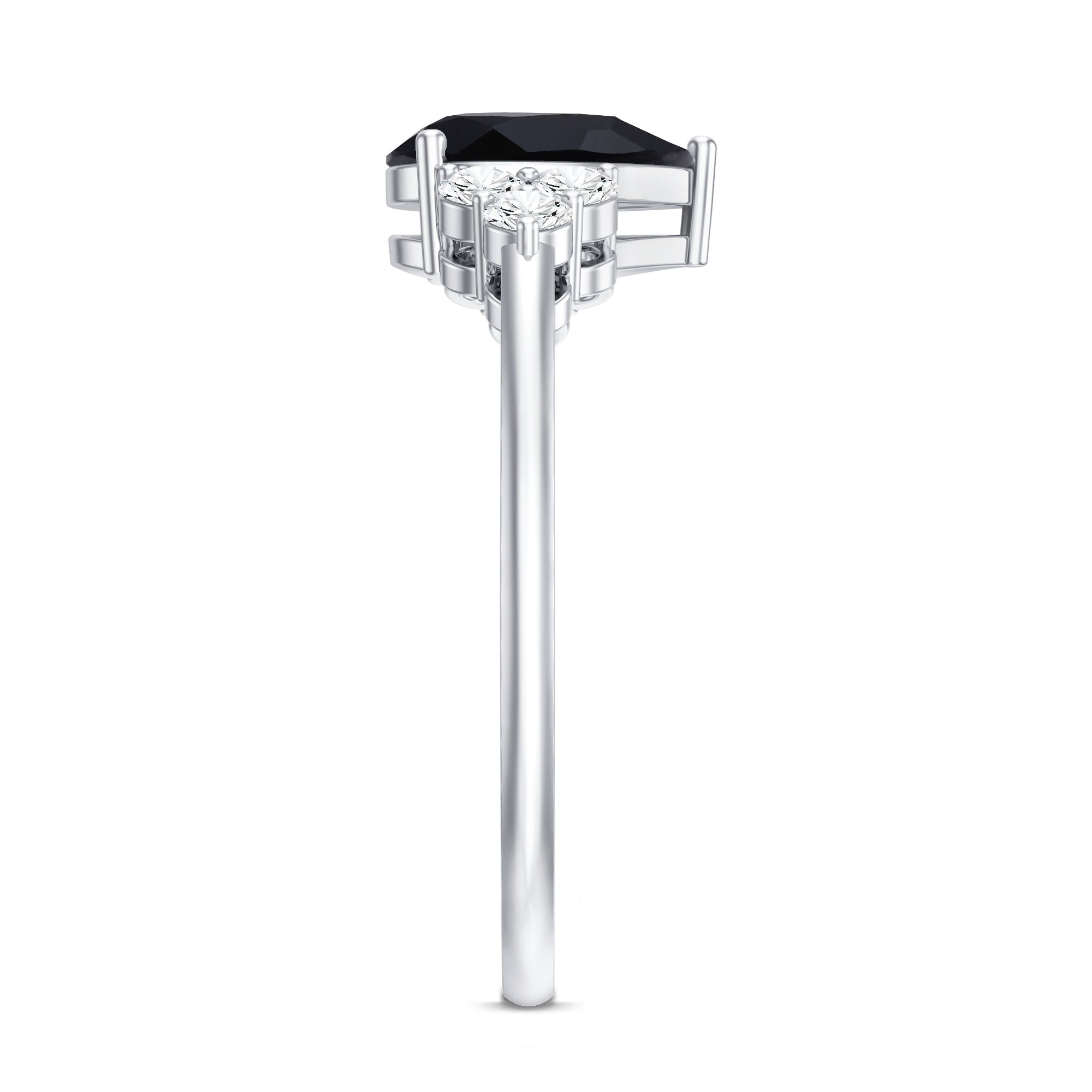 Pear Cut Created Black Diamond Solitaire Ring with Diamond Trio