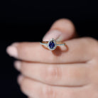 Pear Cut Created Blue Sapphire and Diamond Halo Ring