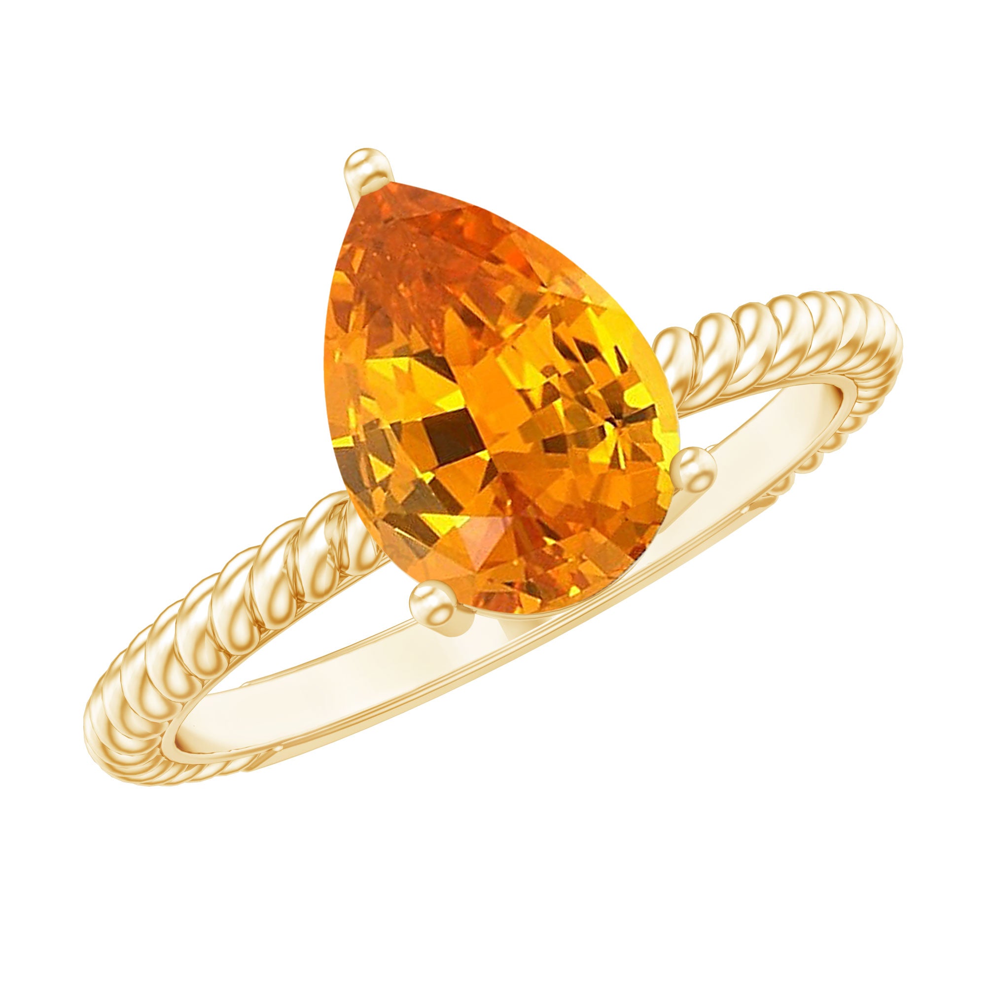 Pear Cut Created Orange Sapphire Solitaire Engagement Ring