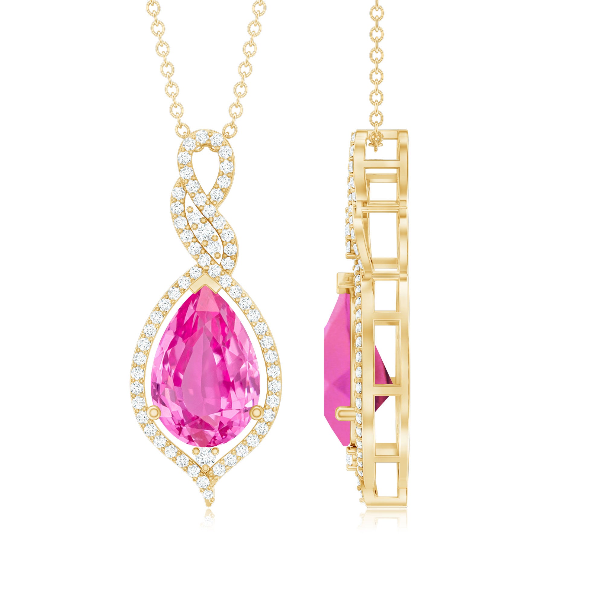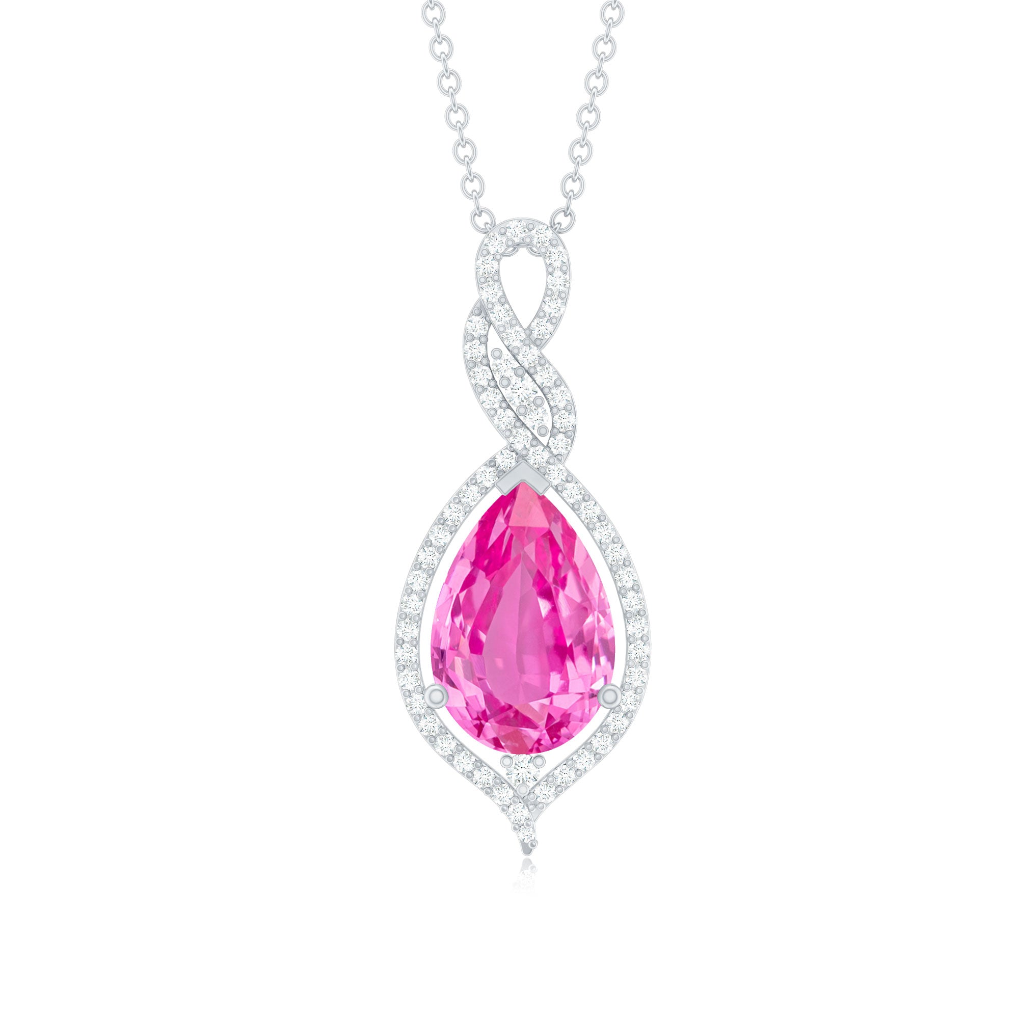 Pear Cut Created Pink Sapphire and Diamond Teardrop Pendant