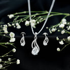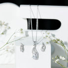 Pear Cut Cubic Zirconia Bridal Necklace and Earrings Set in Silver