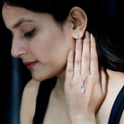 Complete your wedding day outfit with this CZ Jewelry Set, precisely crafted with 14K White Gold Plated Silver. This designer jewelry set features a pendant necklace and stud earrings. The necklace is crafted in a leaf design embedded with smaller stones, and a 7X10 MM Pear shaped Zircon is placed as the main stone secured in Prong Setting. The necklace is hanging from a standard bail and dangling from a sturdy cable chain, which makes it beautifully sit on the neckline. The stud earrings are also crafted in a leaf shape, embedded with smaller stones along with a 3X5 MM Zircon securely placed in Prong Setting. The Earrings Pendant Set beholds the classic shine of AAAAA Quality Cubic Zirconia that makes the wedding day outfit complete.