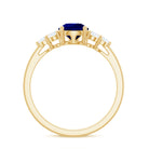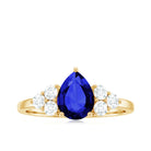 Pear Cut Lab Grown Blue Sapphire Solitaire Ring with Diamond Trio