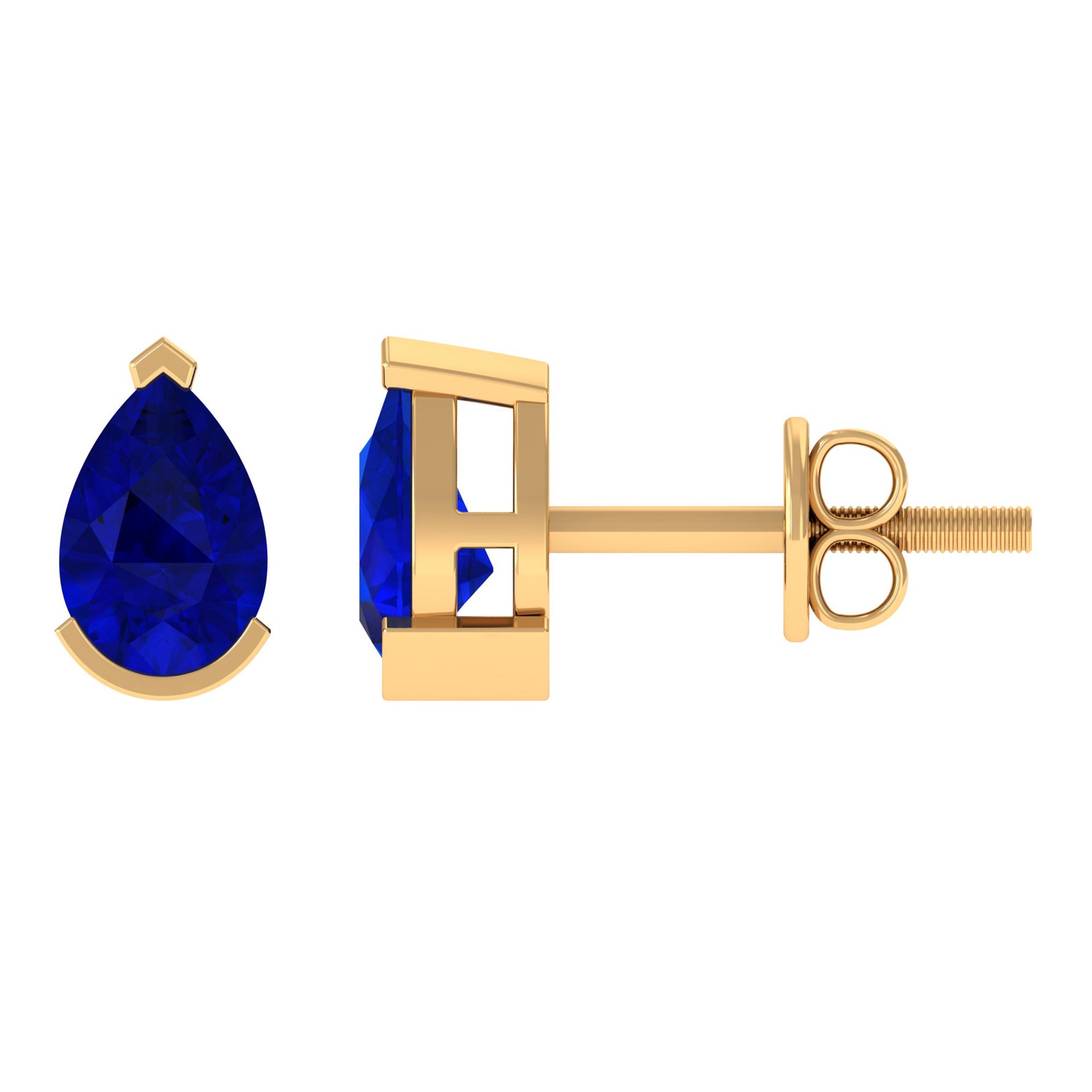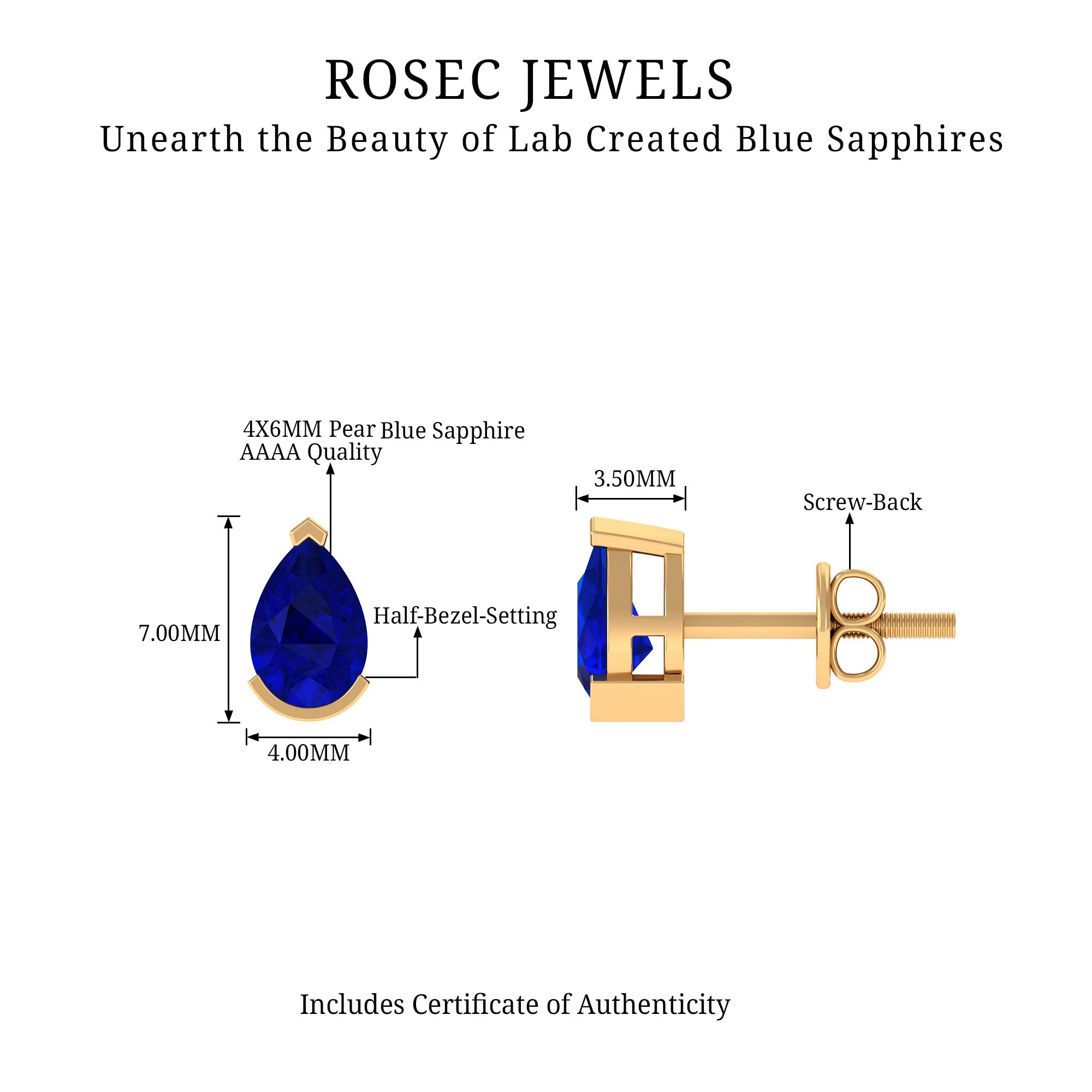 Elevate your style and stay on-trend with our stunning Solitaire Teardrop Earrings. Each earring features a Pear Cut Created Blue Sapphire, exquisitely set in a half Bezel Setting. These understated yet beautiful stud earrings are the perfect accessory to showcase your elegance. With a range of metal options available, you can customize these earrings to perfectly complement your unique style. Make a fashion statement and adorn yourself with these timeless gems.