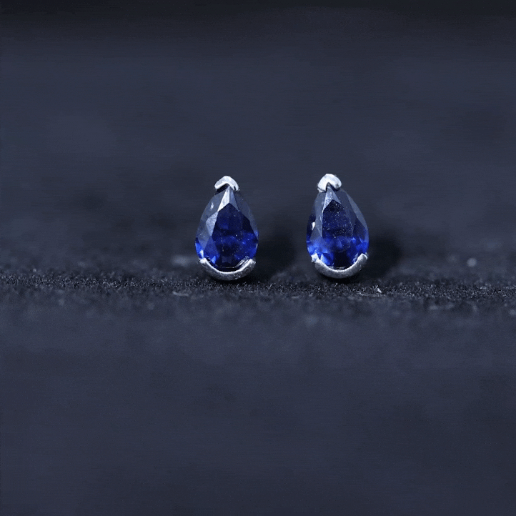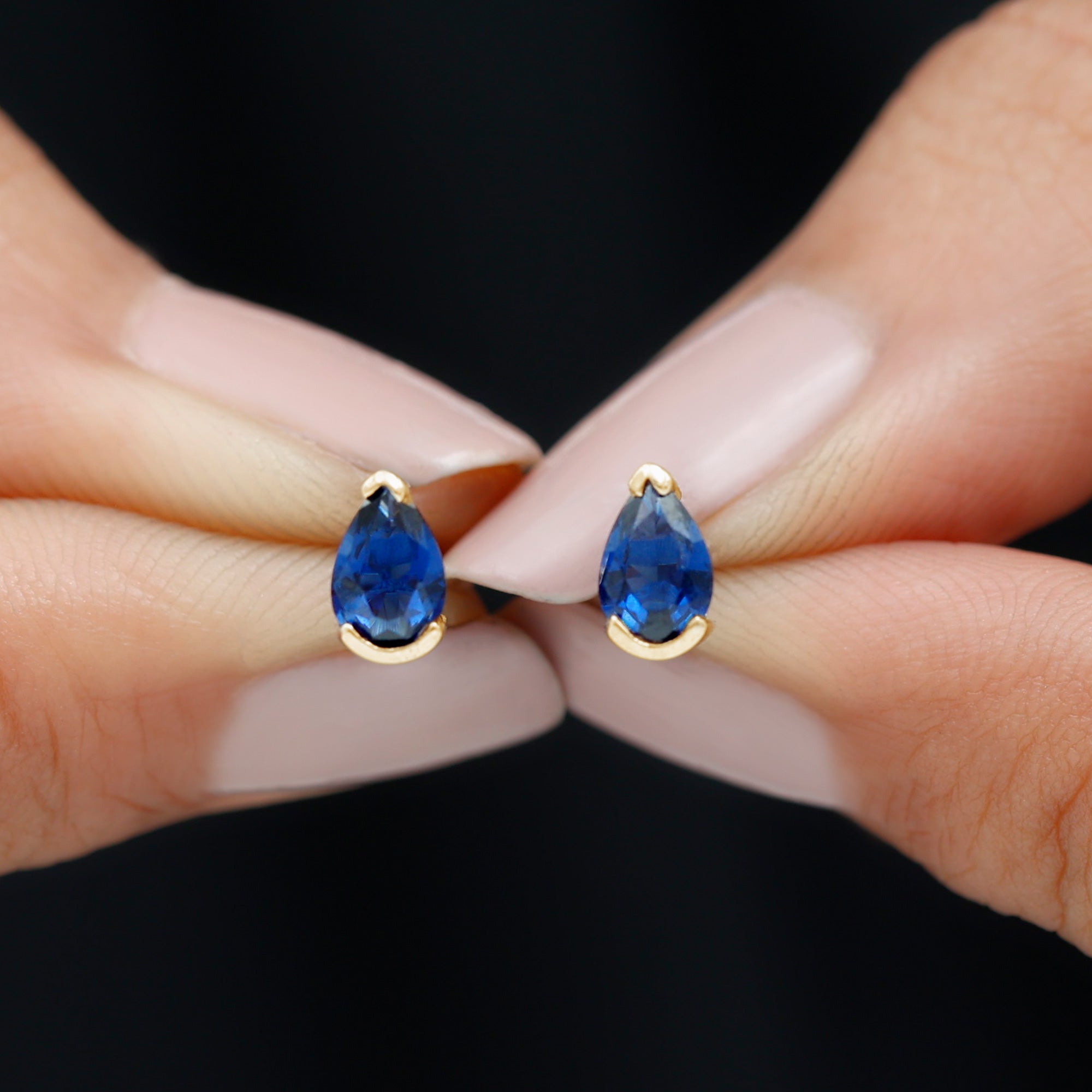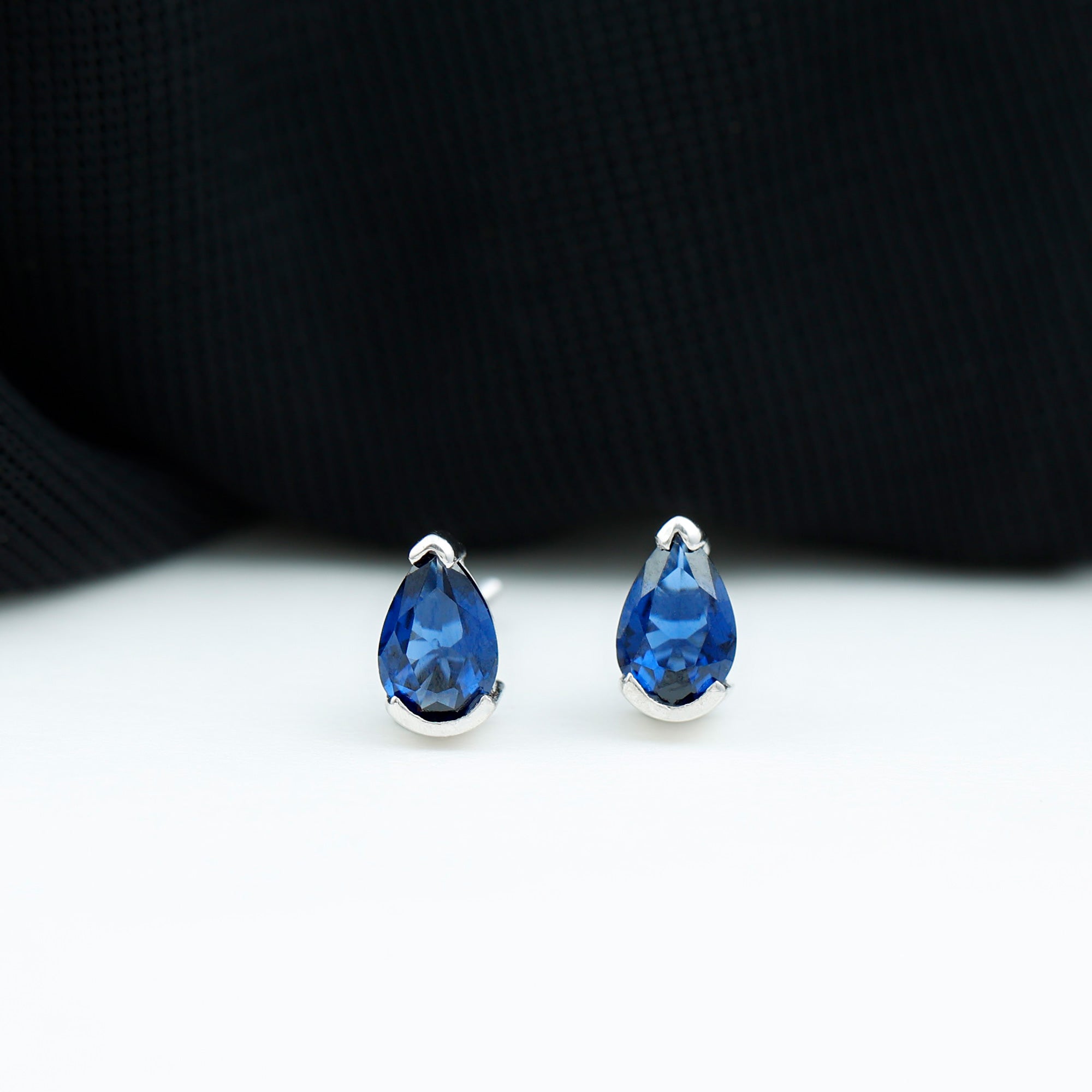 Pear Cut Lab Grown Blue Sapphire Solitaire Stud Earrings