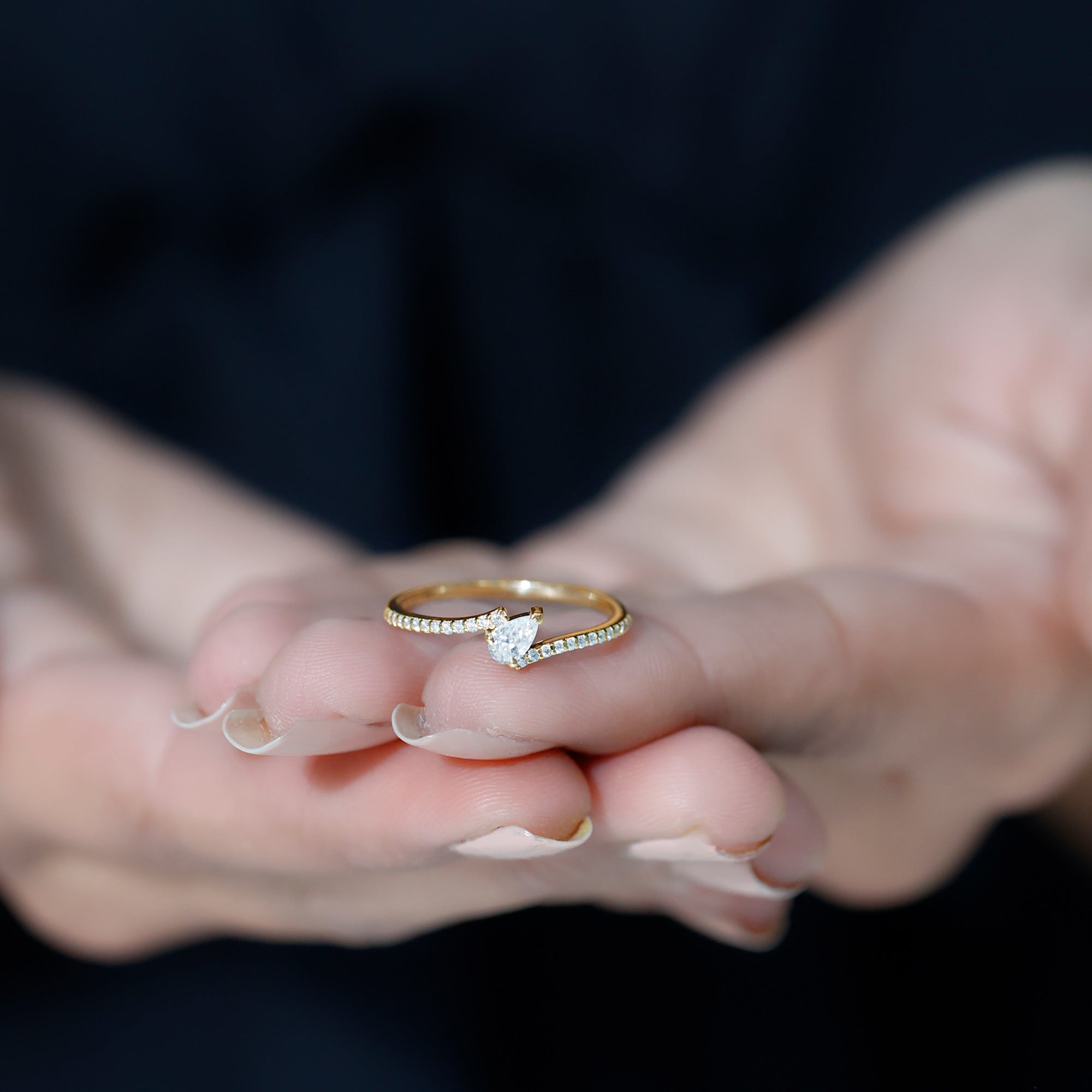 This stunning Pear Shaped Promise Ring beautifully combines classic design with a growing commitment. Show your deepening love with this Diamond Promise Ring for Her, which features a simple yet lasting design, gracefully complemented by a unique diamond-studded bypass shank that symbolizes the wonderful journey of two souls coming together. This delightful Commitment Ring showcases a 3X5 MM pear cut lab-grown diamond set in prong setting at a slightly tilted angle. Emphasizing the clarity and brilliant cut of an EF-VS Quality Lab Grown Diamond, it truly shines with stunning beauty, making it ideal for an unconventional romance. Celebrate your commitment with this Diamond Bypass Ring, whose elegant design draws attention while keeping a subtle and enchanting glow. This beautiful Lab Grown Diamond Ring will elevate any outfit, adding a touch of sophisticated shine and elegance. Additionally, it is available in various metal colors and purity options, allowing you to choose what best suits your style.