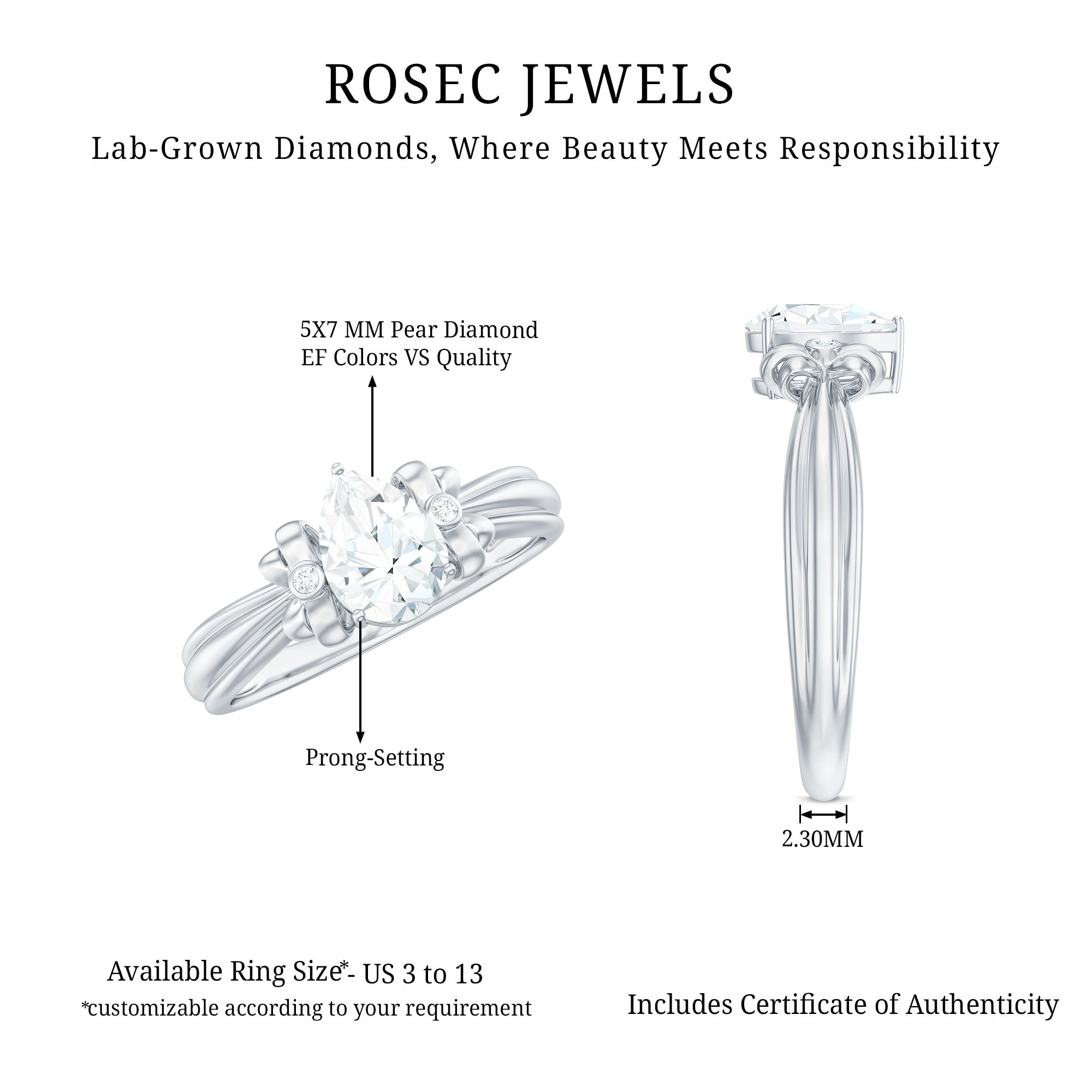 Pear Cut Lab Grown Diamond Solitaire Engagement Ring with Bow