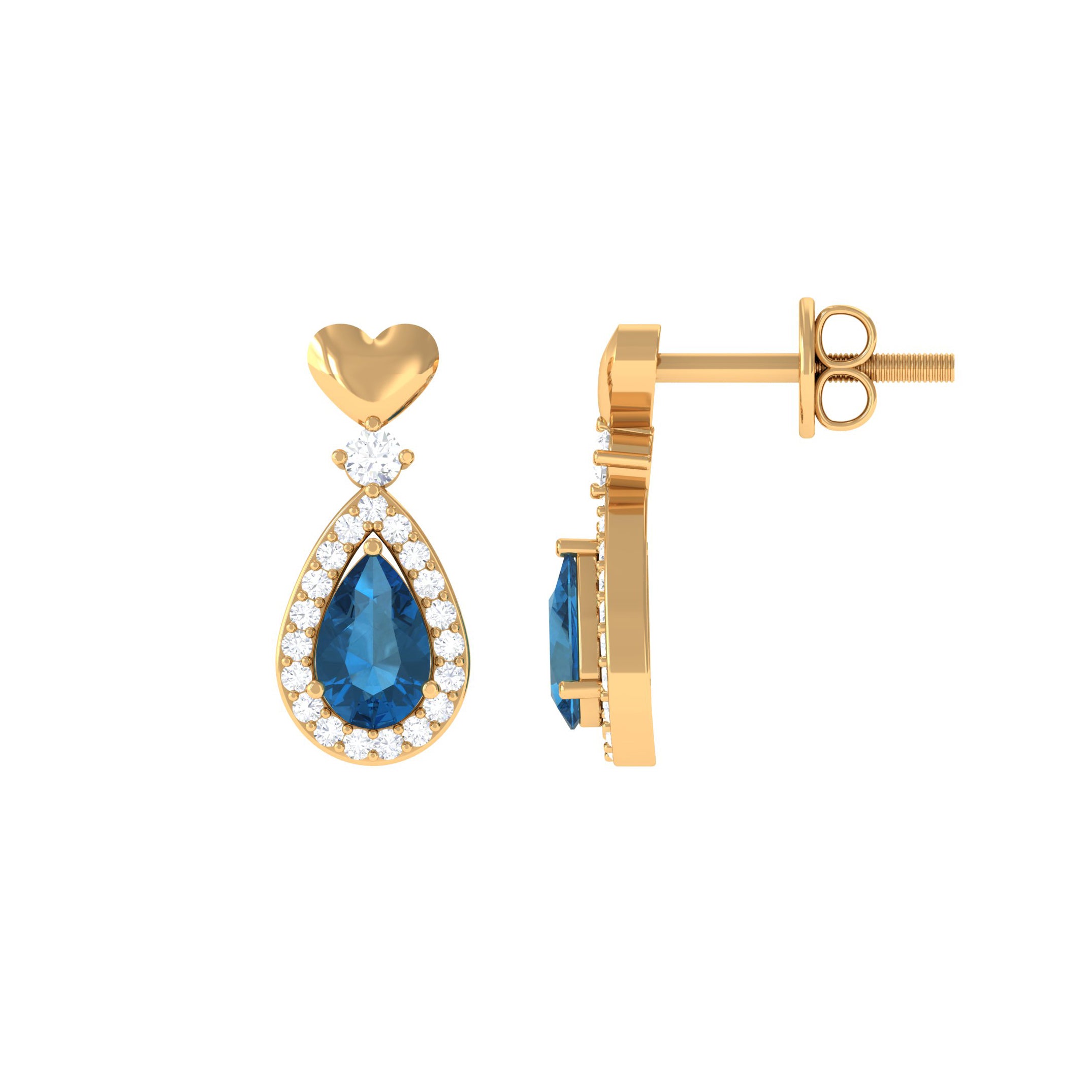Pear Cut London Blue Topaz Bridal Drop Earrings with Diamond Halo