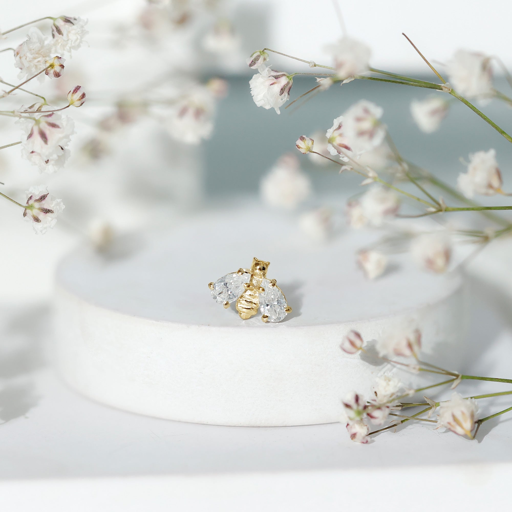 Pear Cut Moissanite Bee Earring for Cartilage Piercing