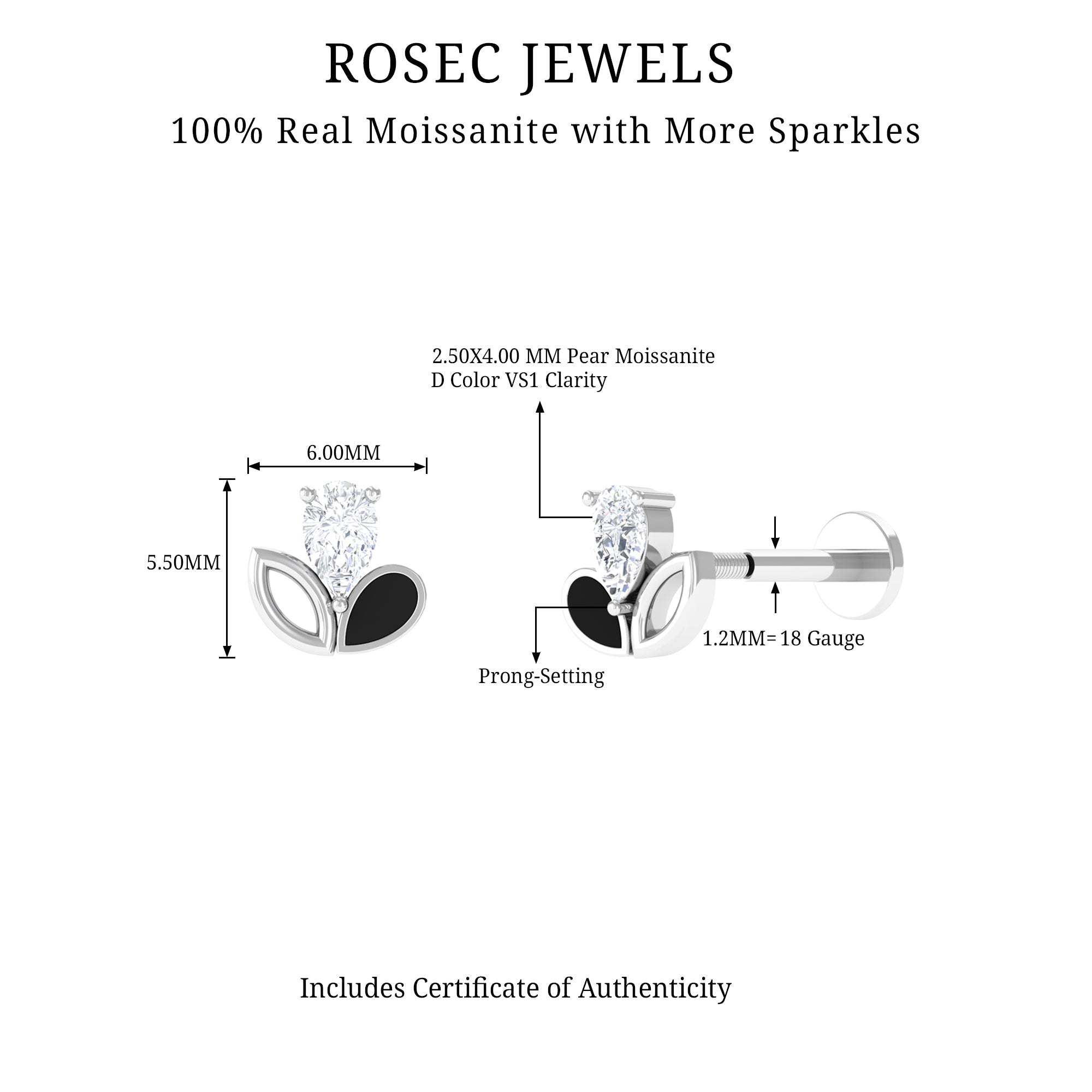 This Moissanite Leaf Cartilage Earring features a Pear Cut Moissanite in Prong Setting while the black enamel adds a modern and edgy twist to the overall design. Style it on your Helix, Cartilage, Conch, or Upper Lobe Piercing. Whether youre wearing it to dress up an outfit or to add a touch of elegance to your everyday look.