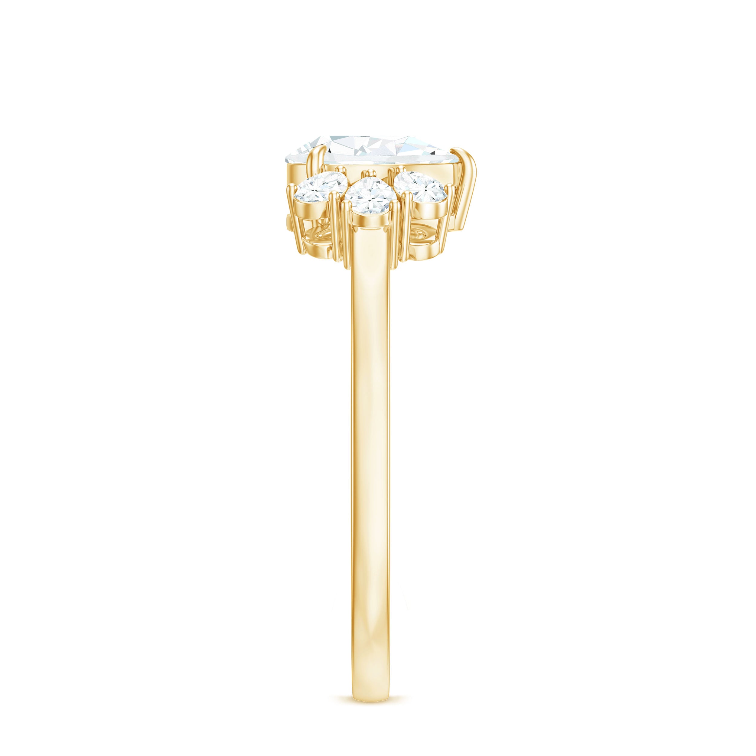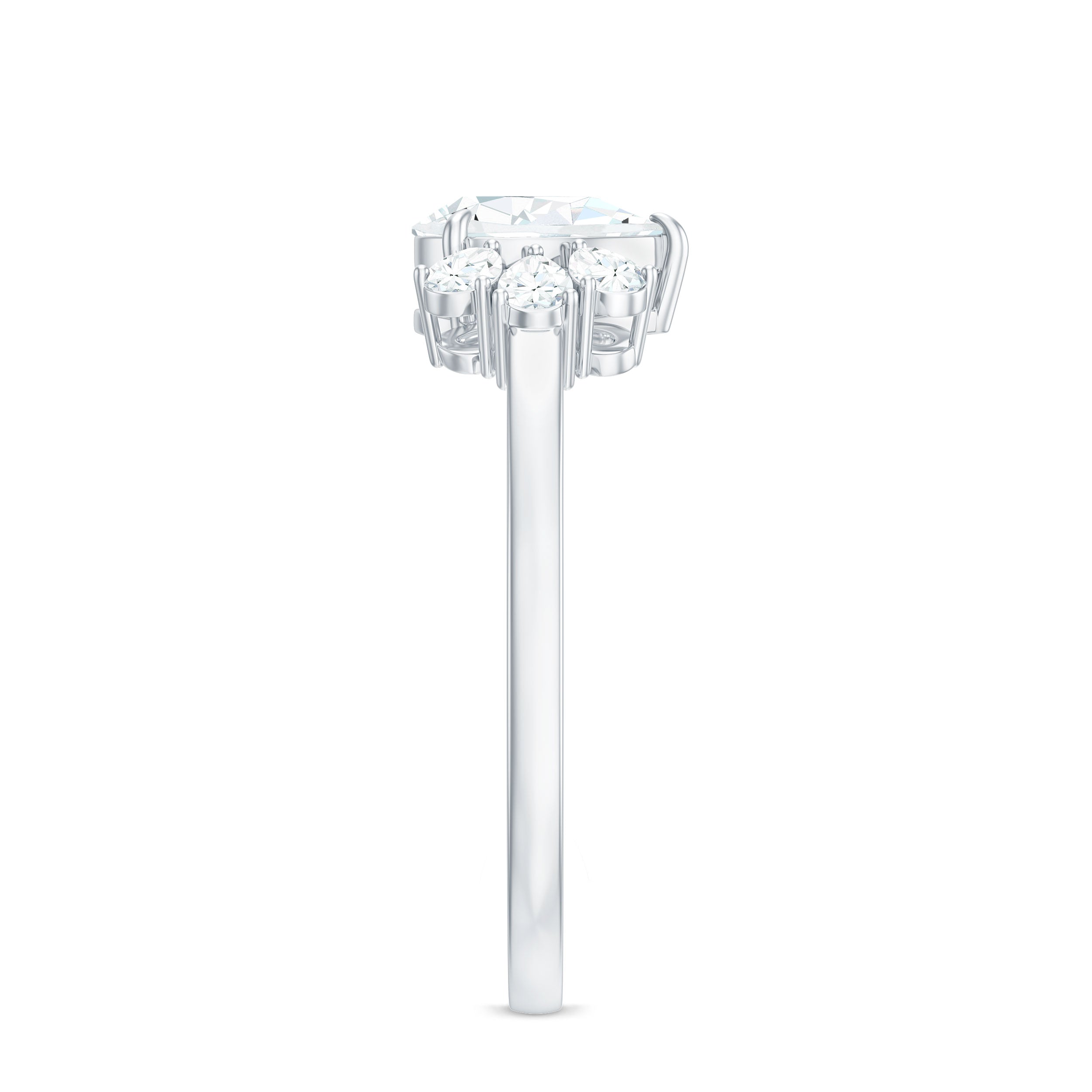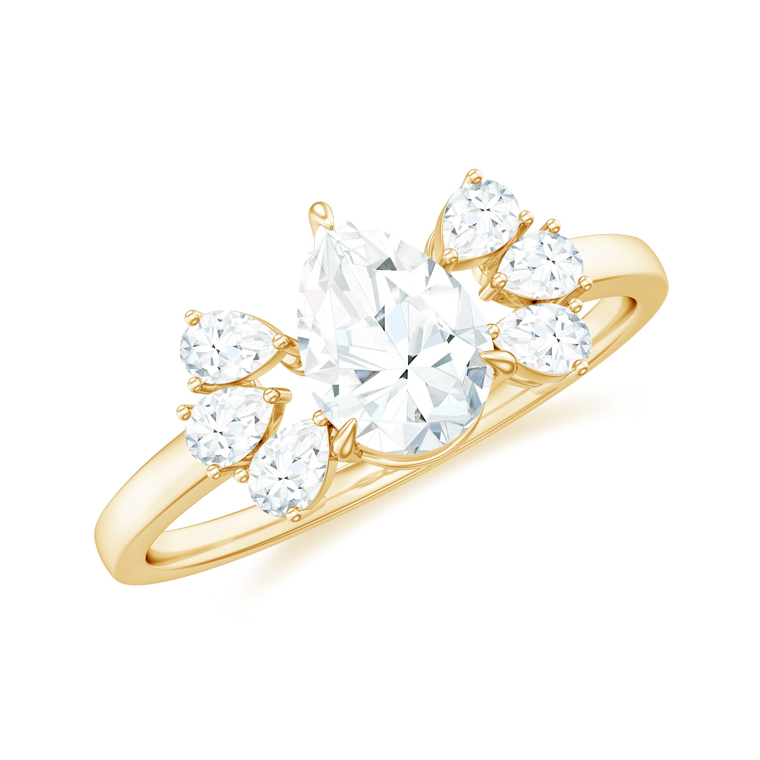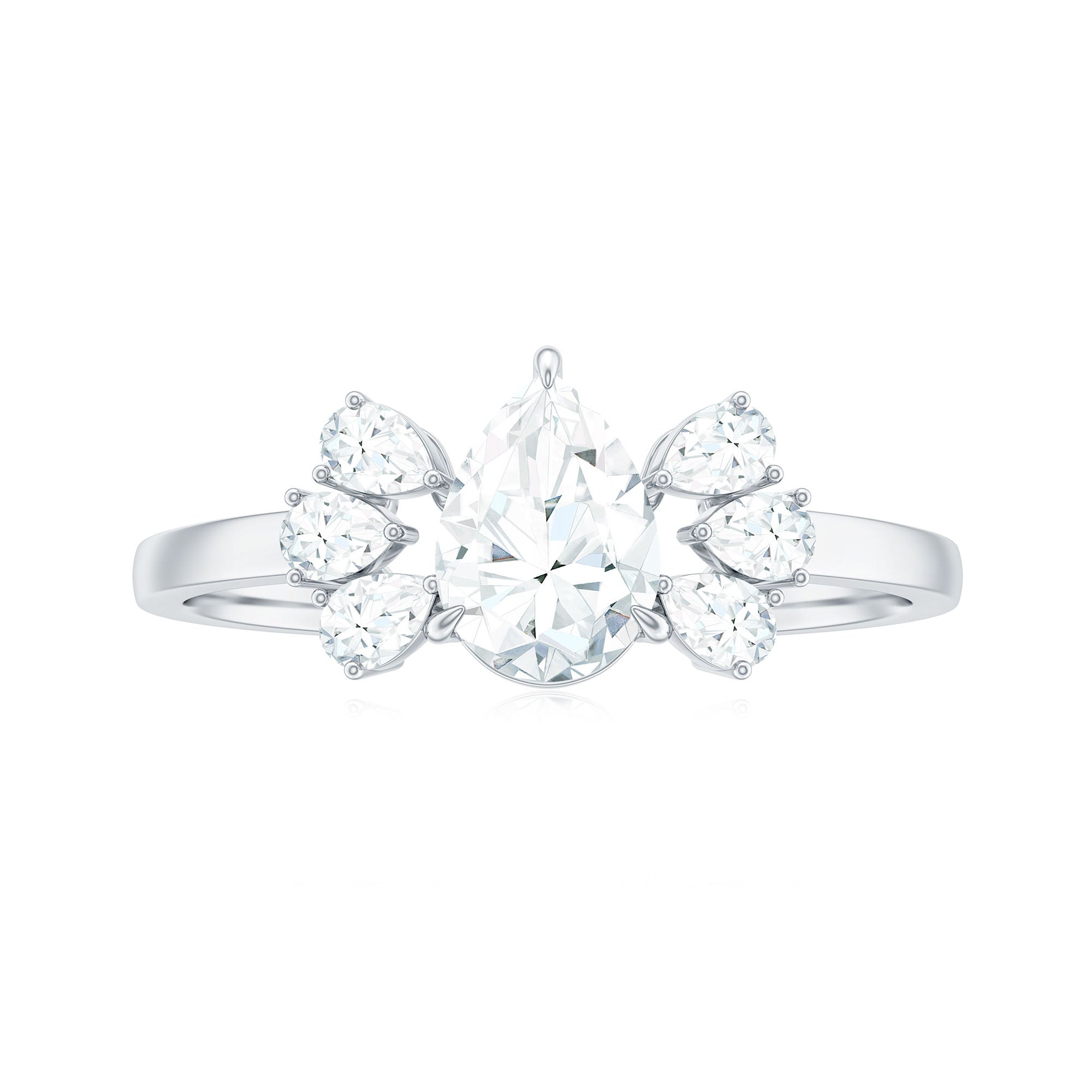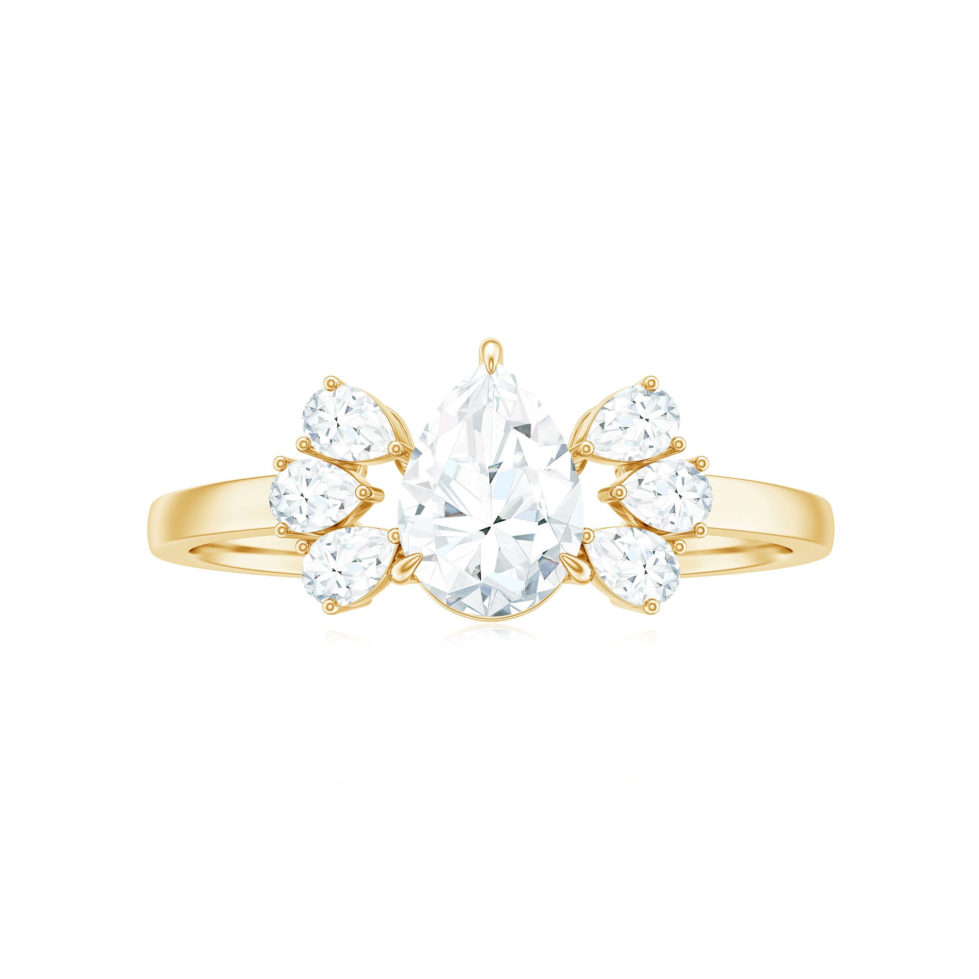 Pear Cut Moissanite Solitaire Engagement Ring with Trio
