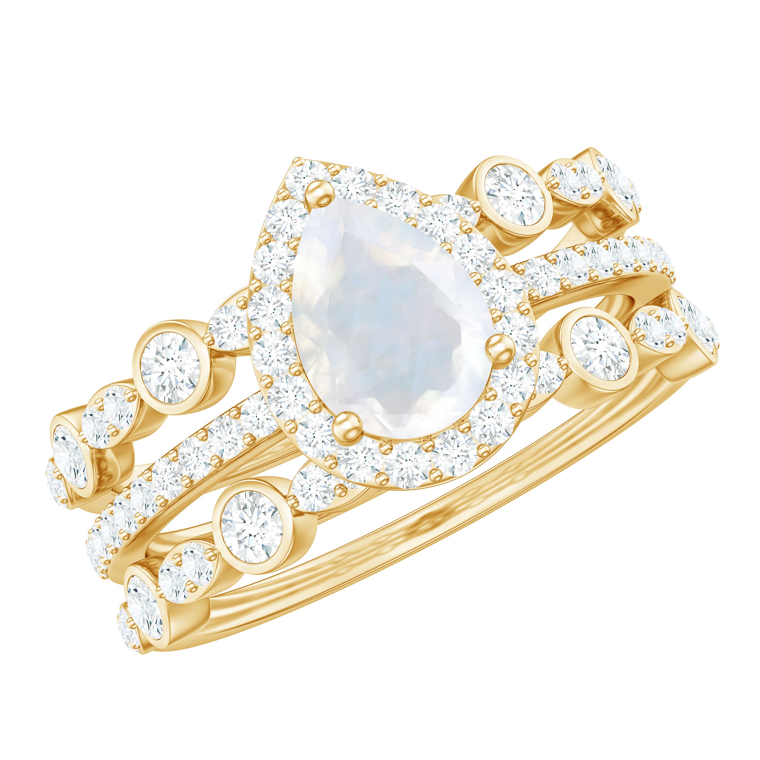 Pear Cut Moonstone Bridal Trio Ring Set with Moissanite Band