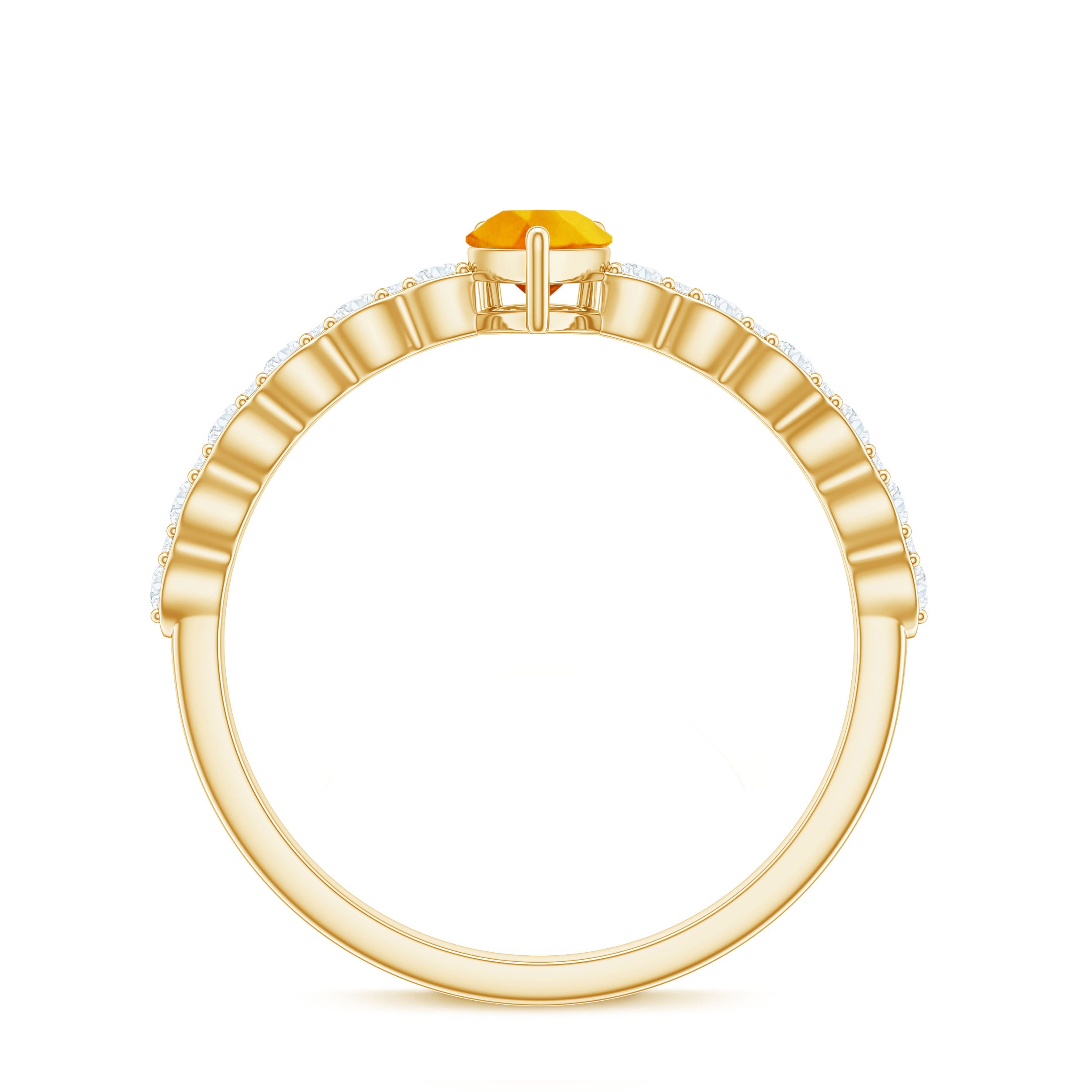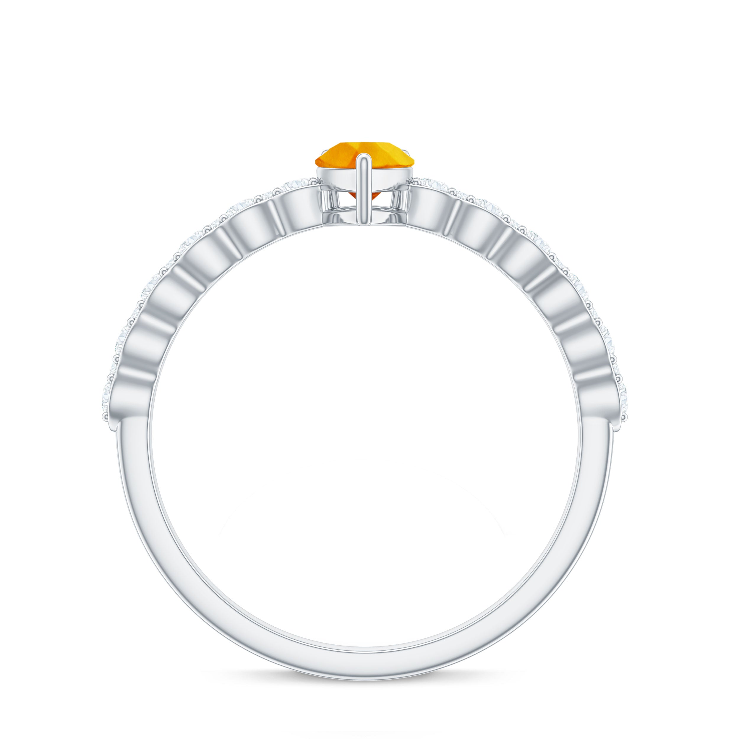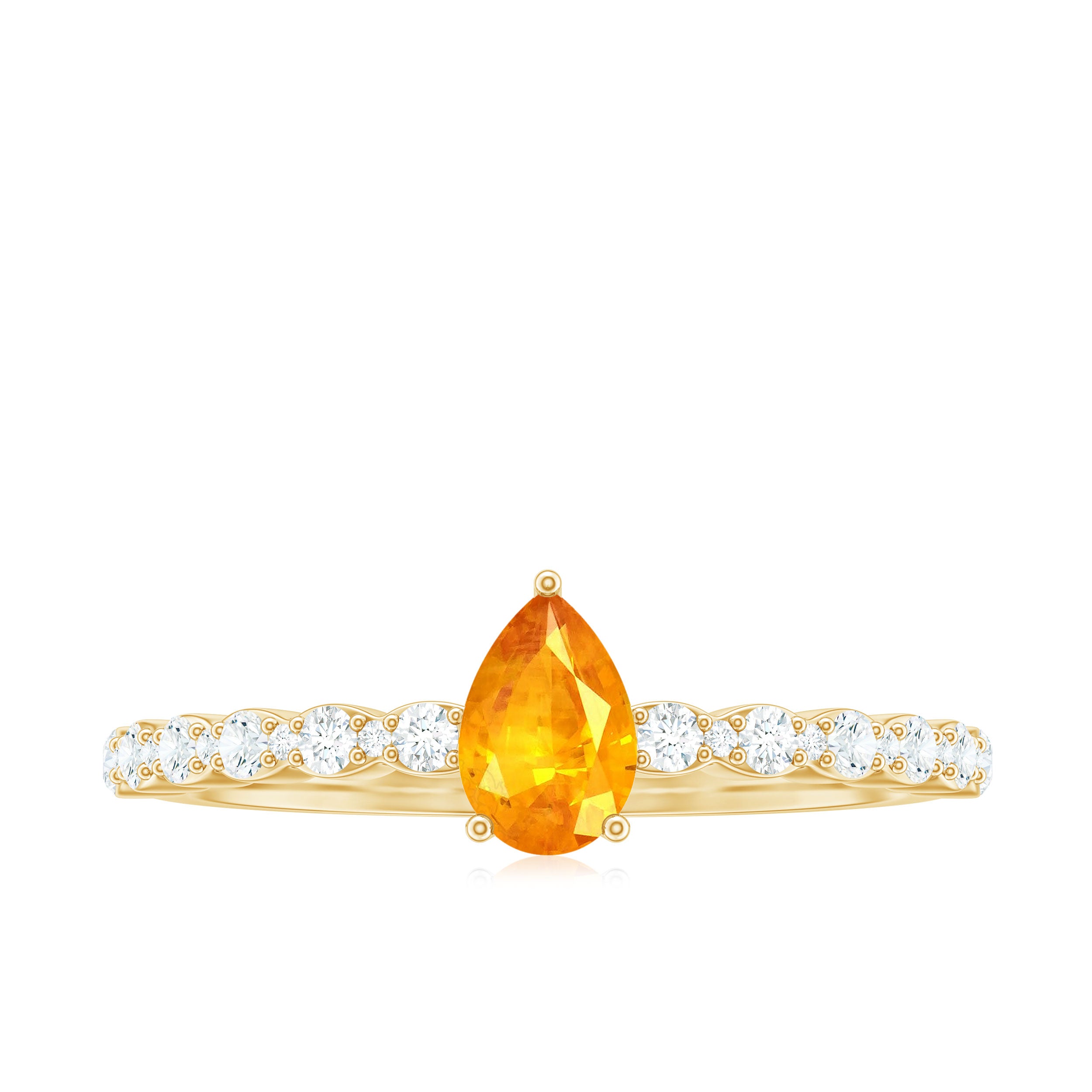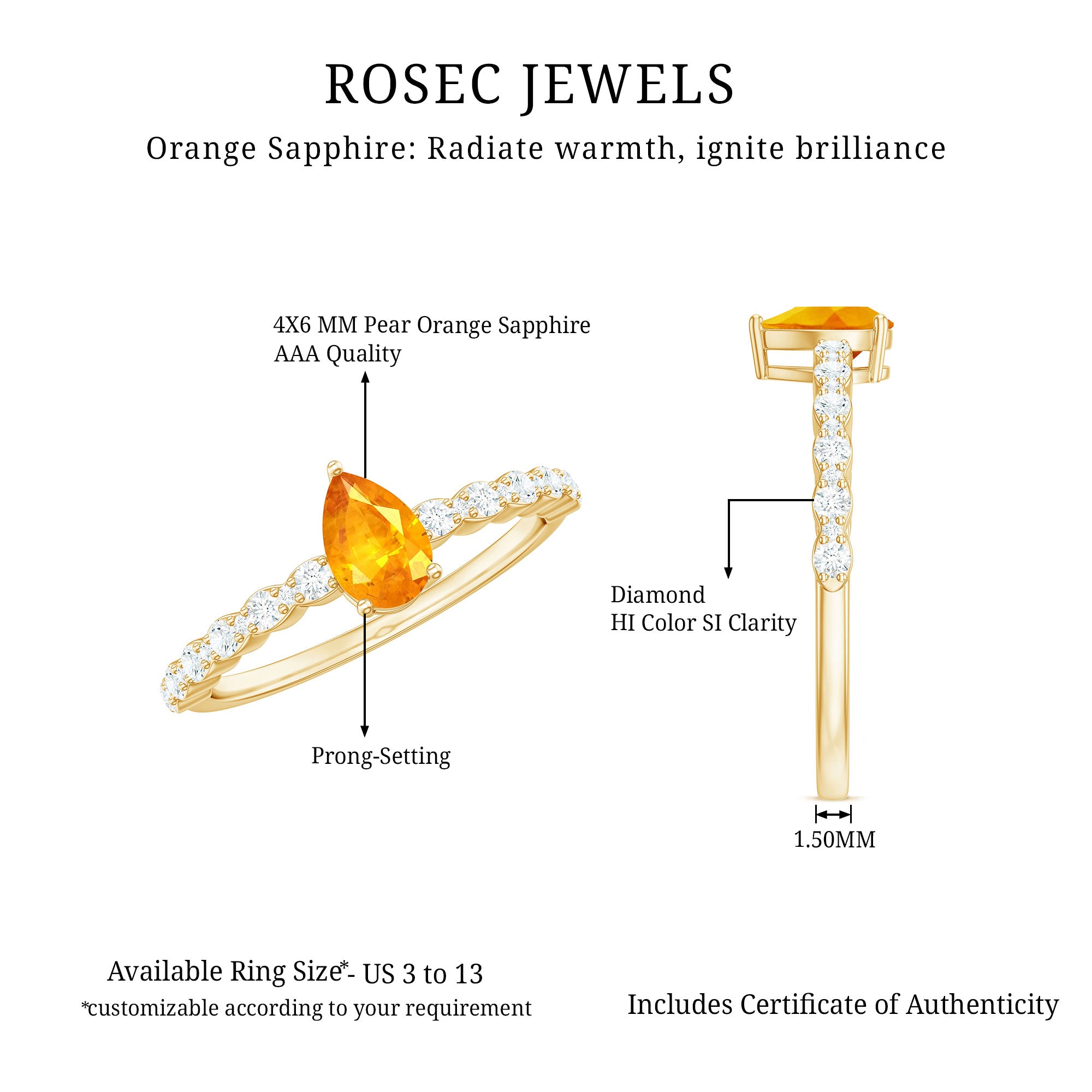 This Engagement Ring is embellished with Pear Shaped Orange Sapphire secured by 3 Prong Setting while dainty Round Diamond studded on the shank. You can simply stand out from the crowd with this Orange Sapphire Ring by pairing it with your casual or dressy outfits.
