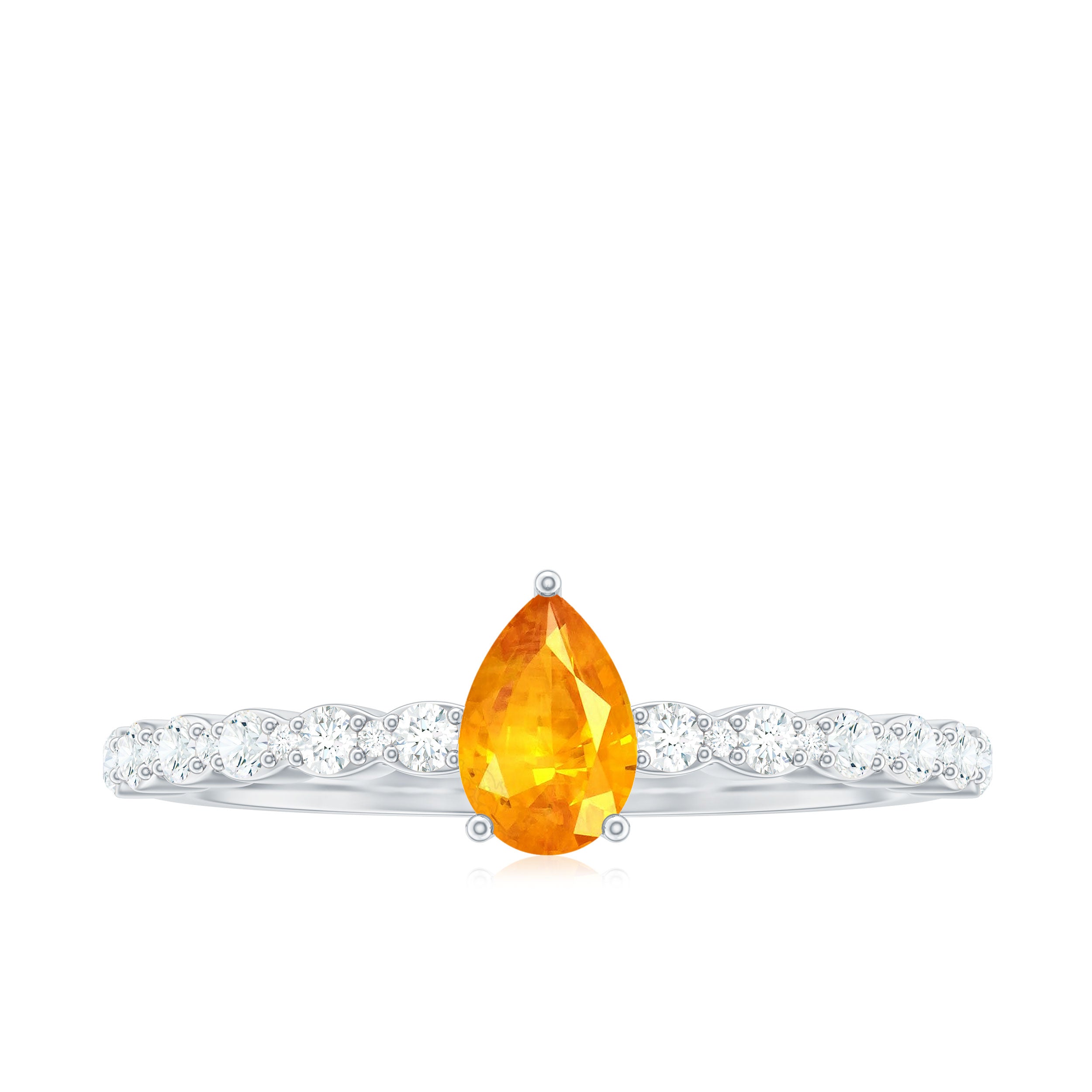 Pear Cut Orange Sapphire Engagement Ring with Diamond Side Stones