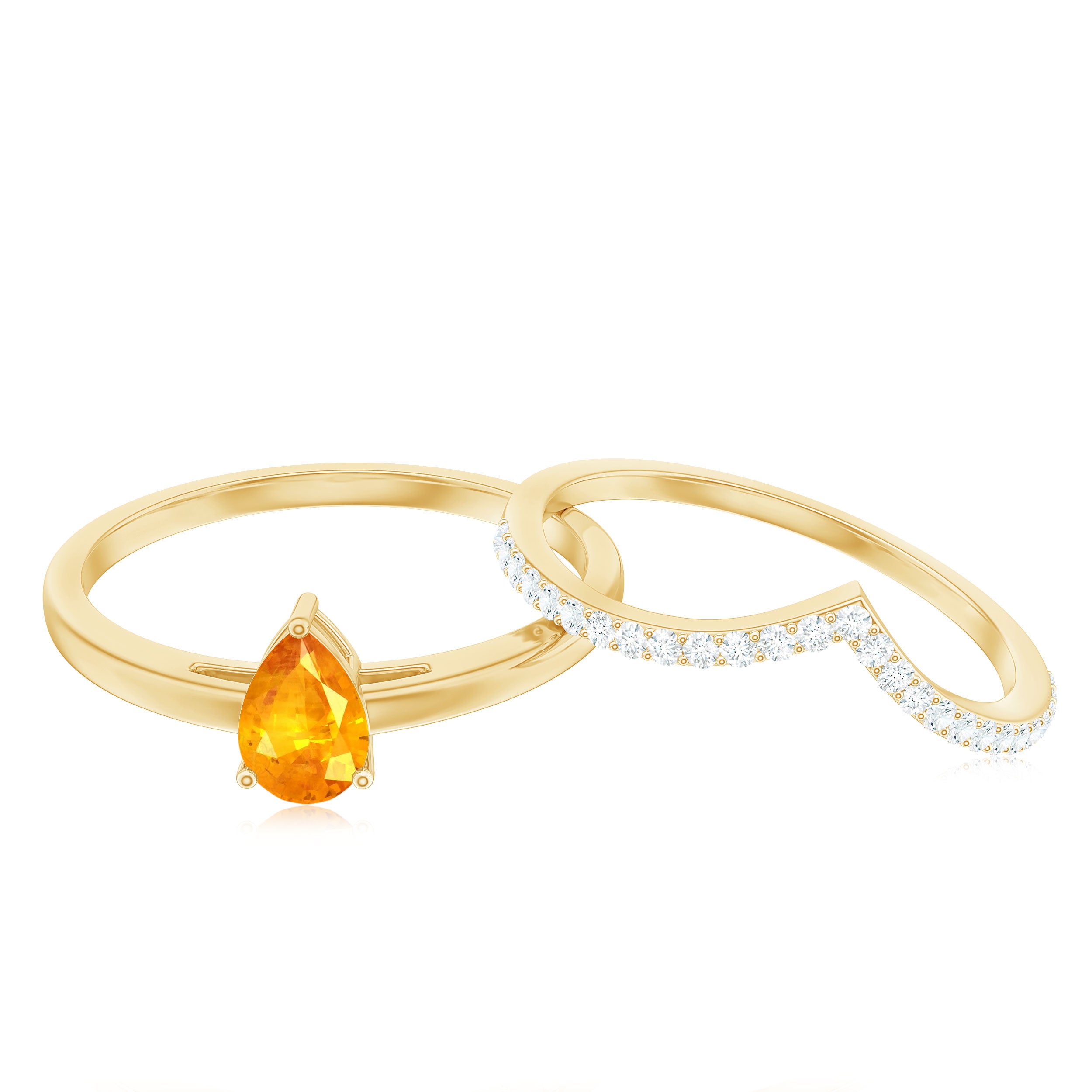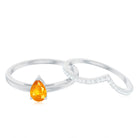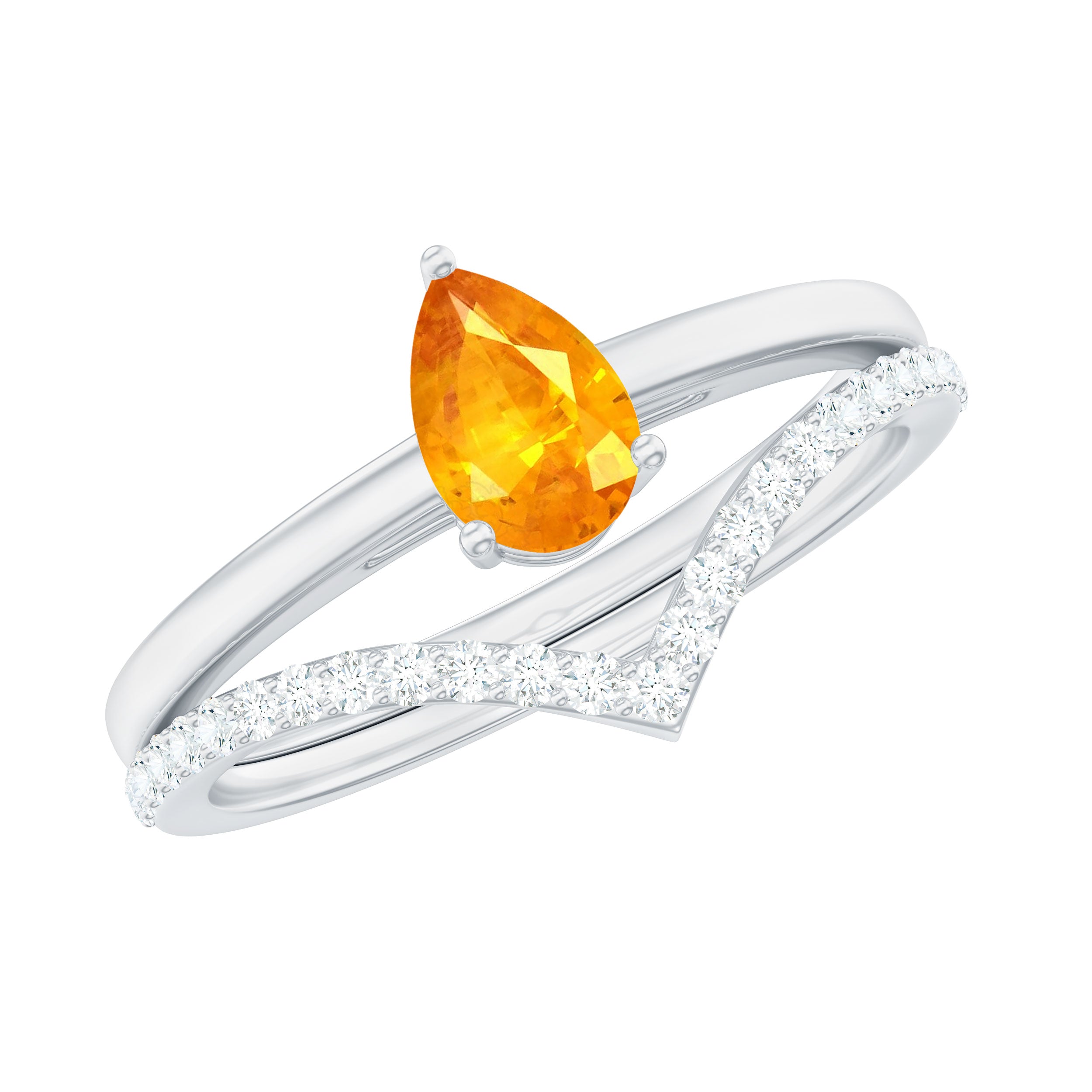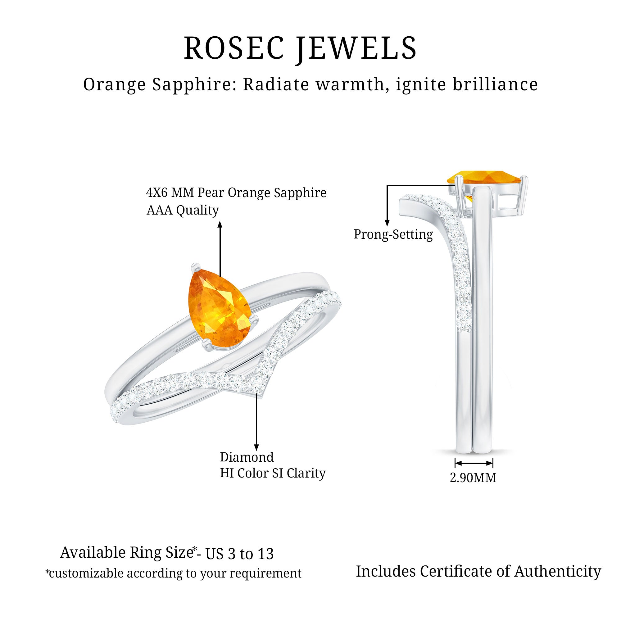 Pear Cut Orange Sapphire Ring Set with Diamond