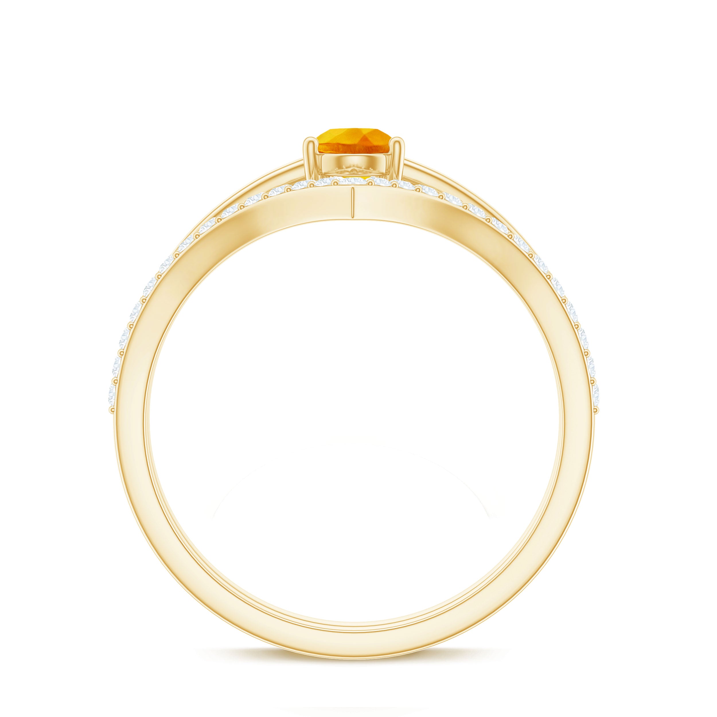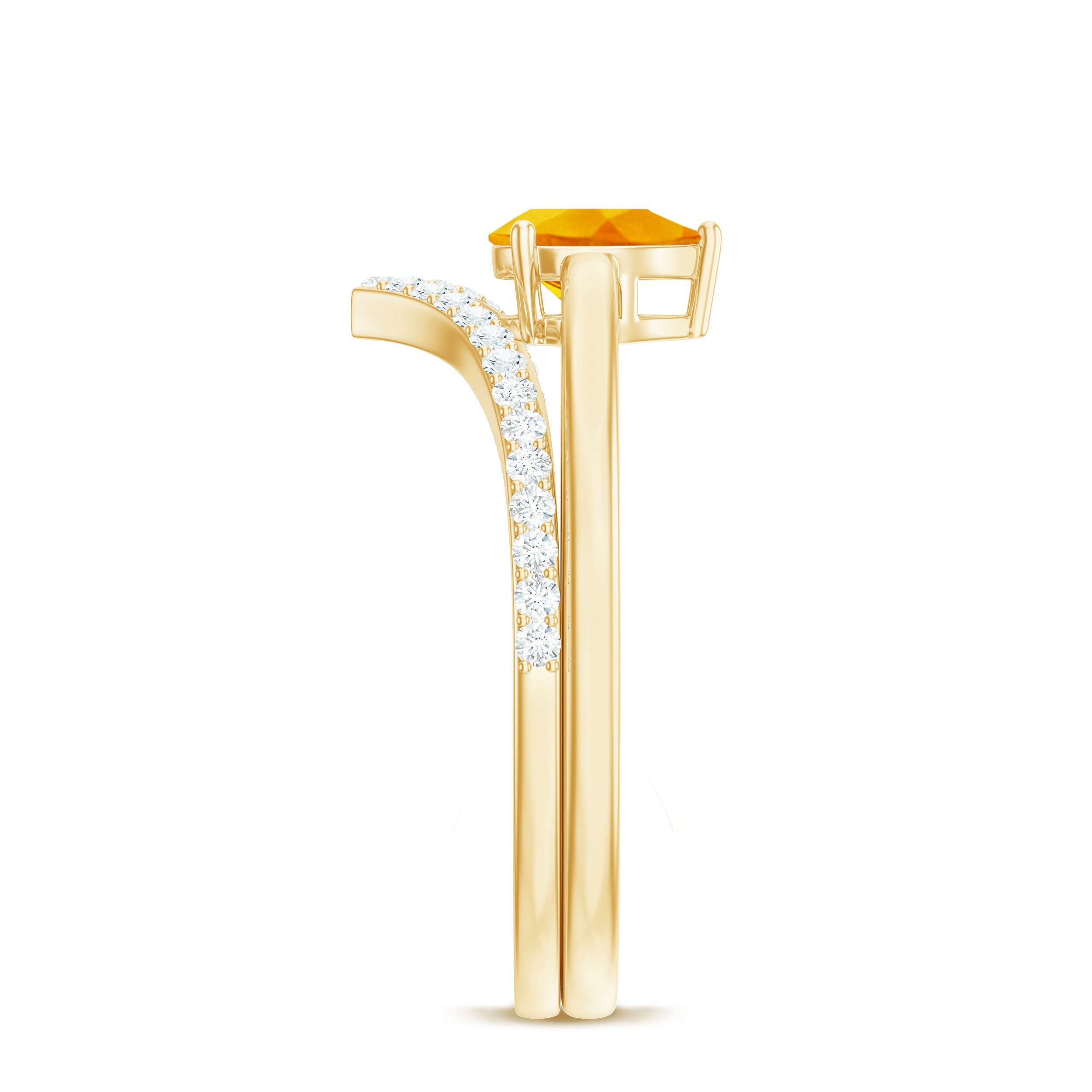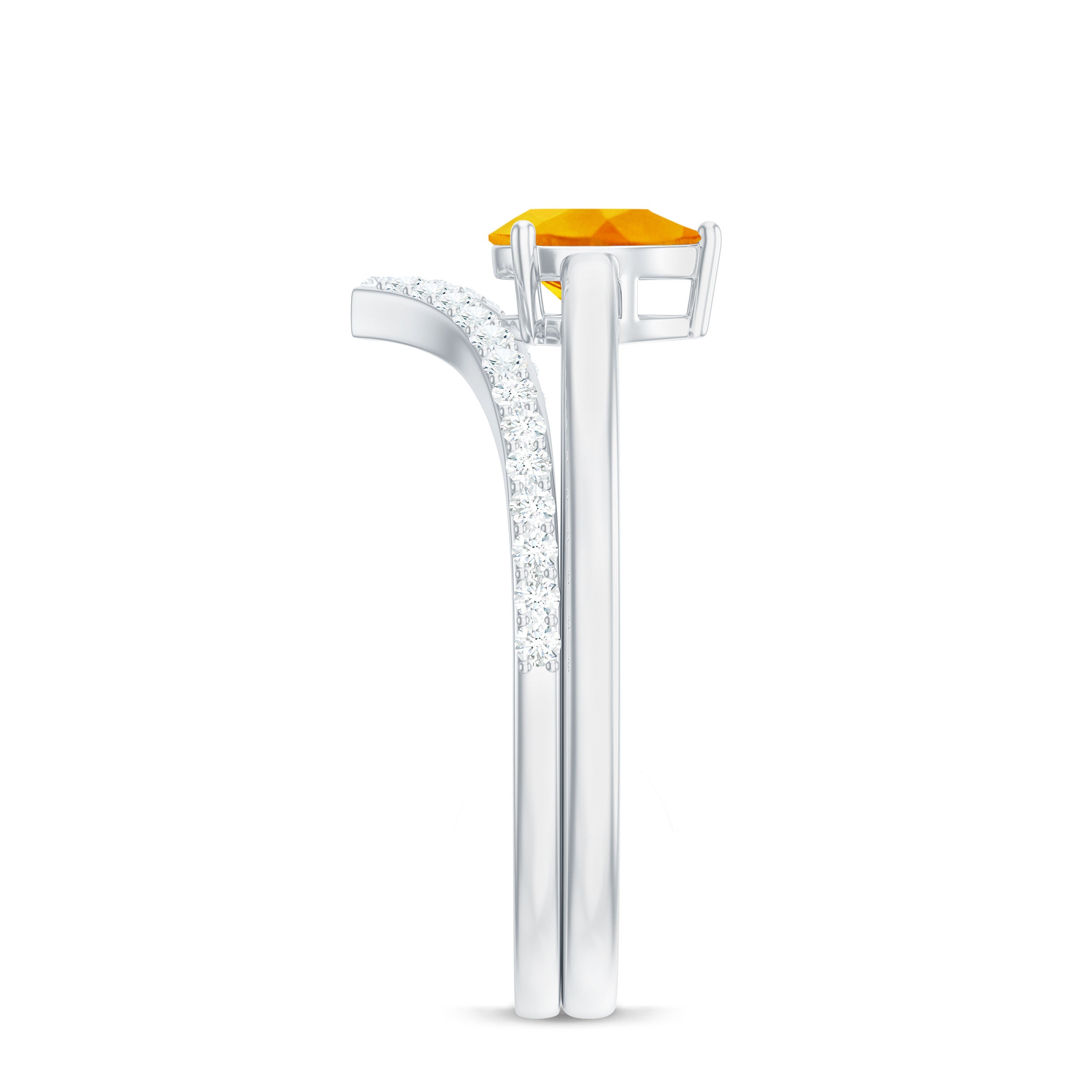 Pear Cut Orange Sapphire Ring Set with Diamond