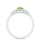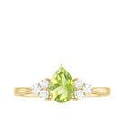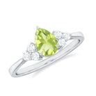 Pear Cut Peridot Solitaire Ring with Diamond Trio