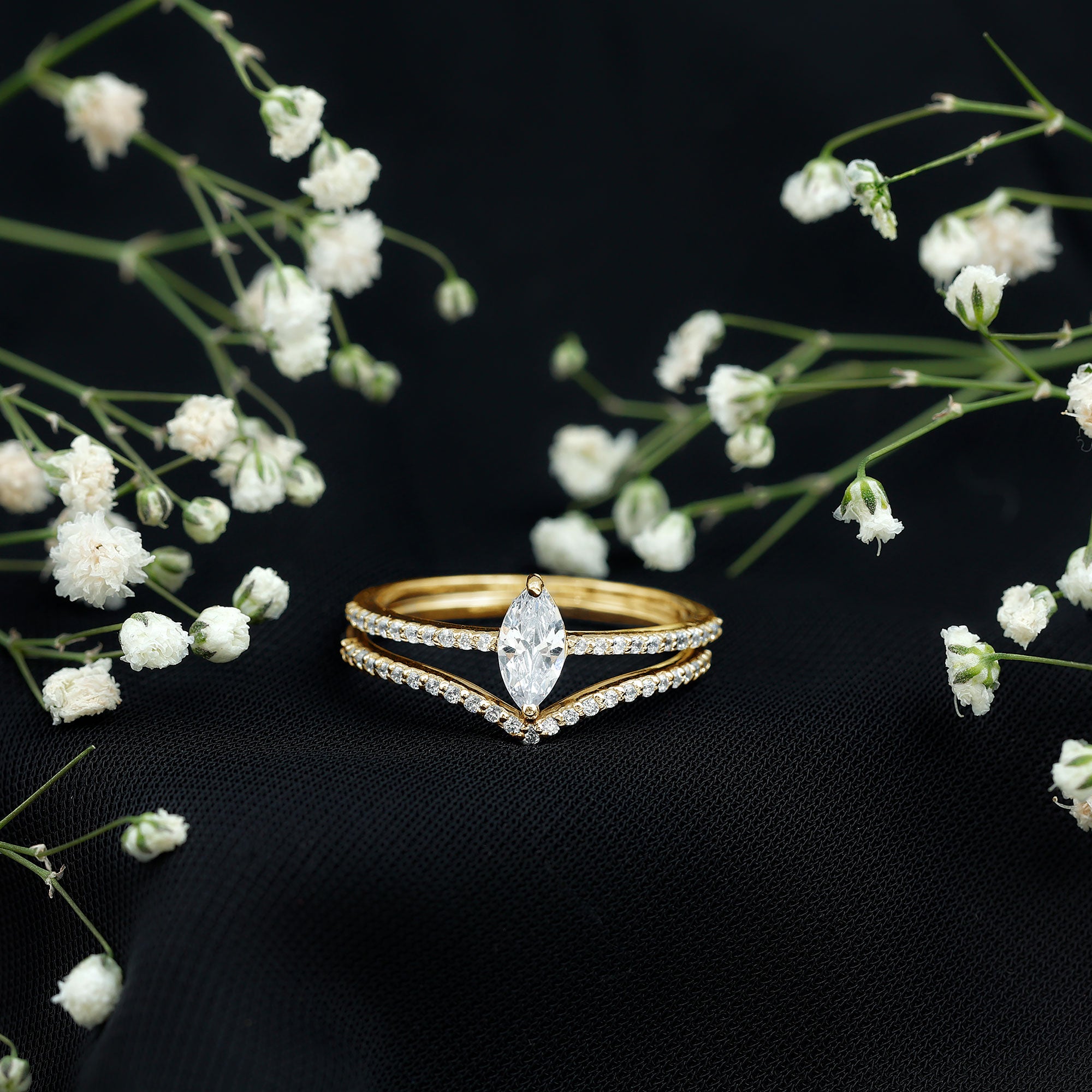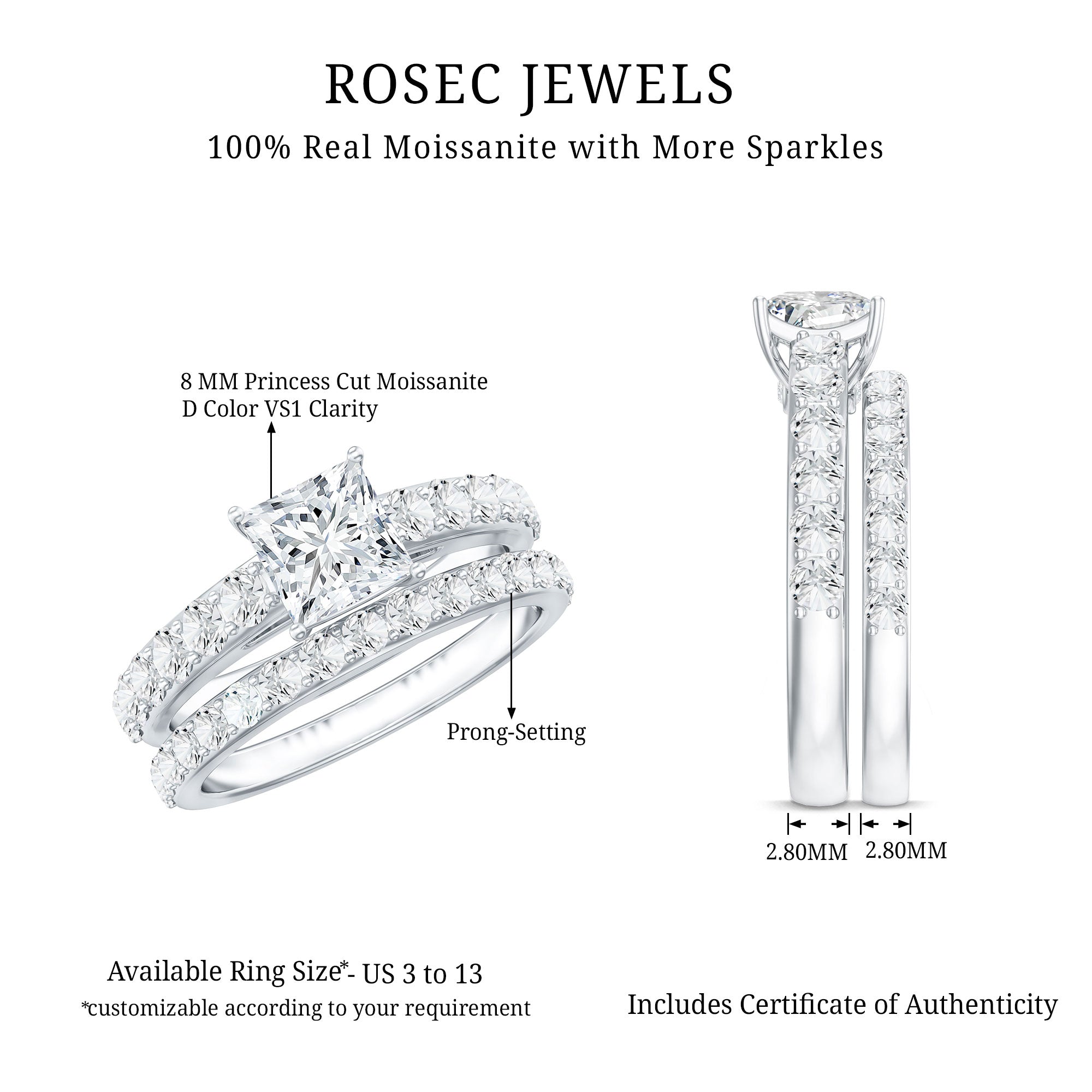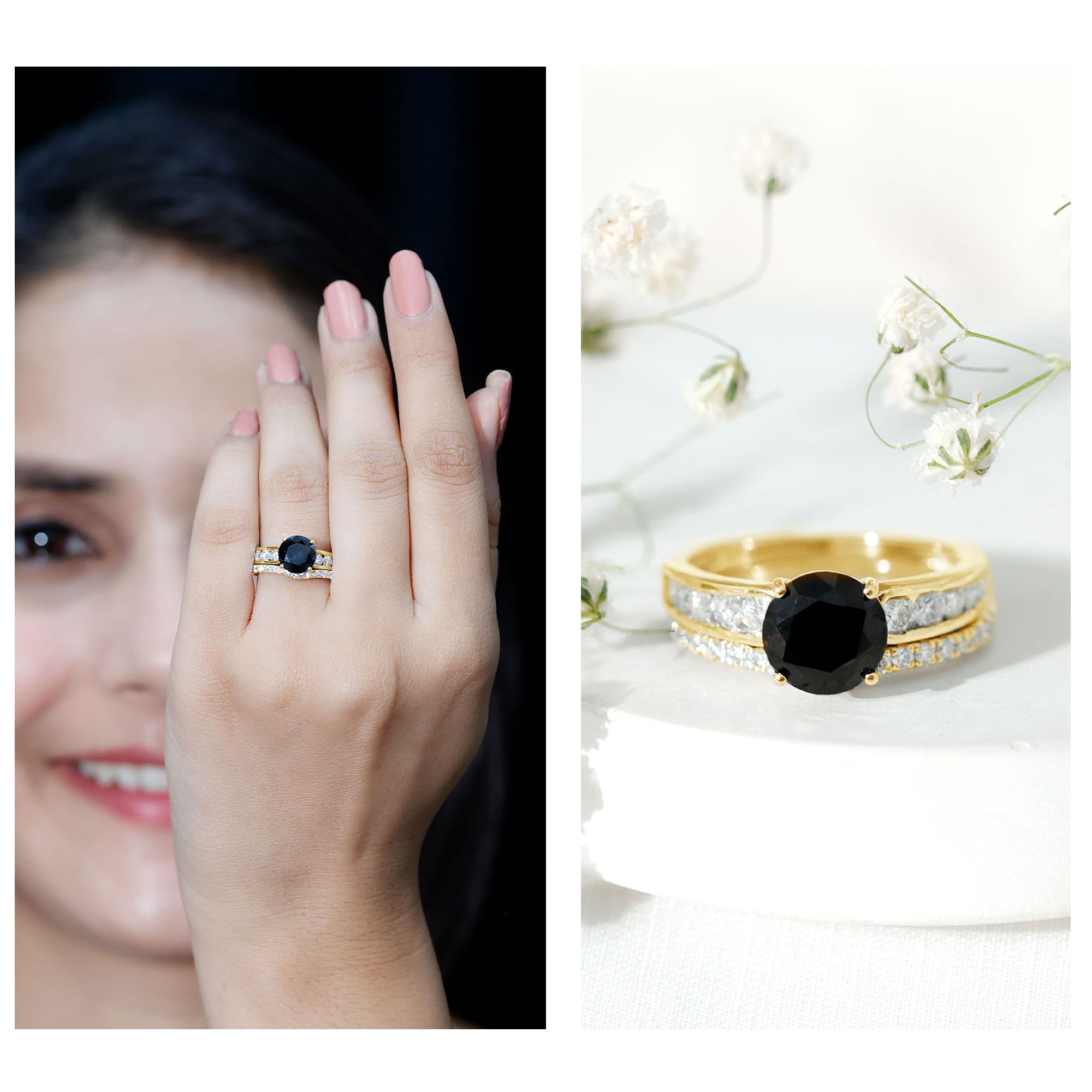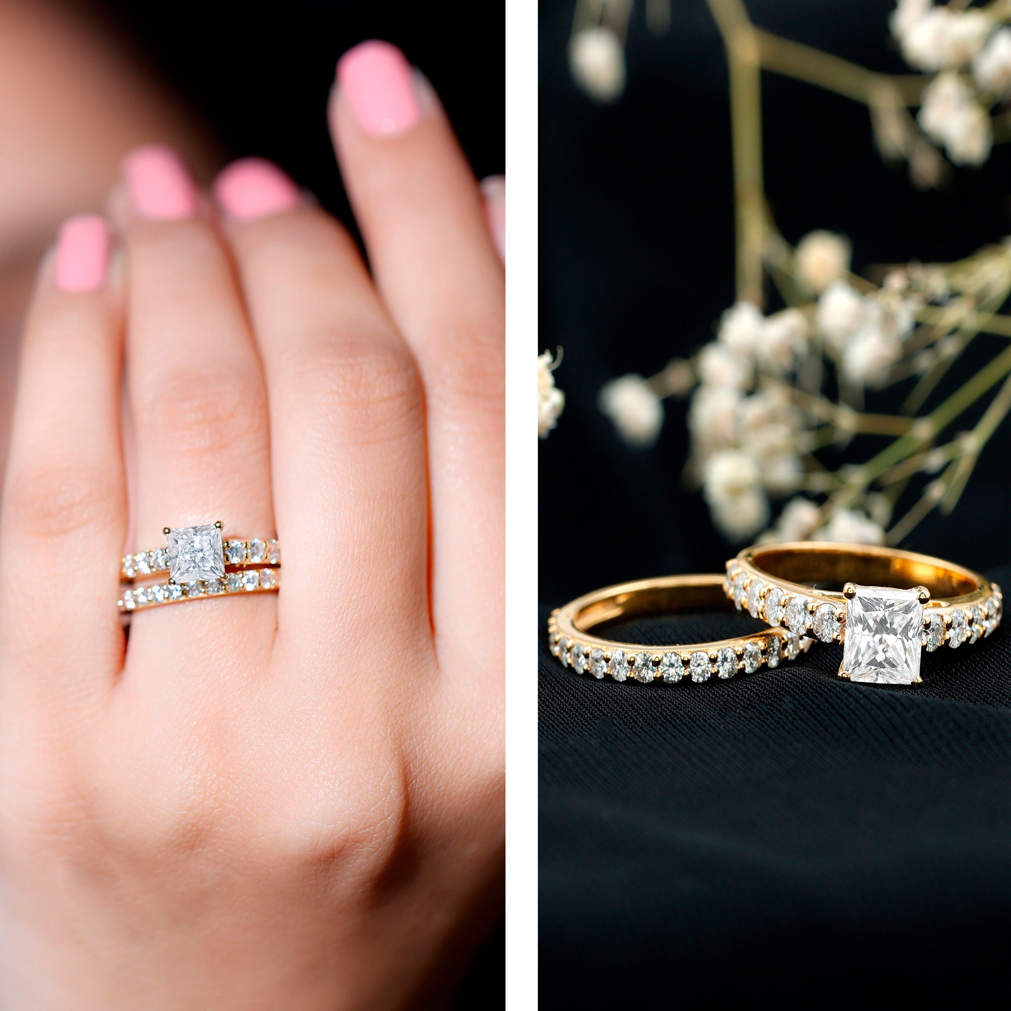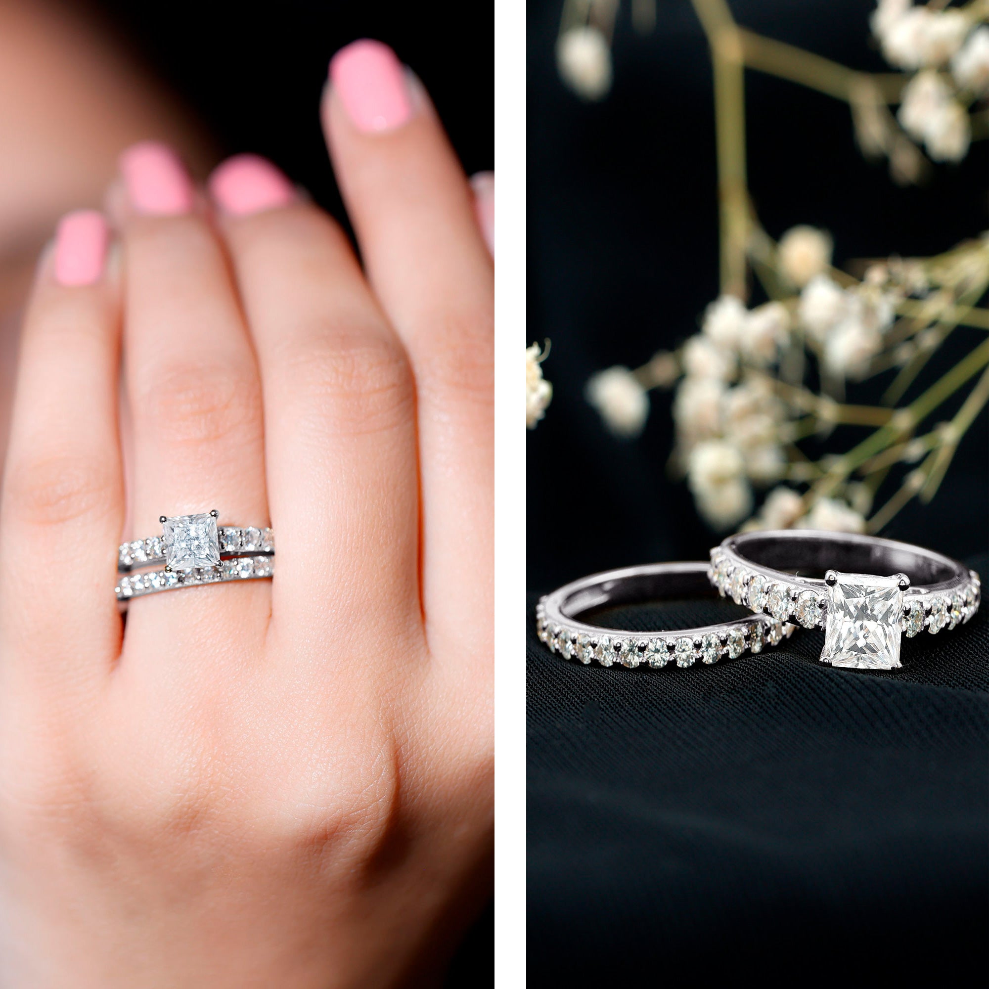 Bridal sets are practical and convenient since they eliminate the need to look for a separate wedding band. Couples can save time and guarantee a unified and complimentary design by buying a pre-matched set.