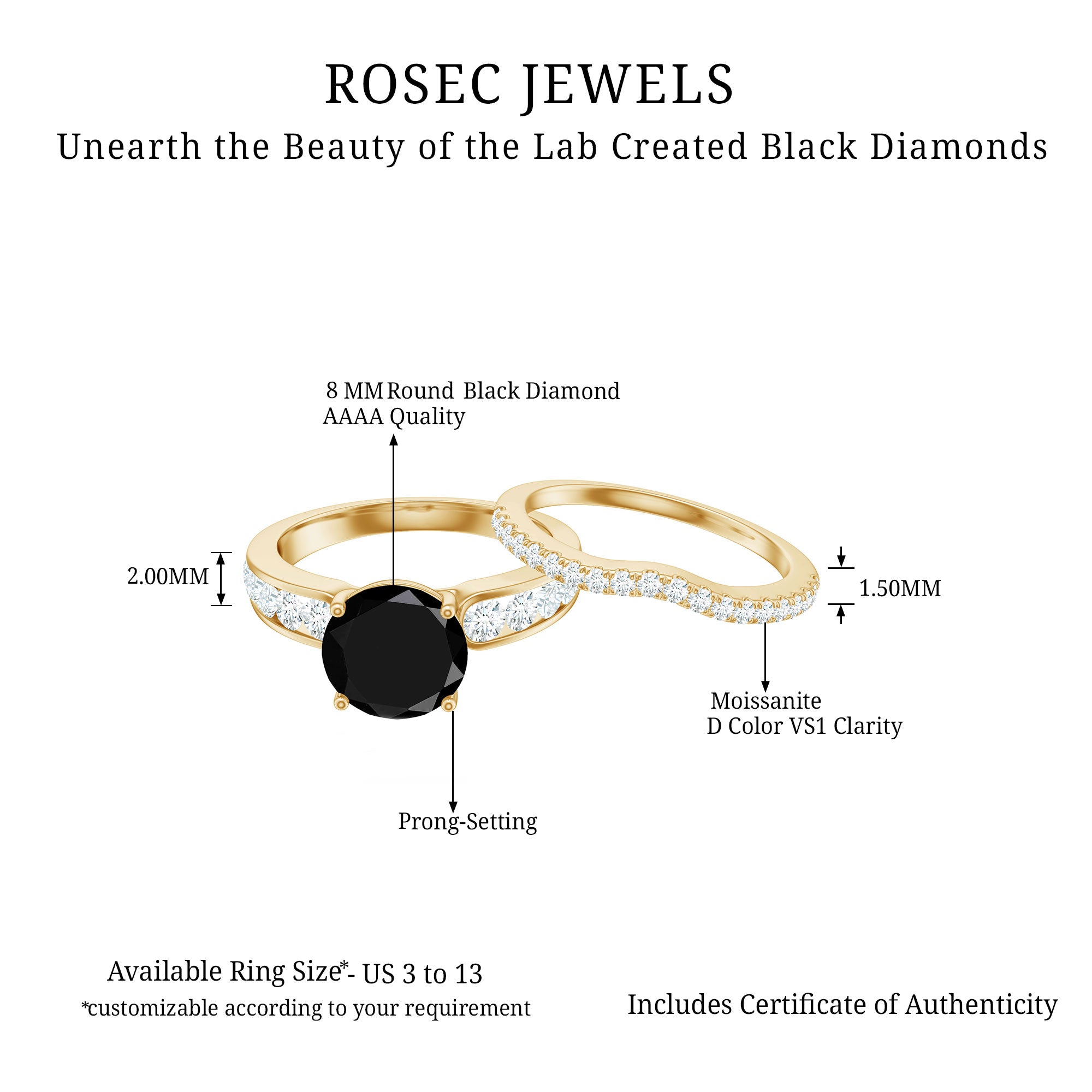 The ability to engrave particular words or dates further gives the set a personalized touch. Thanks to this customization, the bridal set will uniquely reflect the couple's love story.