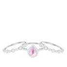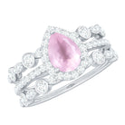 Pear Cut Rose Quartz Bridal Trio Ring Set with Moissanite Band