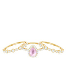 Celebrate your special day with the enchanting Bridal Ring Set of 3. The centerpiece of the engagement ring features a dazzling pear-cut Rose Quartz. The matching wedding bands, adorned with shimmering Moissanite stones, add a touch of sparkle and elegance to the set. Together, they create a harmonious trio, representing the bond and commitment between you and your partner. Let this bridal set be a reflection of your unique love story, a stunning testament to your shared journey. Wear it with pride and create cherished moments that will last a lifetime.