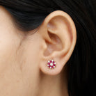 Pear Cut Ruby and Diamond Flower Stud Earrings