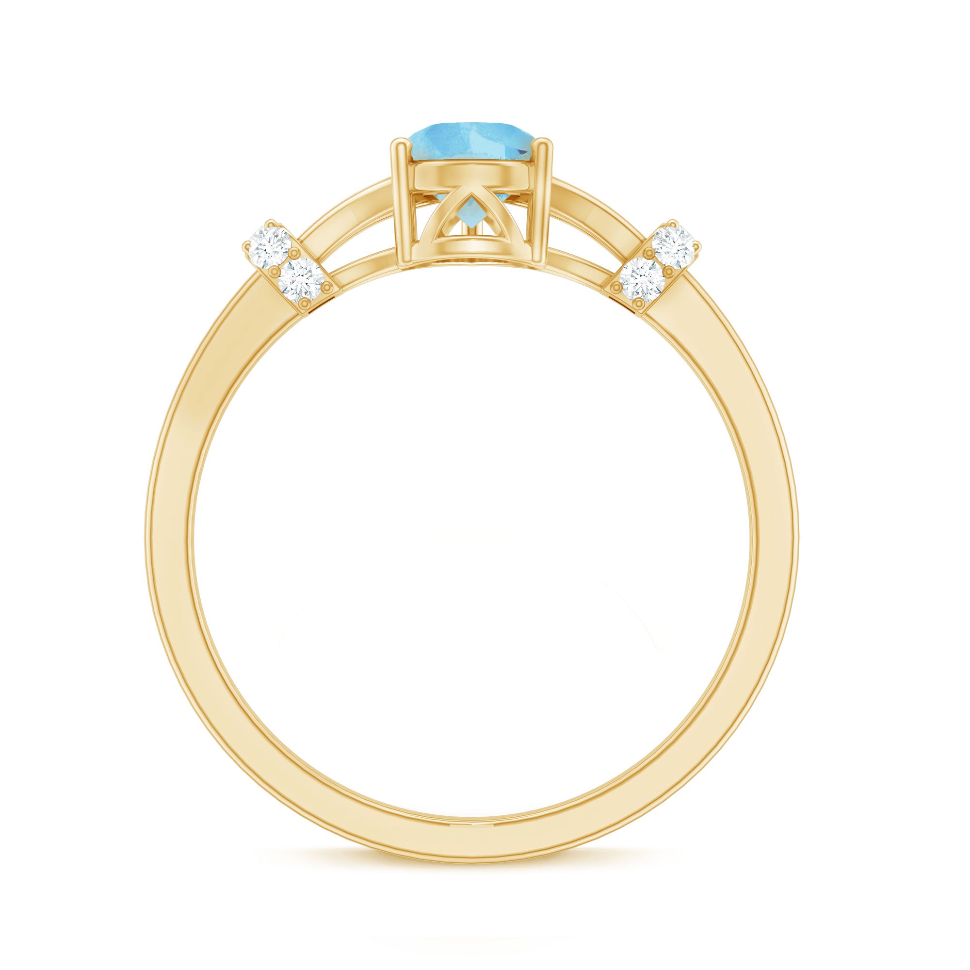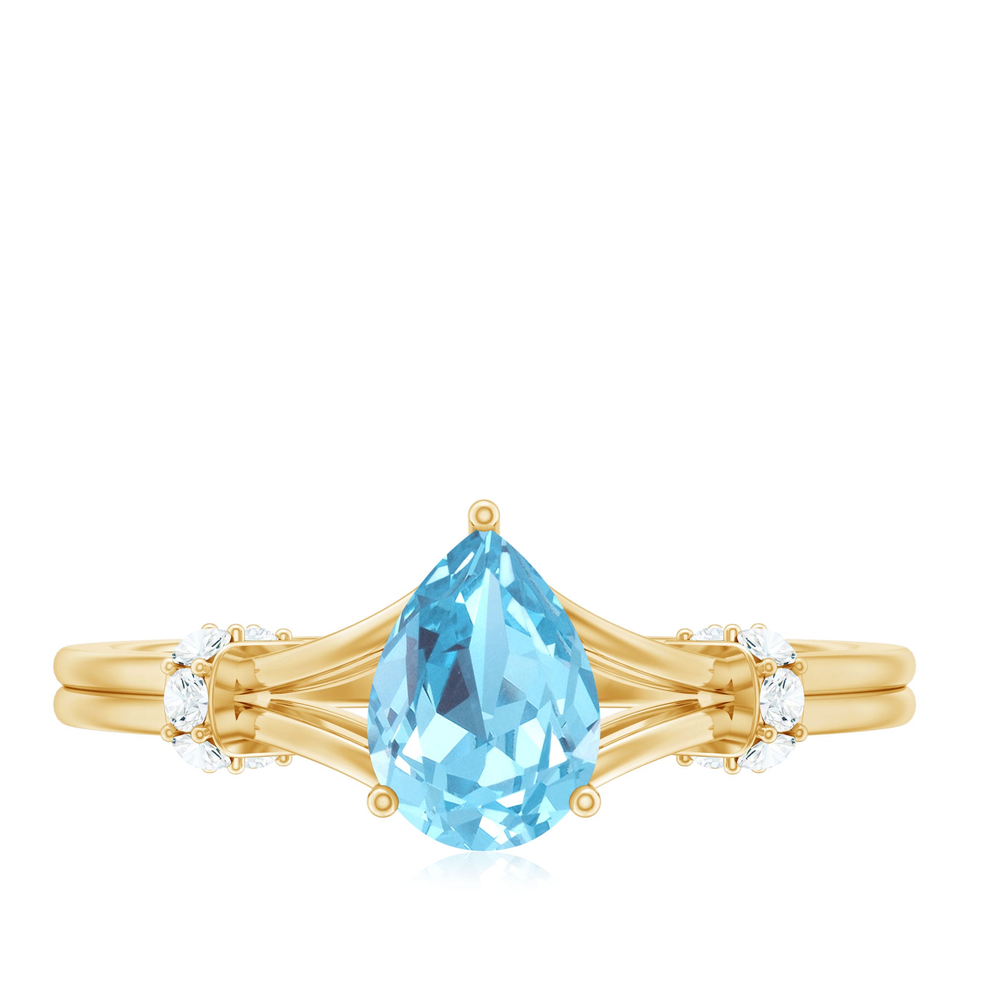 Pear Shape Aquamarine and Diamond Solitaire Ring in Split Shank