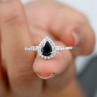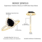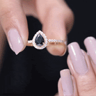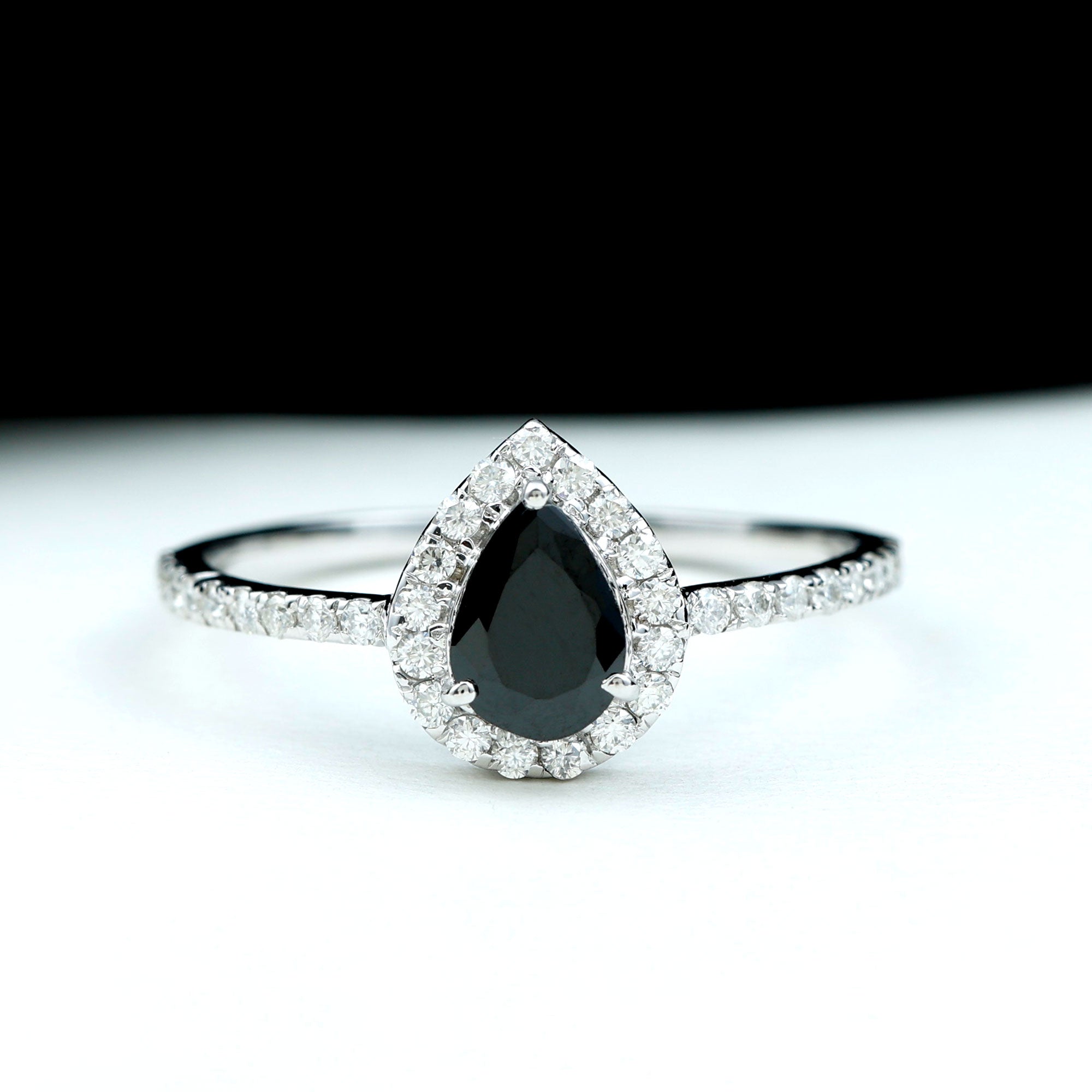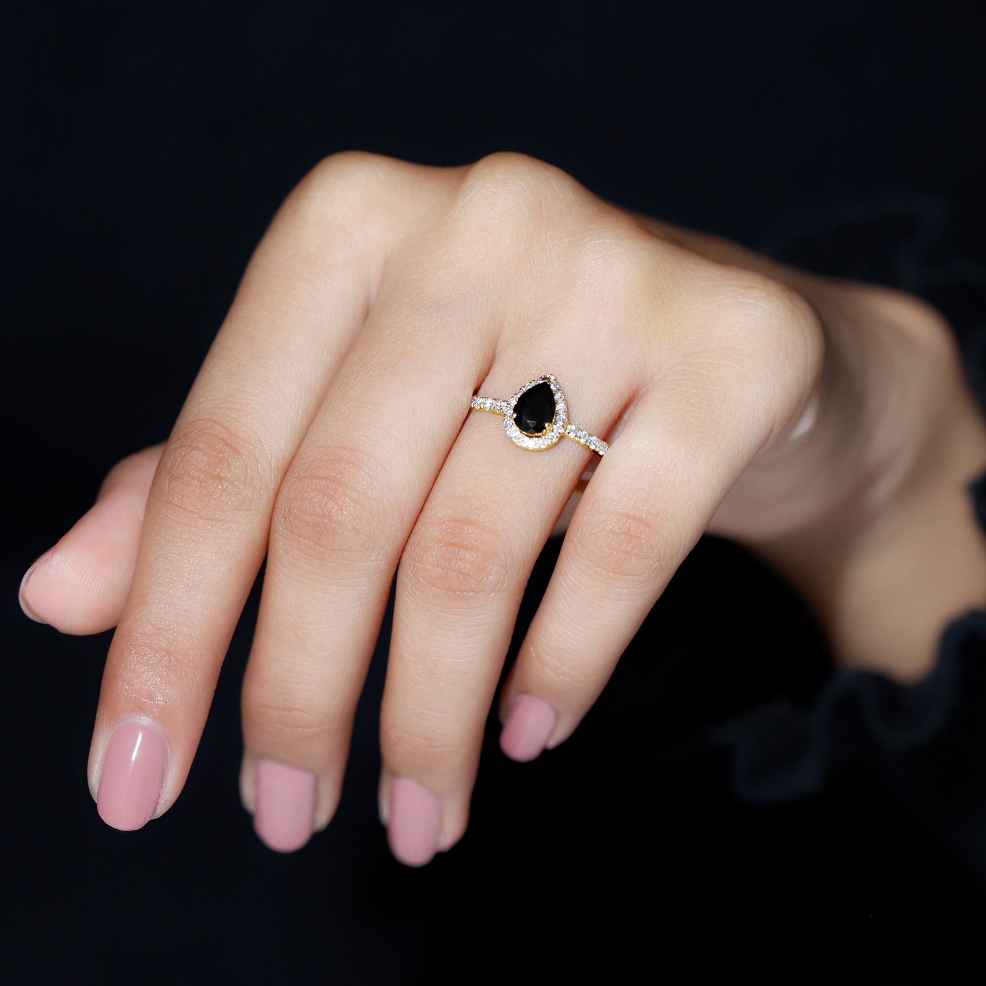 Elevate your style with the exquisite Black Onyx Engagement Ring, meticulously crafted to make a bold and elegant statement. This striking ring showcases a 5X7 MM Pear Shape Black Onyx in Prong Setting, surrounded by a dazzling Halo of Diamond. Complementing the Teardrop Onyx as the centerpiece are mesmerizing Side Stones that effortlessly capture the eye. The enchanting Pear Halo Engagement Ring exudes sophistication, with its lustrous black onyx gemstone radiating timeless beauty and modern allure. This December Birthstone Ring boasts a design that seamlessly blends classic and contemporary elements which is destined to be cherished for years to come.