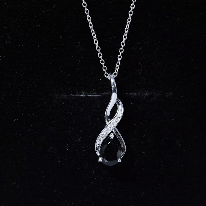Pear Shape Black Onyx Infinity Pendant Necklace with Moissanite Accent