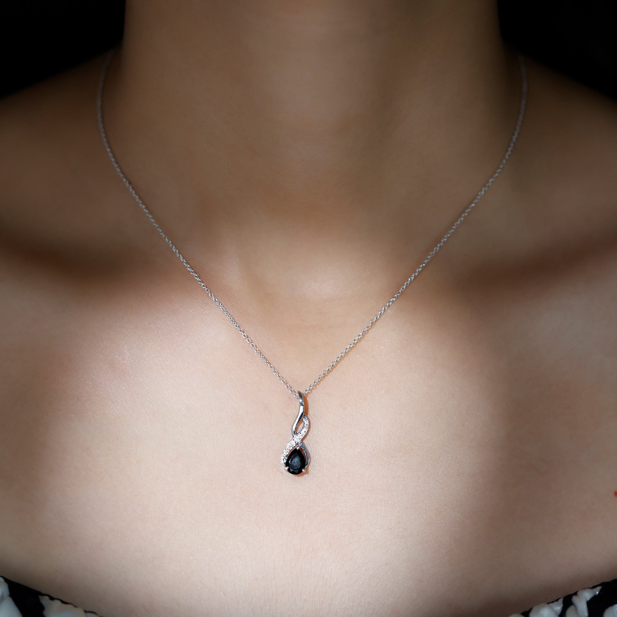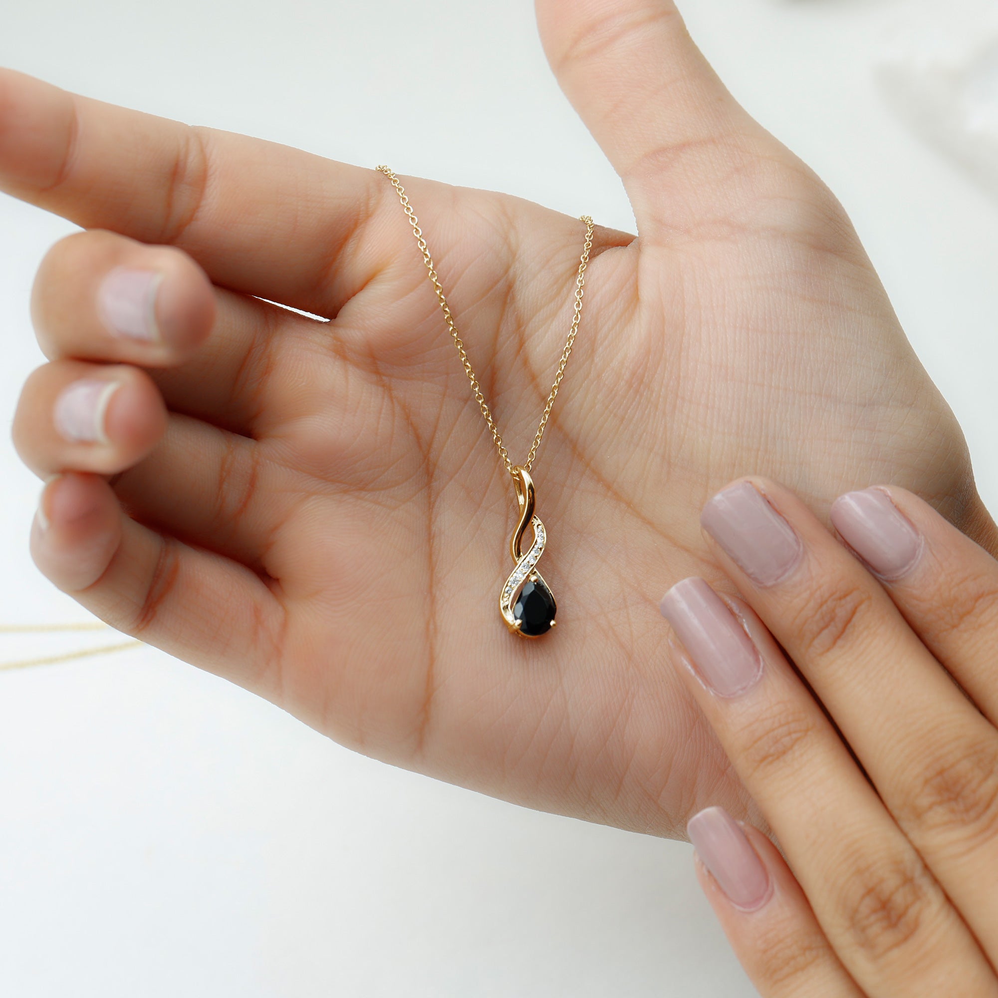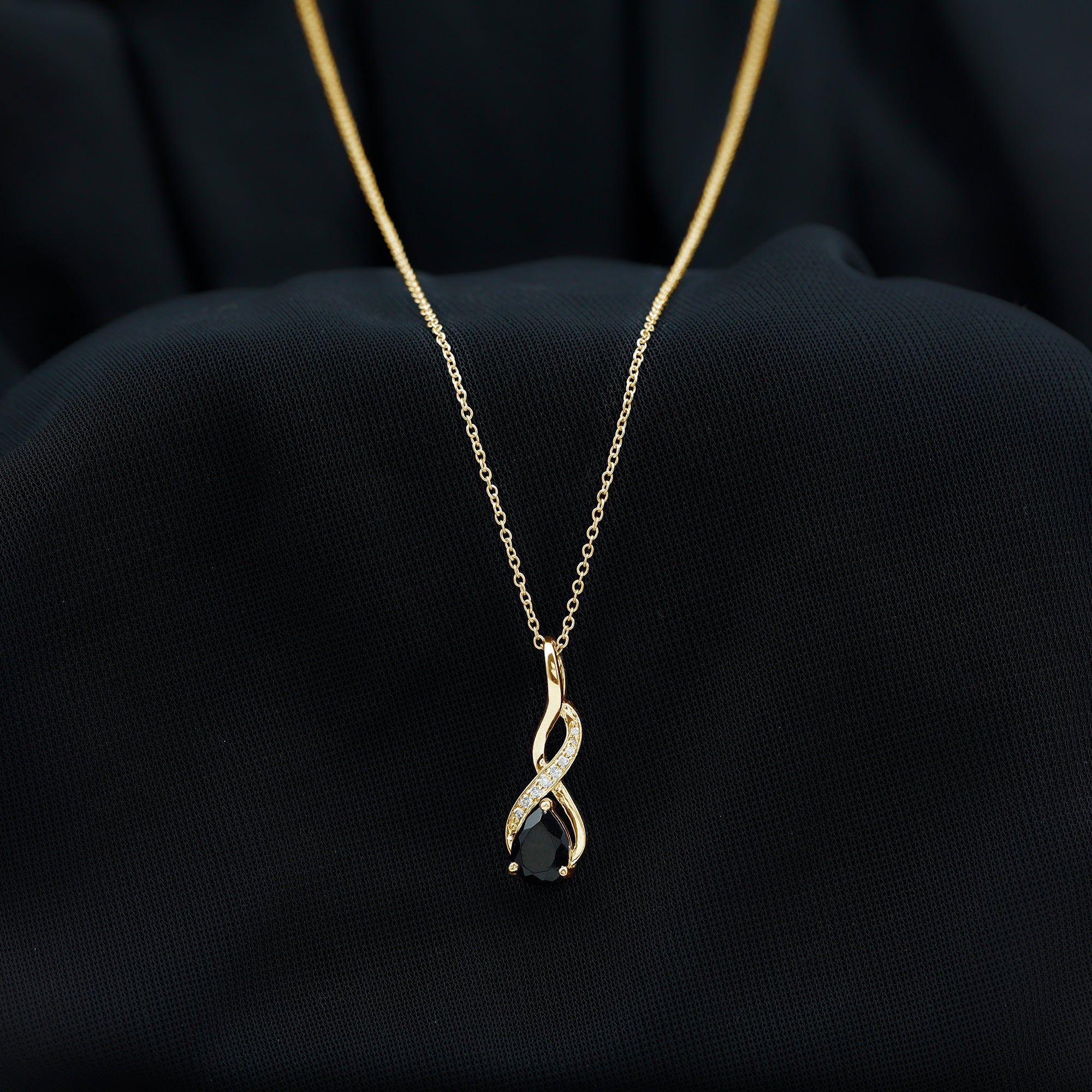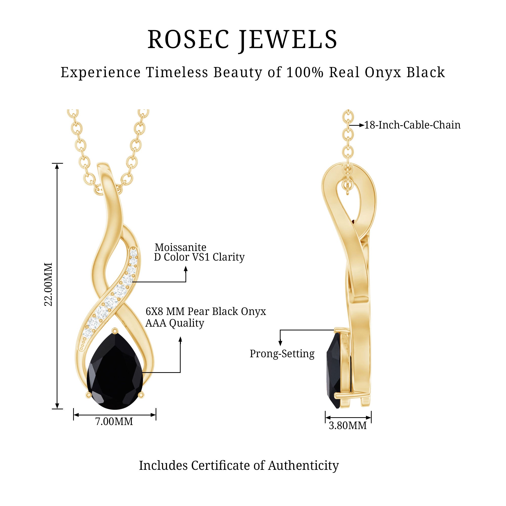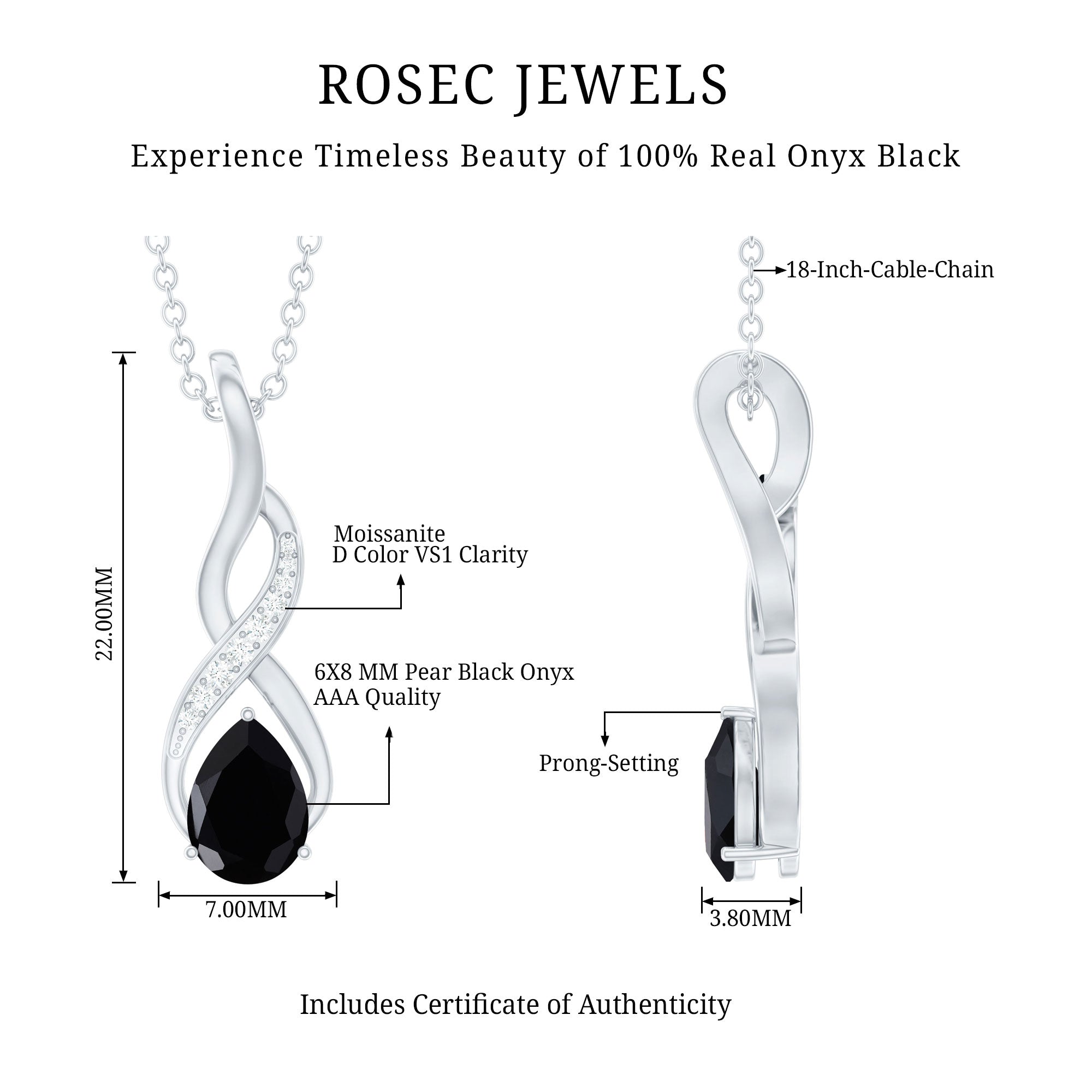 Pear Shape Black Onyx Infinity Pendant Necklace with Moissanite Accent