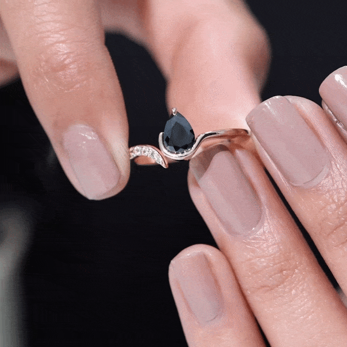 Pear Shaped Black Onyx Promise Ring with Diamonds