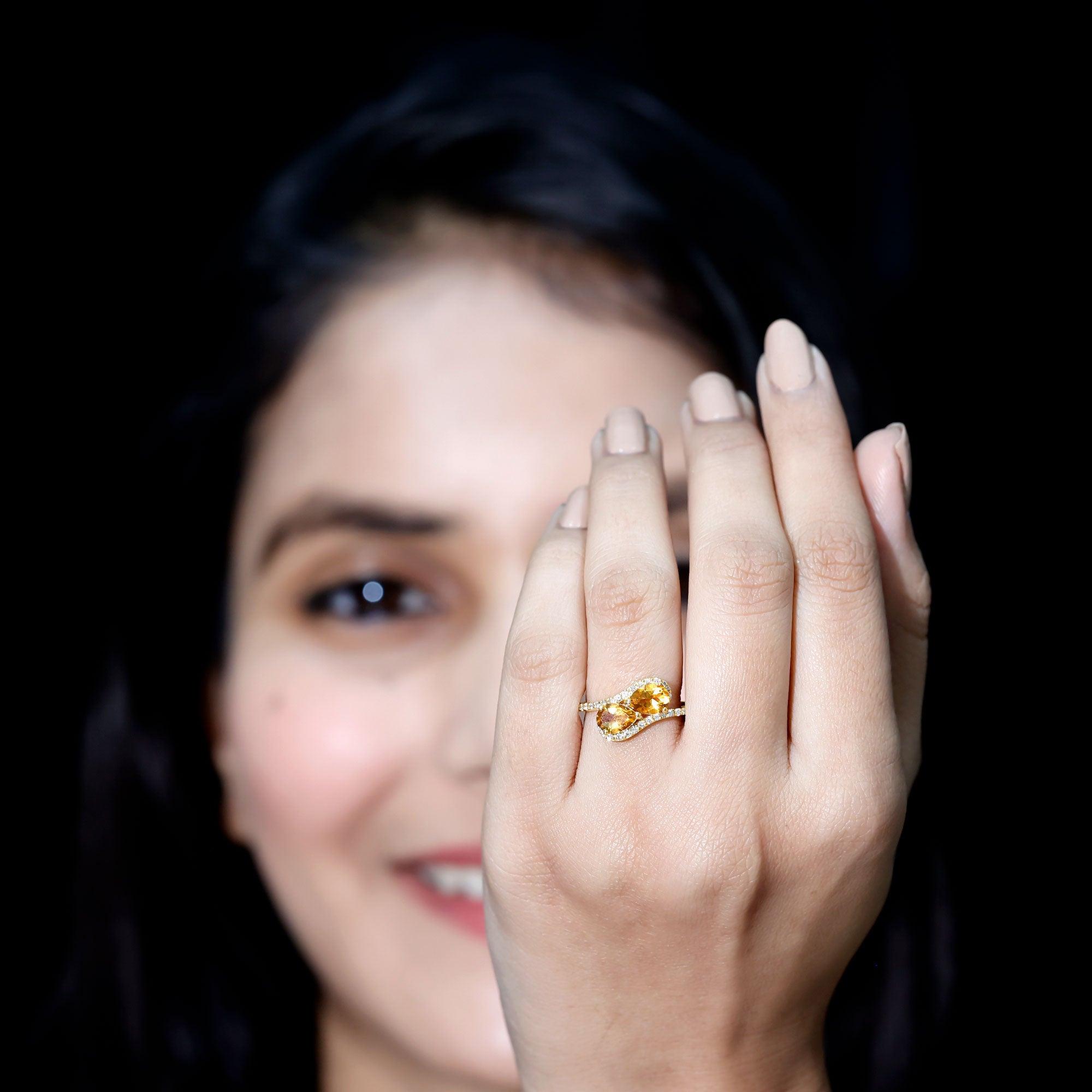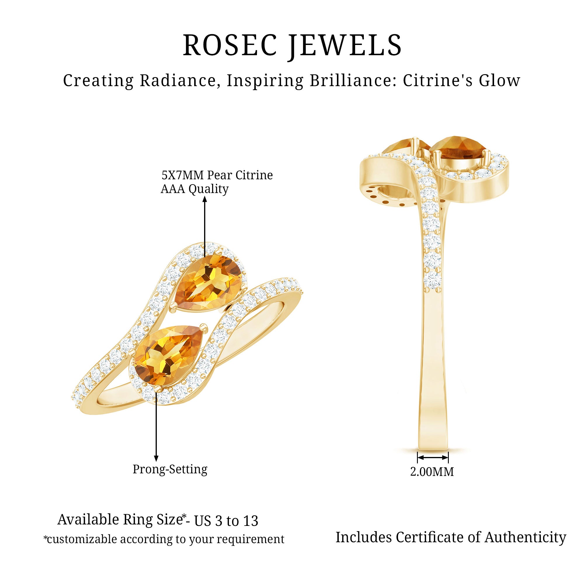 Pear Shape Citrine Two Stone Bypass Ring with Diamond